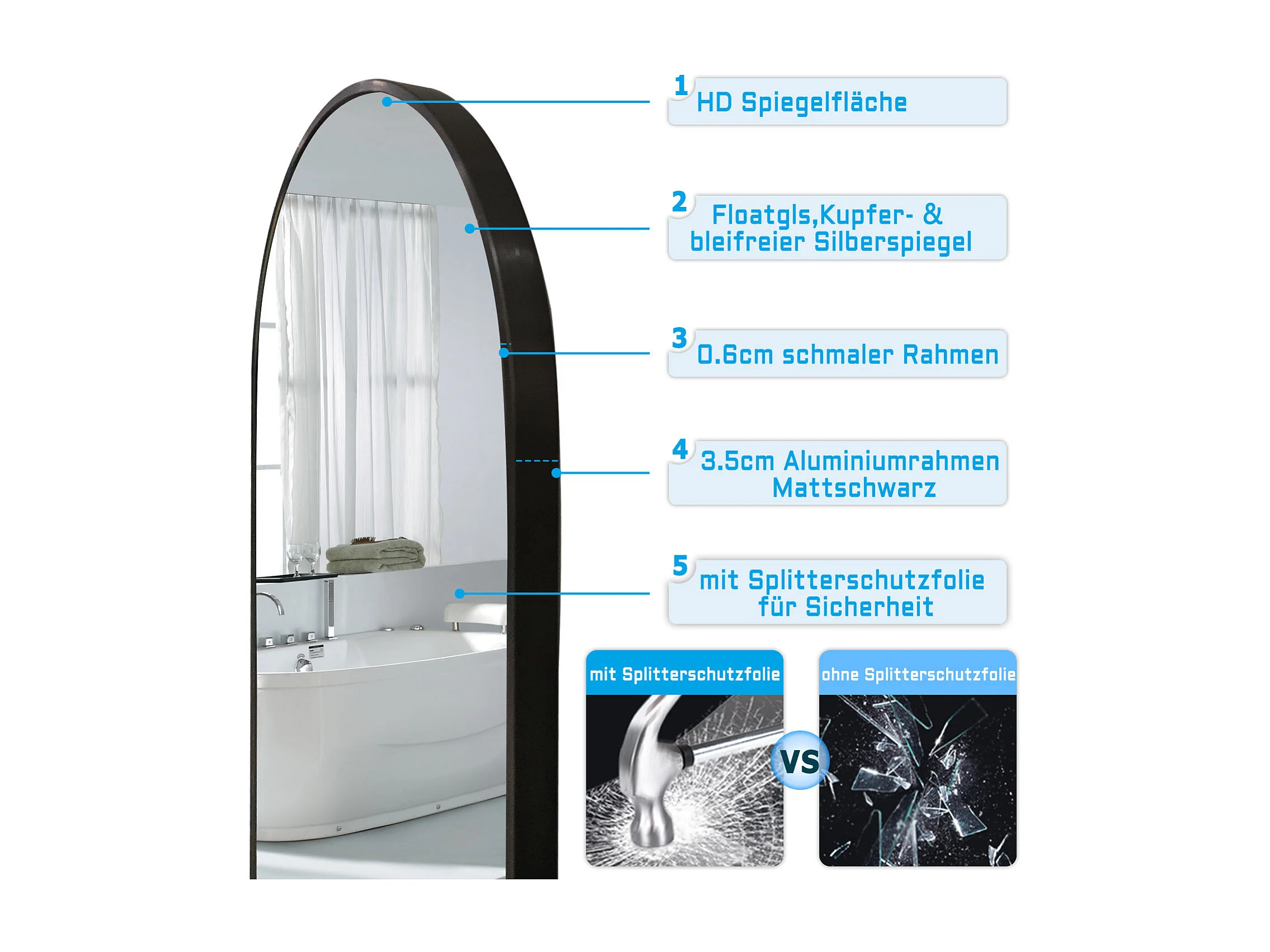 AICA Bogen Standspiegel 150x50cm 2 in 1 Ganzkörperspiegel mit Schwarz Rahmen