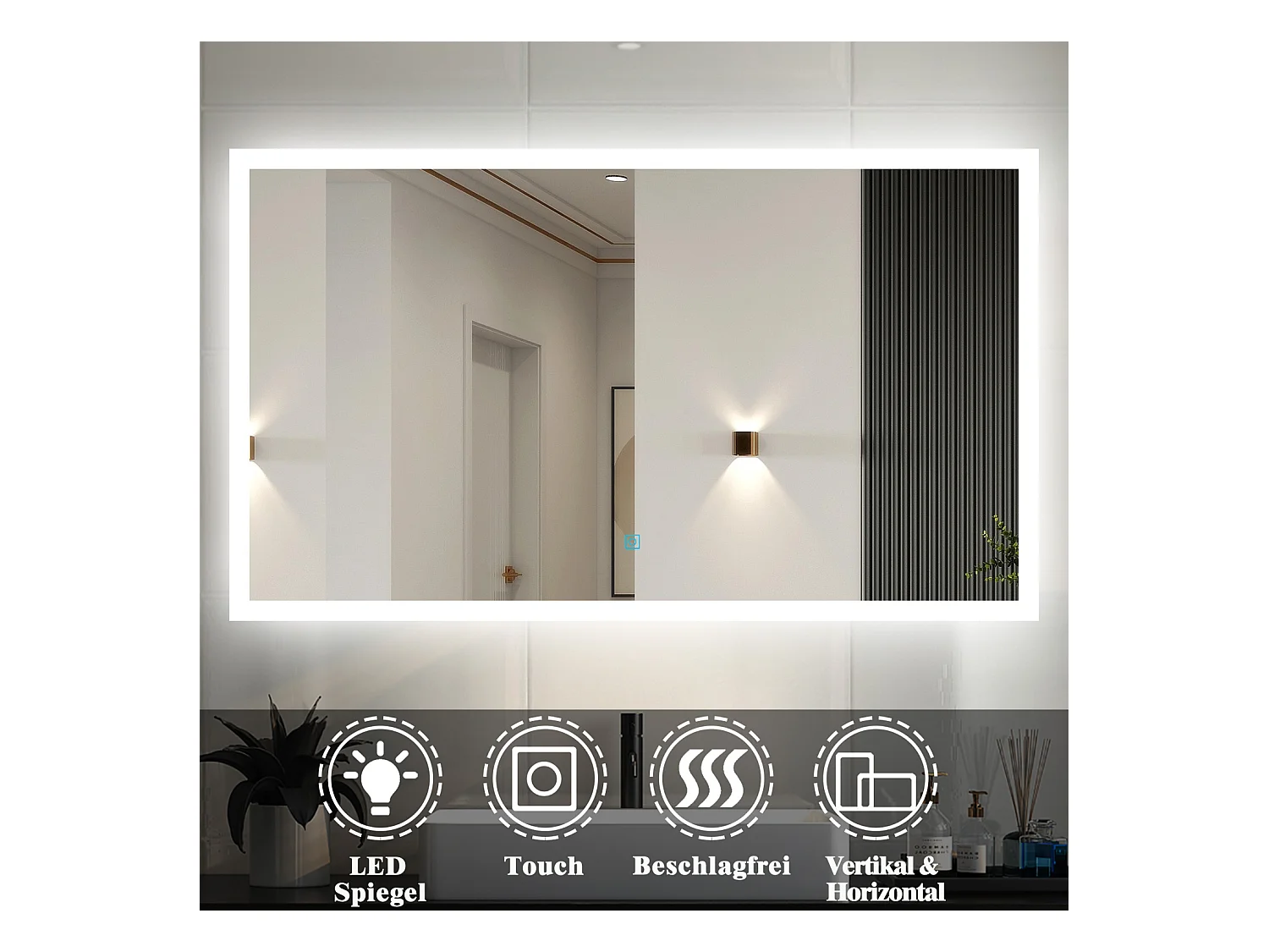 AICA LED Badspiegel 120x70cm Kaltweiß Touchschalter Beschlagfrei - BELAIR