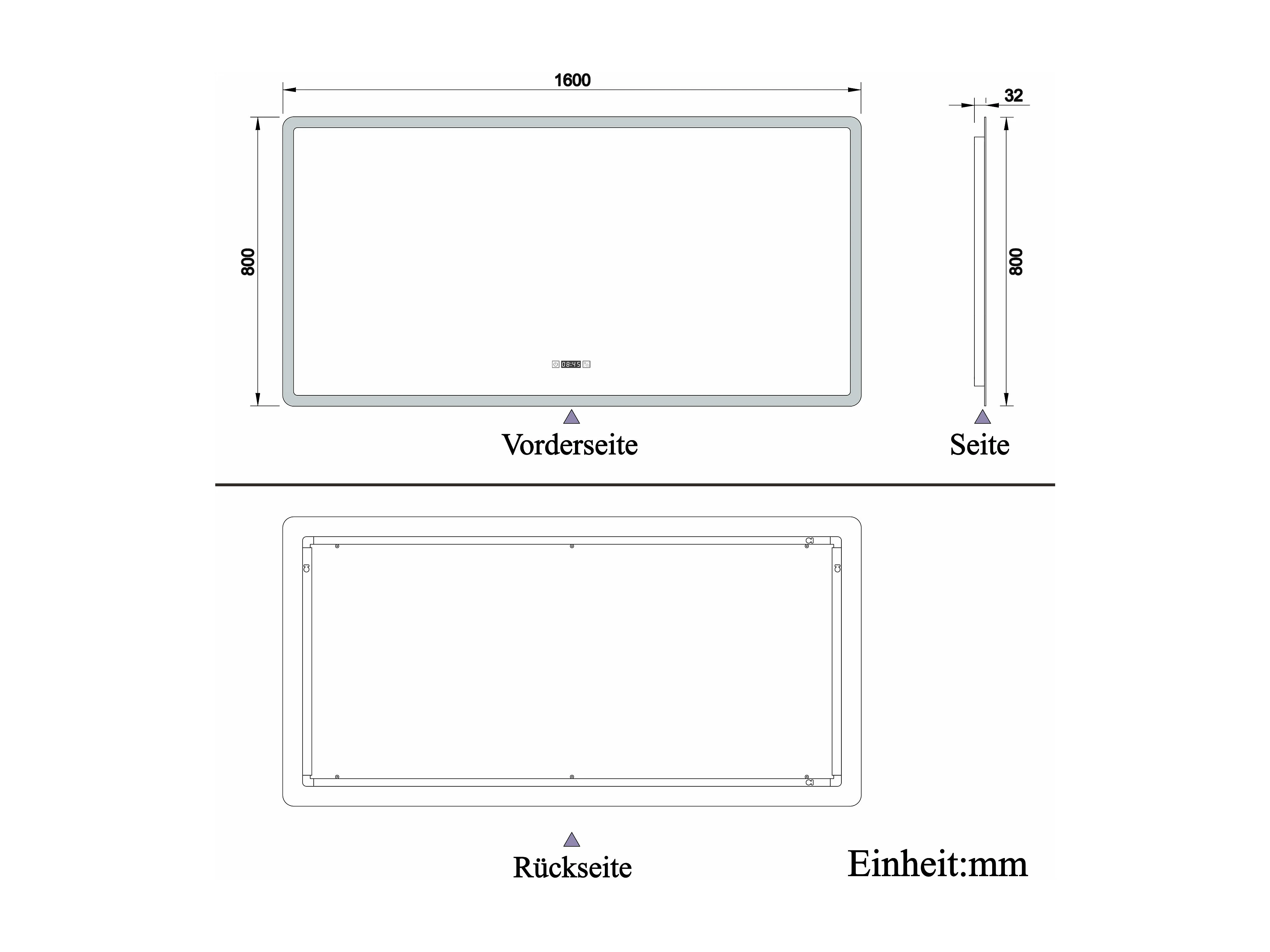 AICA LED Badspiegel 160x80cm Wand/Touchschalter - Uhr - Beschlagfrei - 3 Lichtfarbe - Dimmbar - Memory-Funktion