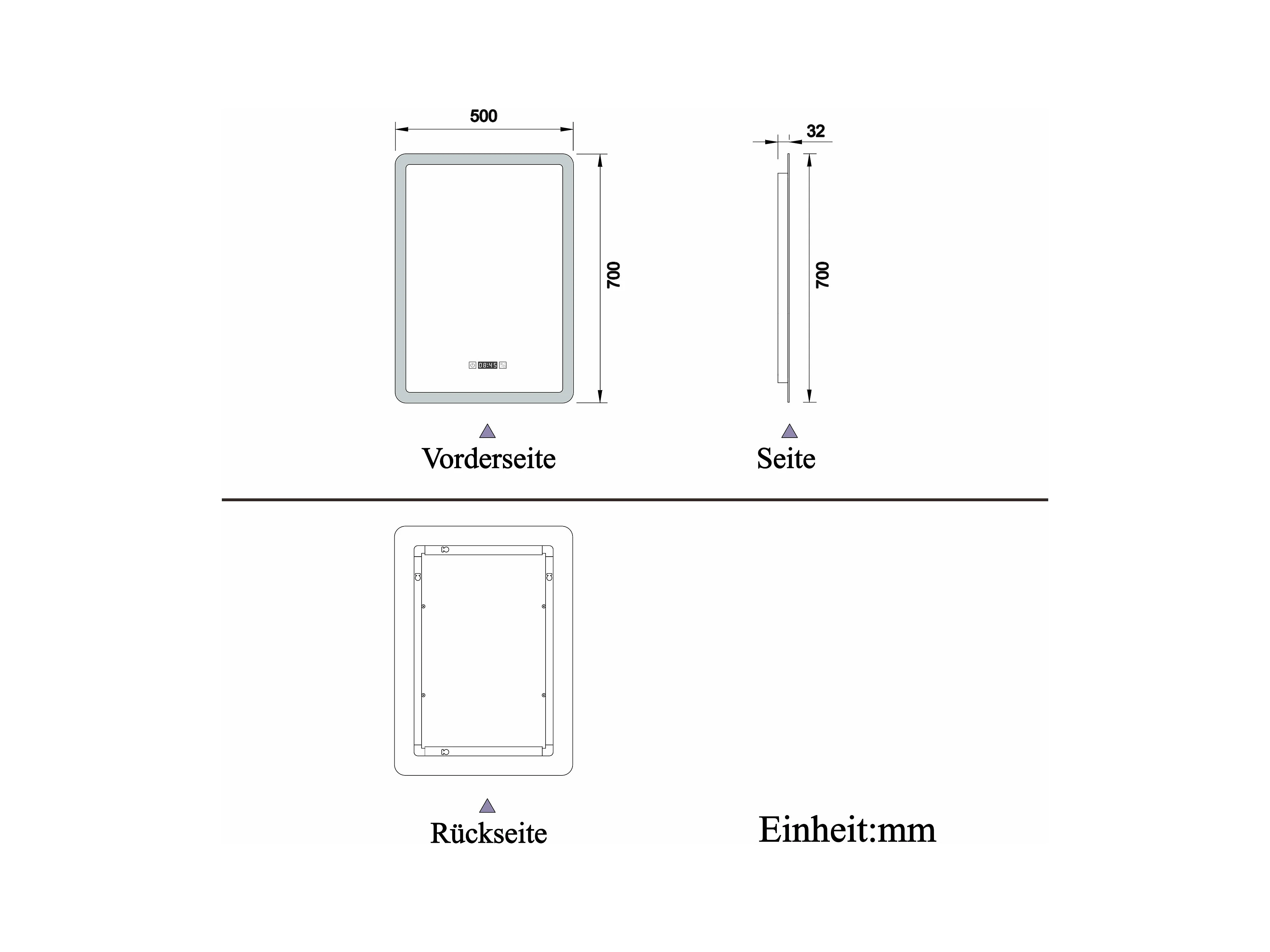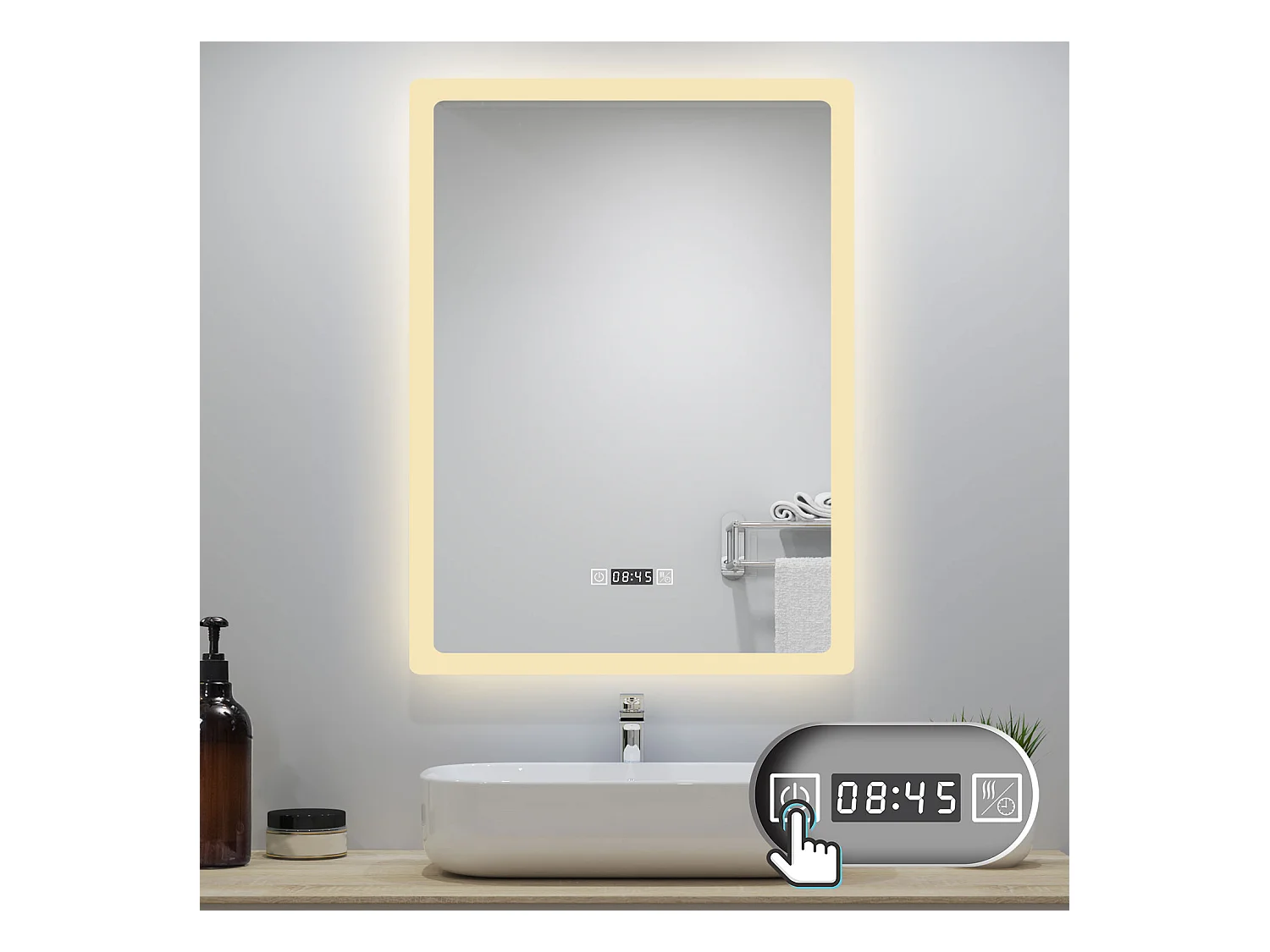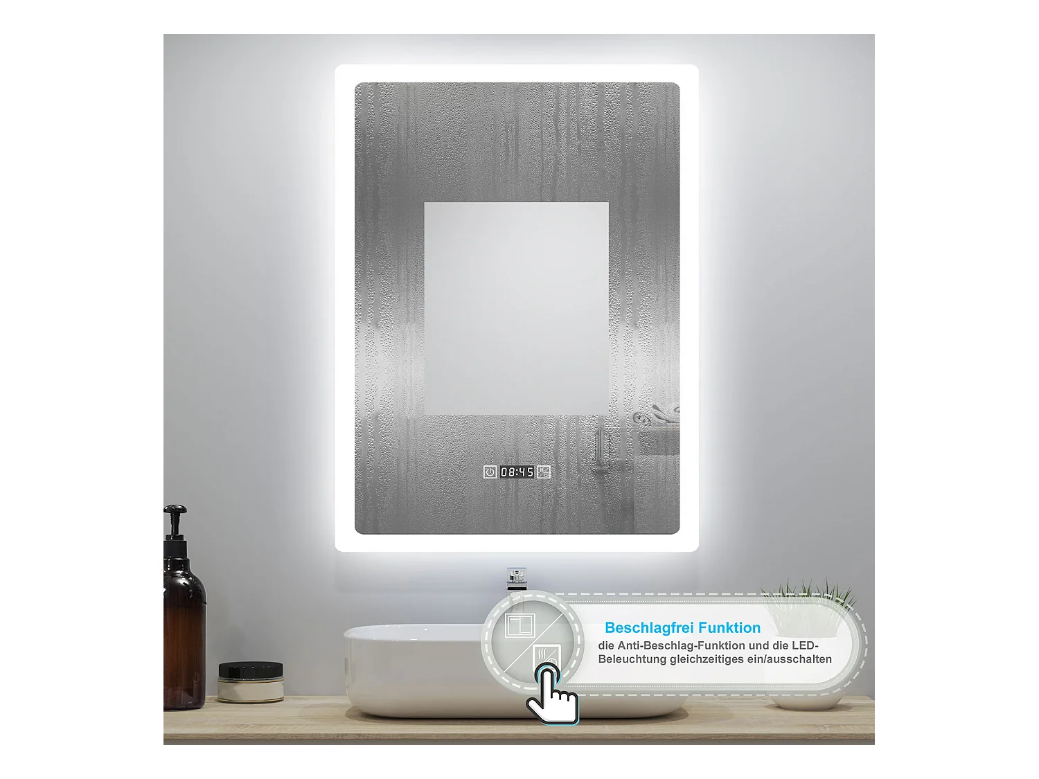 AICA LED Badspiegel 50x70cm Wand/Touchschalter - Uhr - Beschlagfrei - 3 Lichtfarbe - Dimmbar - Memory-Funktion