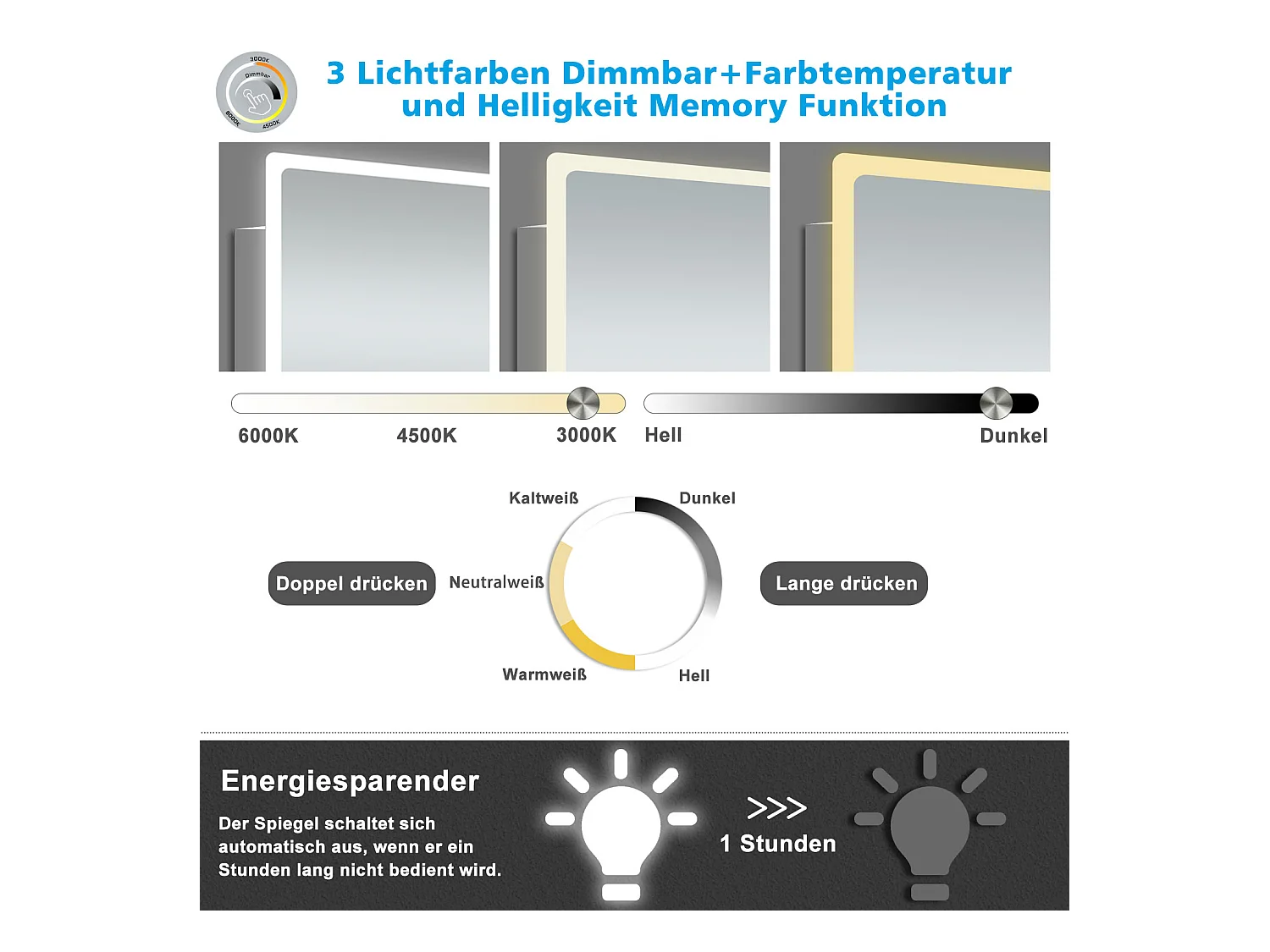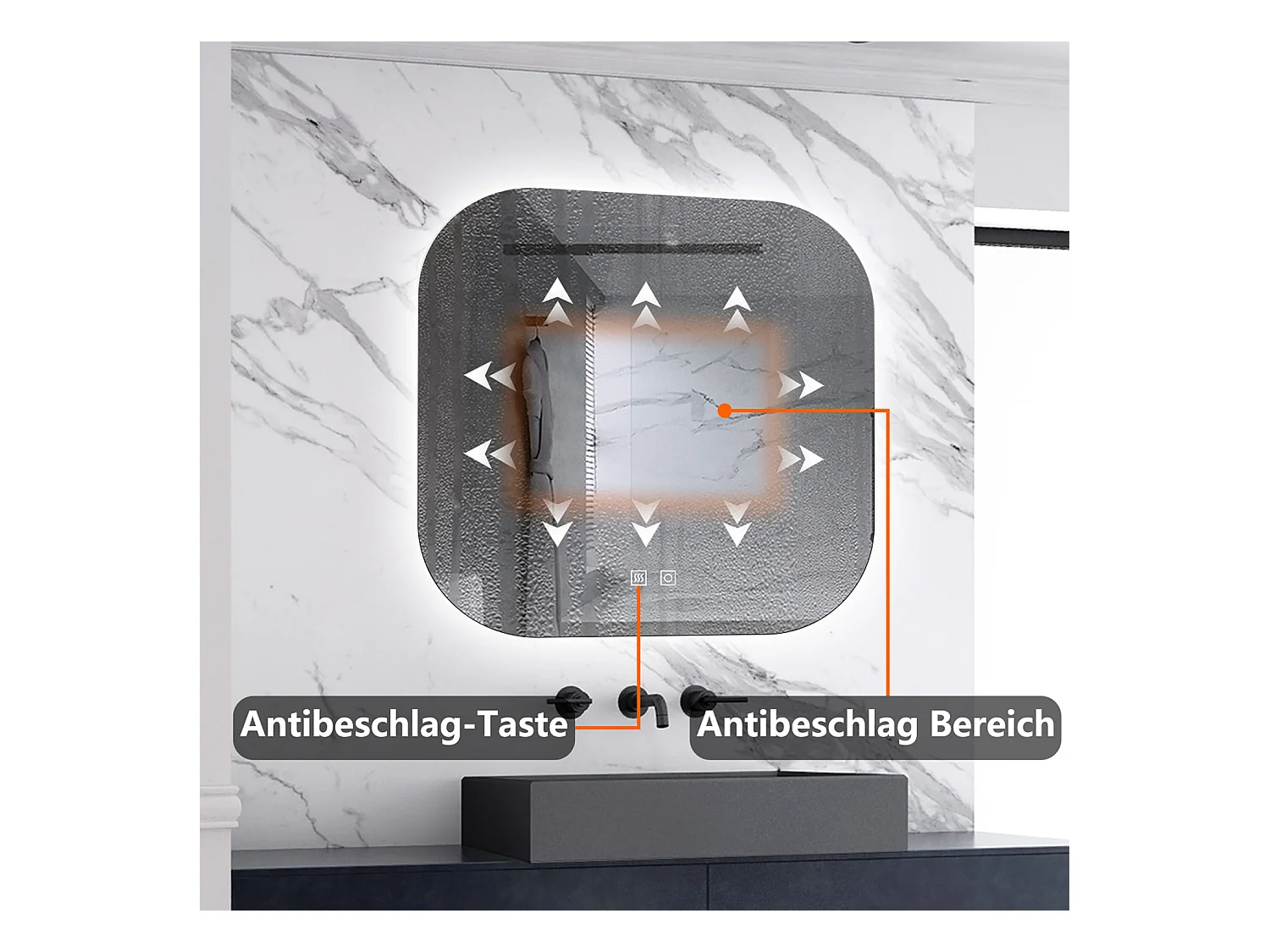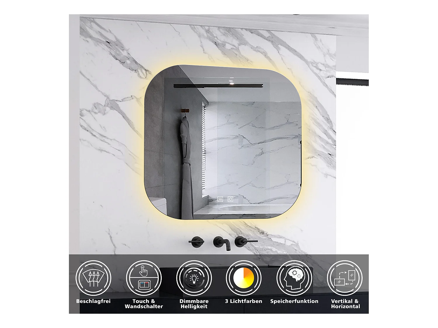 AICA LED Badspiegel 60x60cm Beschlagfrei 3 Lichtfarbe+Dimmbar Memory-Funktion