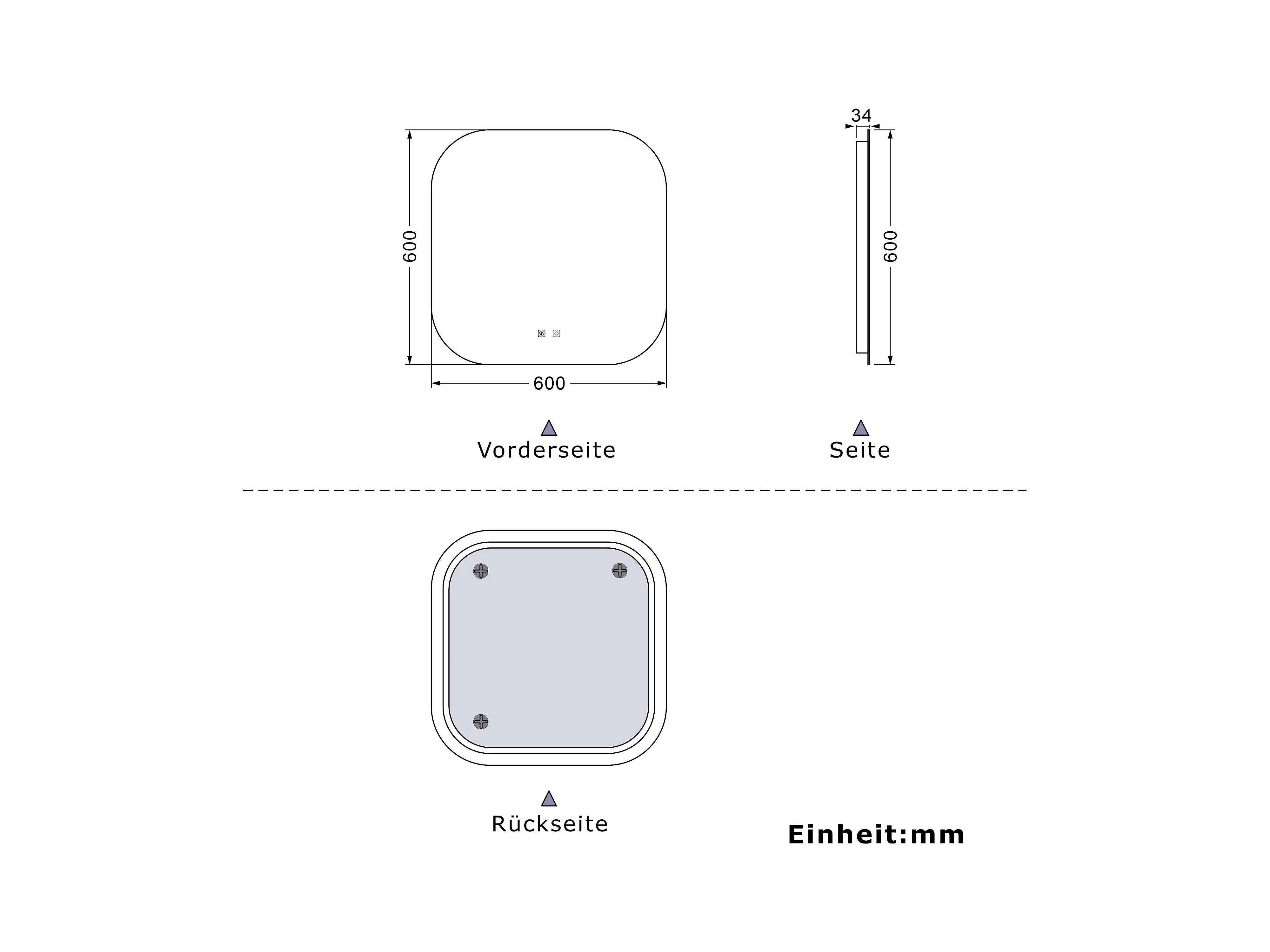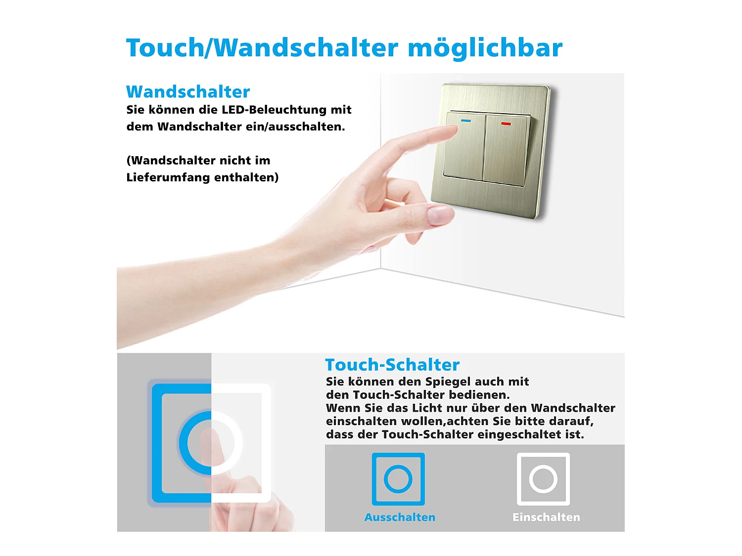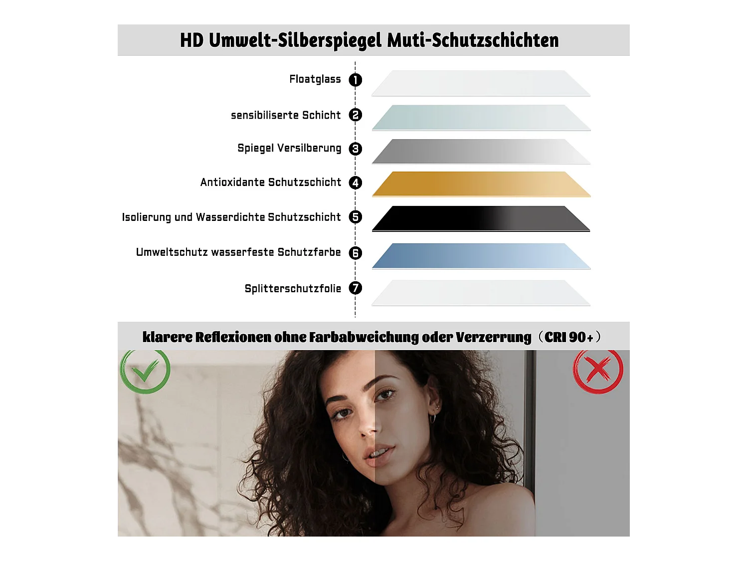 AICA LED Badspiegel 60x60cm Beschlagfrei 3 Lichtfarbe+Dimmbar Memory-Funktion