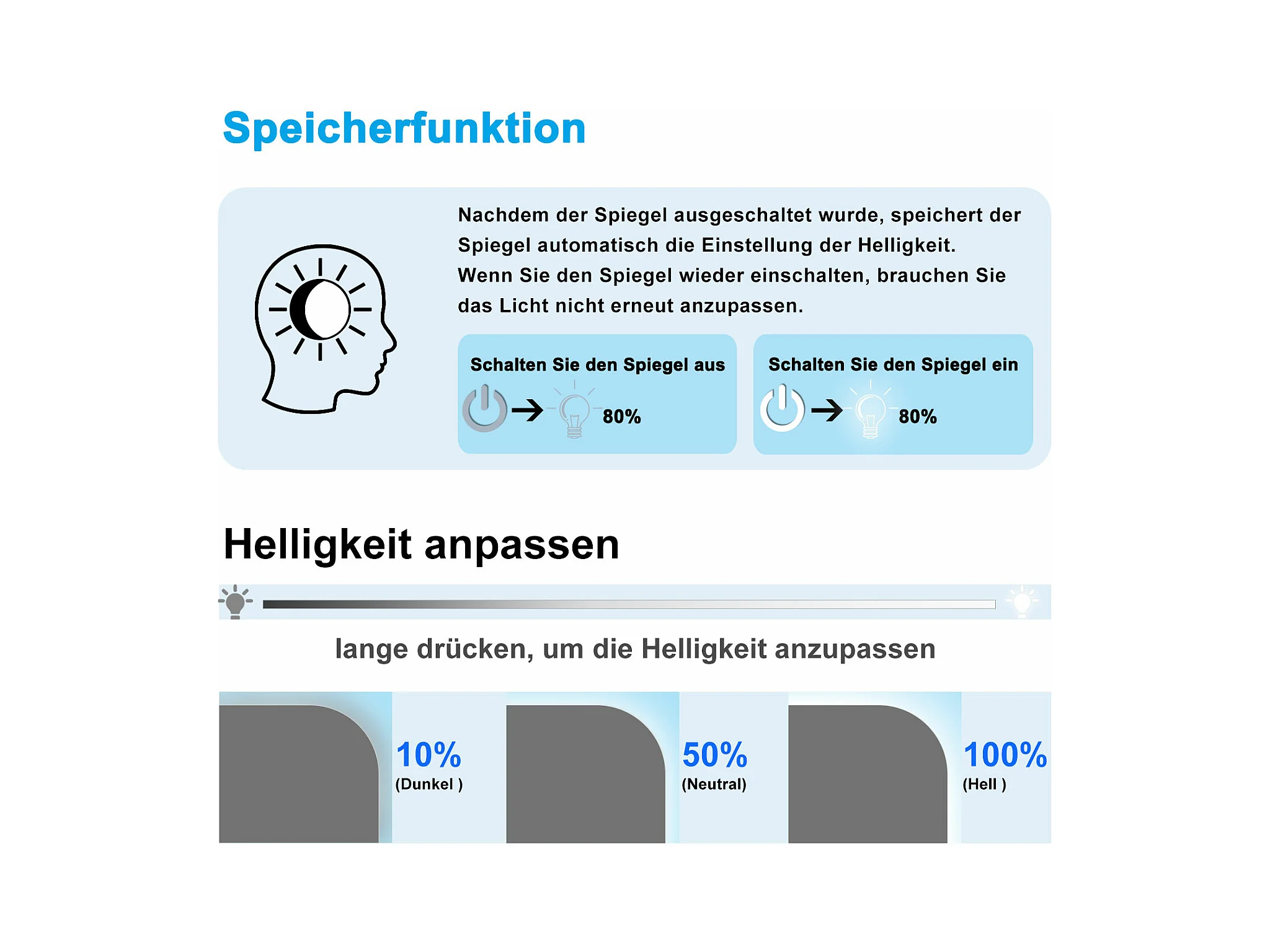 AICA LED Badspiegel 60x60cm Beschlagfrei Kaltweiß Dimmbar Memory-Funktion