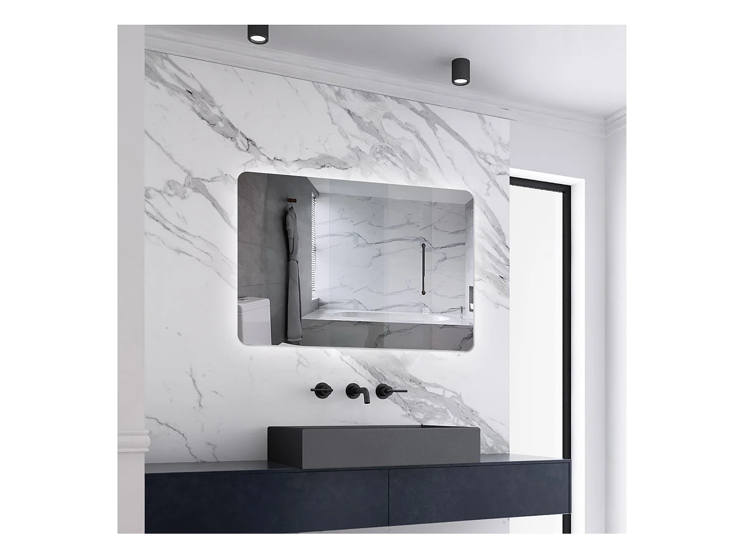 AICA LED Badspiegel 70x50cm Wand/Touchschalter Anti-Beschlag 3 Lichfarbe+Dimmbar Memory-Funktion
