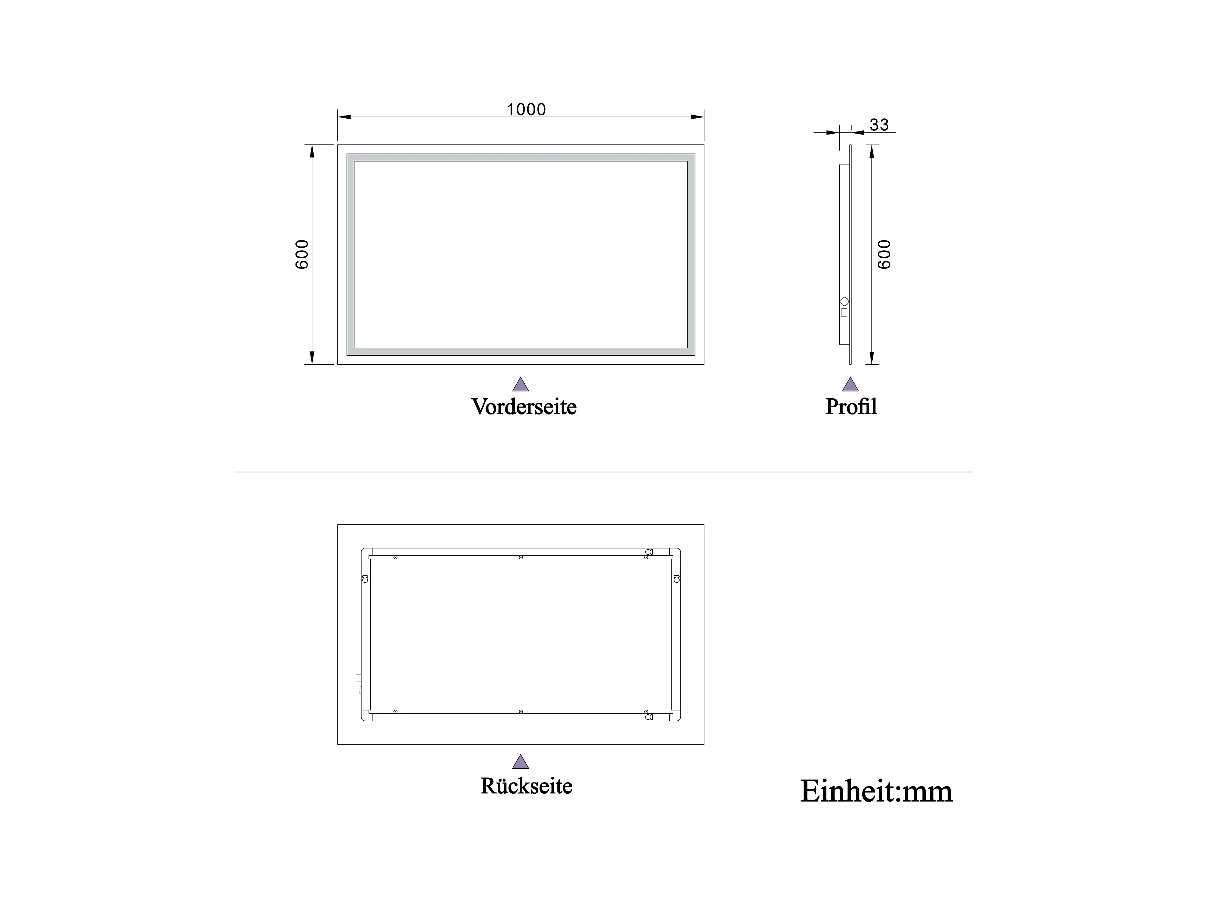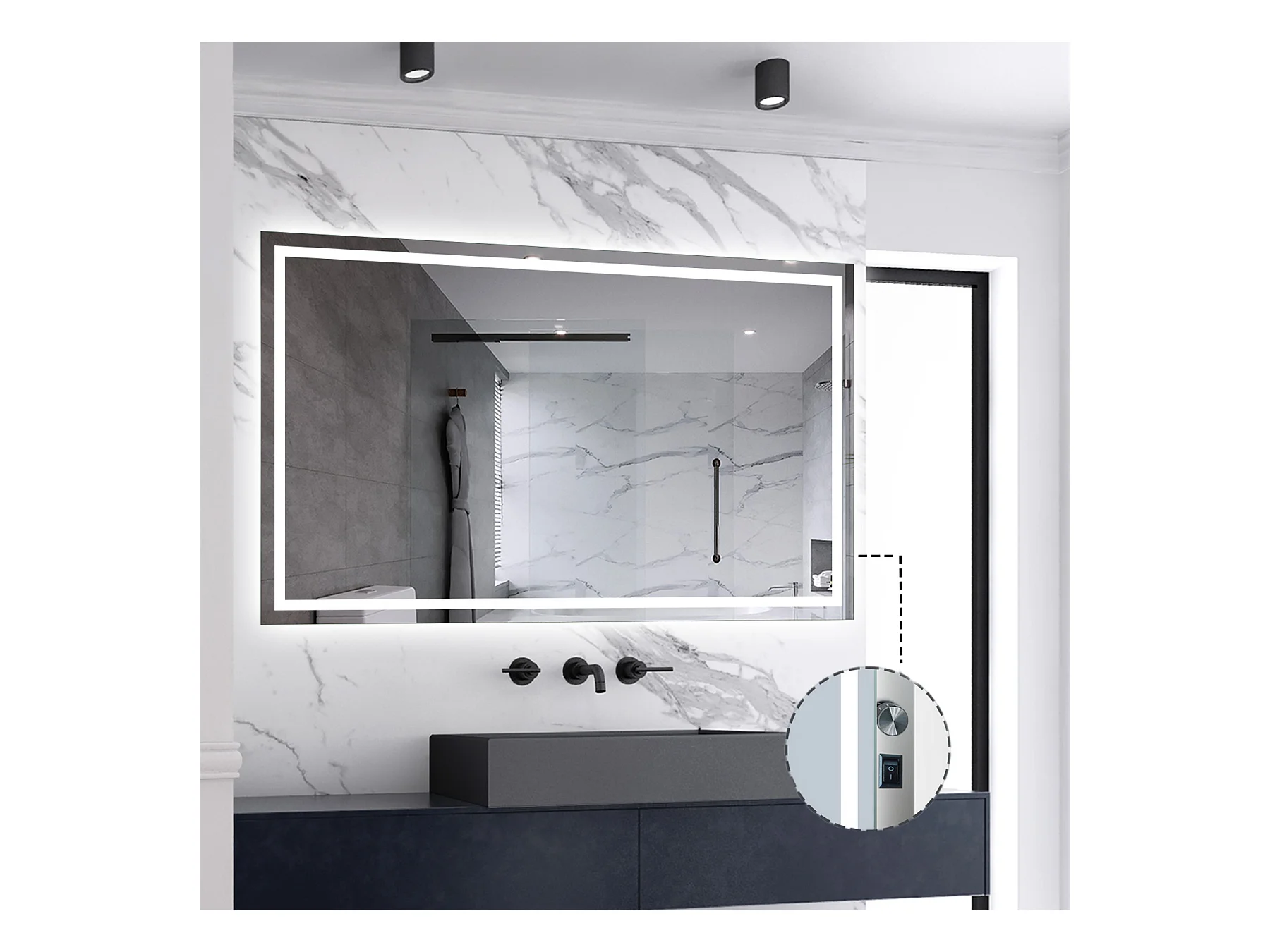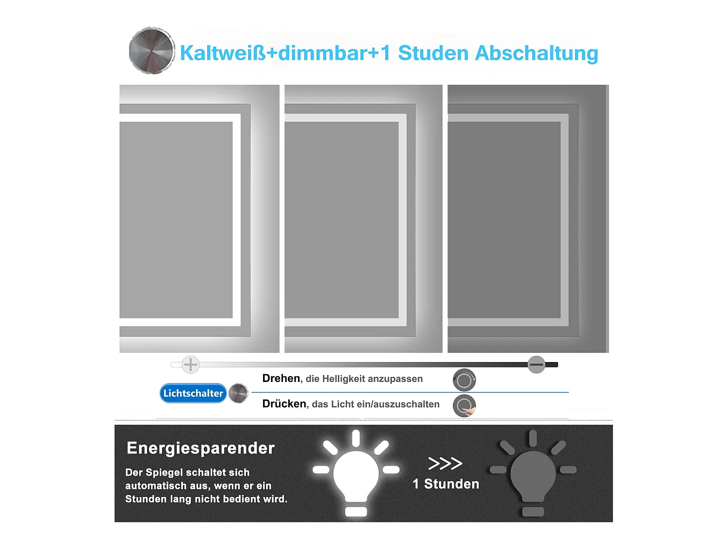 AICA LED Badspiegel mit Knopfschalter 100x60cm Beschlagfrei Kaltweiß Dimmbar Memory-Funktion