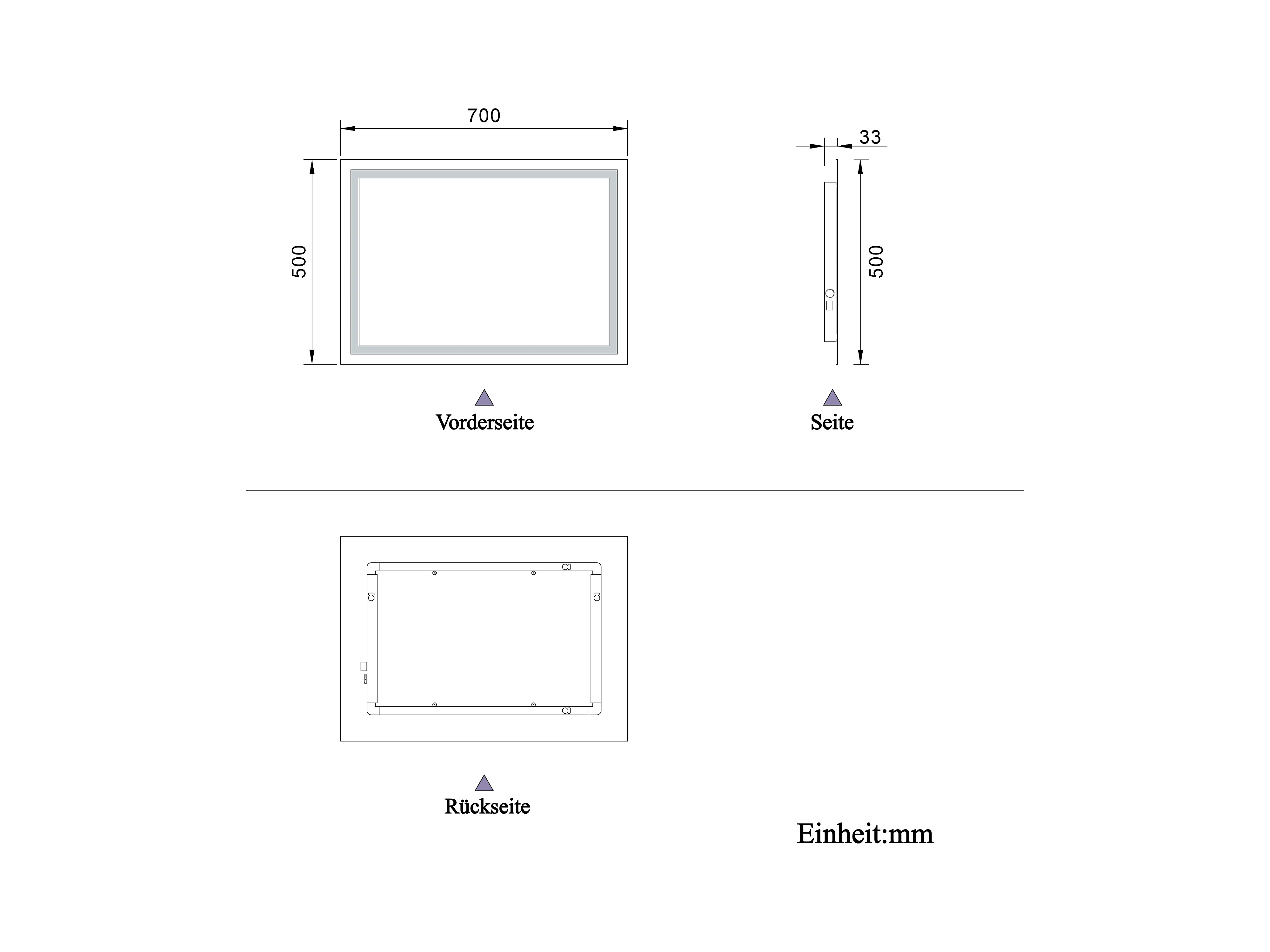 AICA LED Badspiegel mit Knopfschalter 70x50cm Beschlagfrei Kaltweiß Dimmbar Memory-Funktion