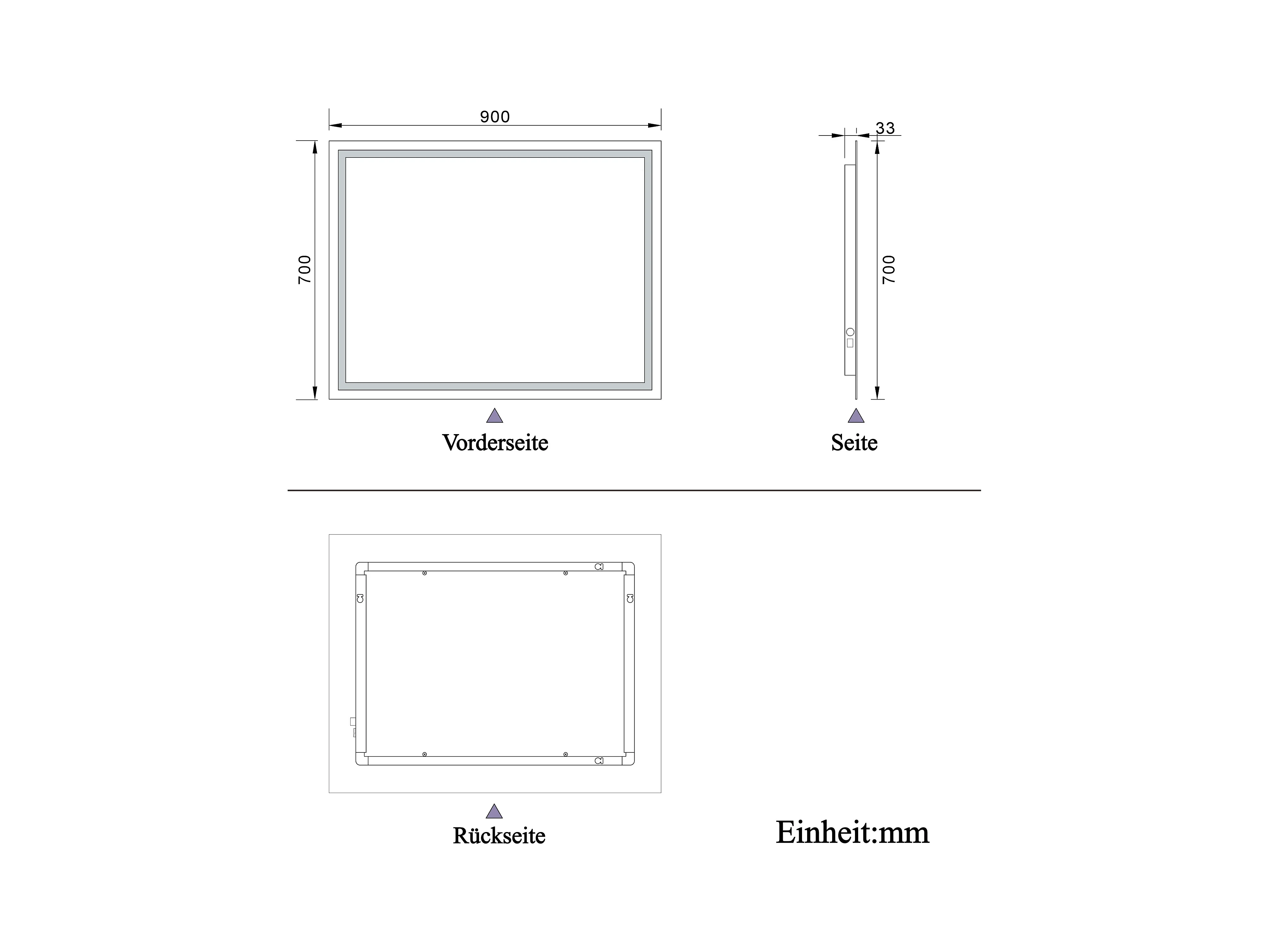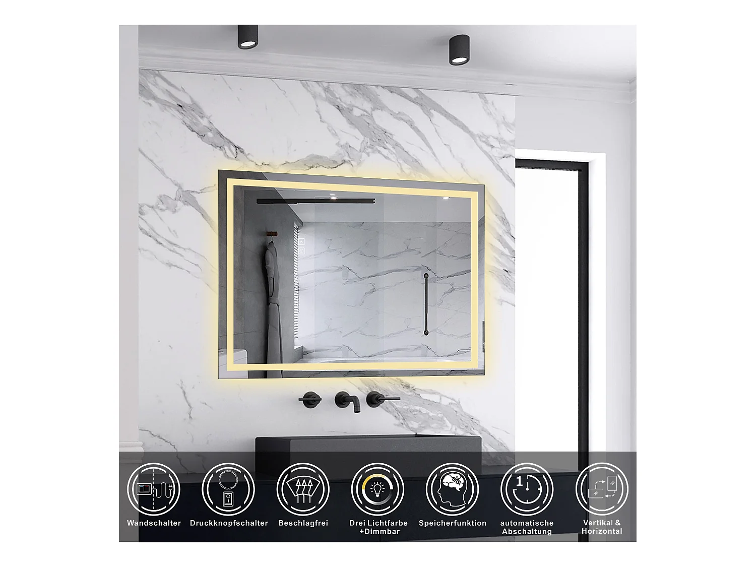AICA LED Badspiegel mit Knopfschalter 90x70cm Beschlagfrei 3 Lichtfarbe+Dimmbar Memory-Funktion