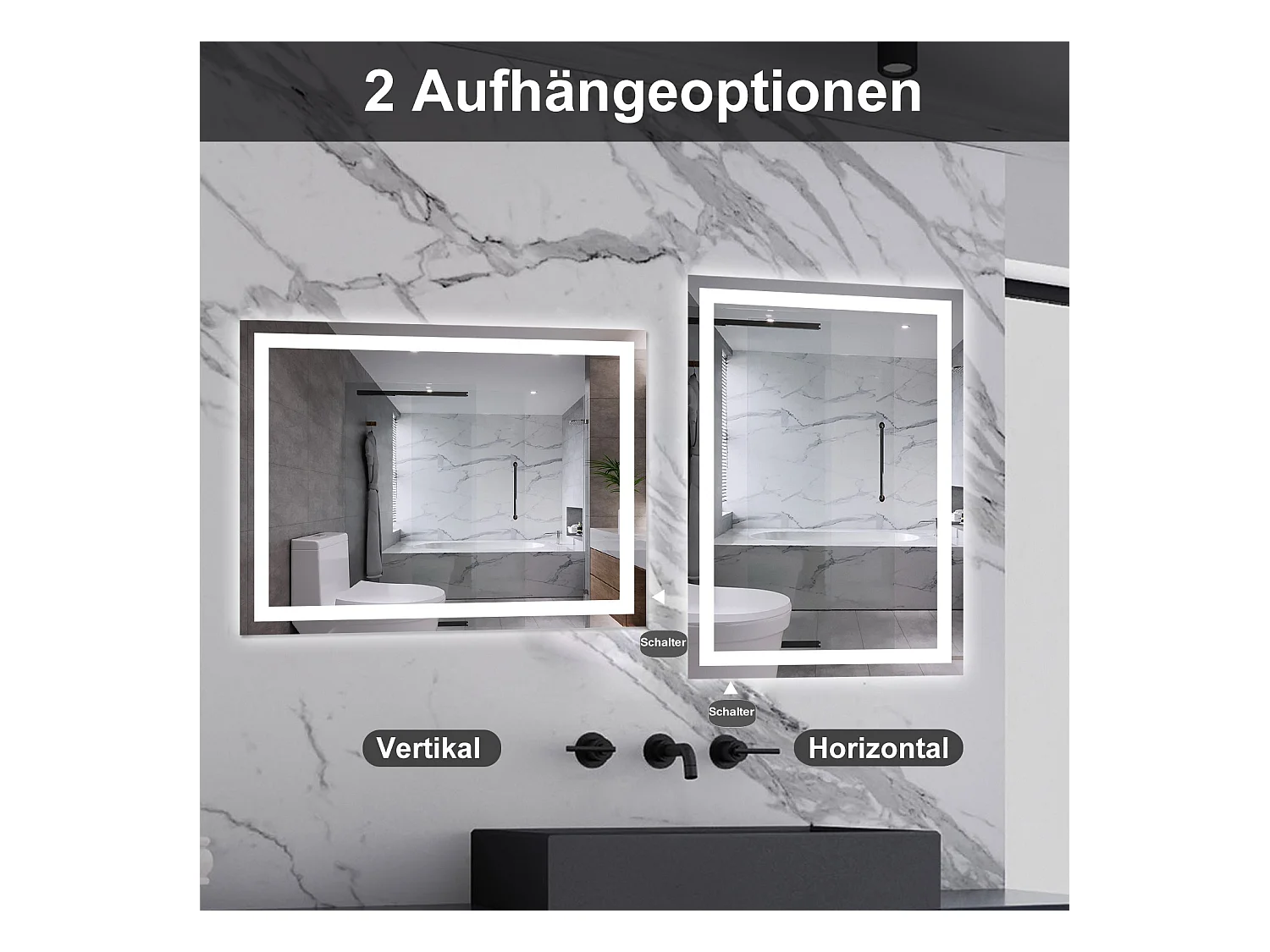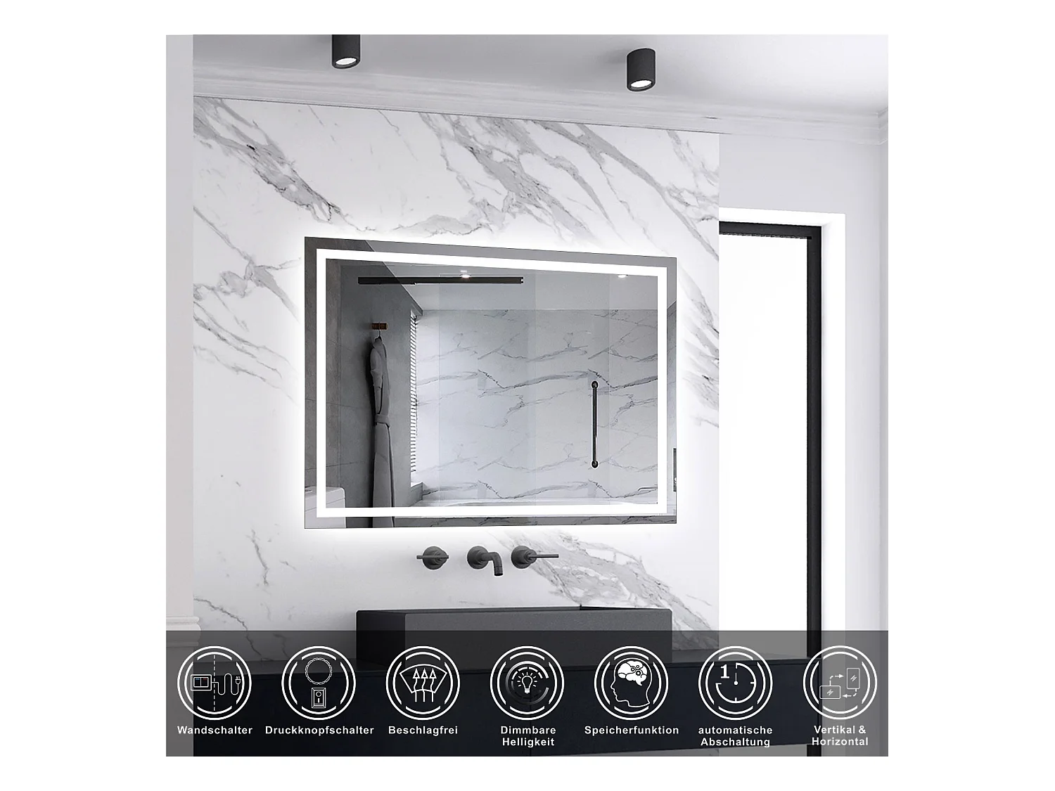 AICA LED Badspiegel mit Knopfschalter 90x70cm Beschlagfrei Kaltweiß Dimmbar Memory-Funktion