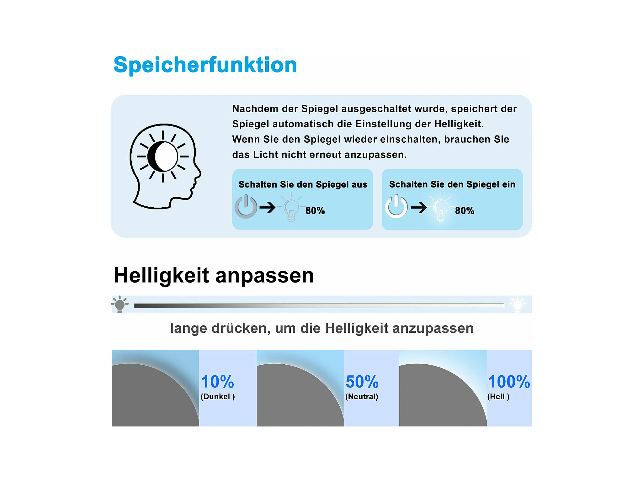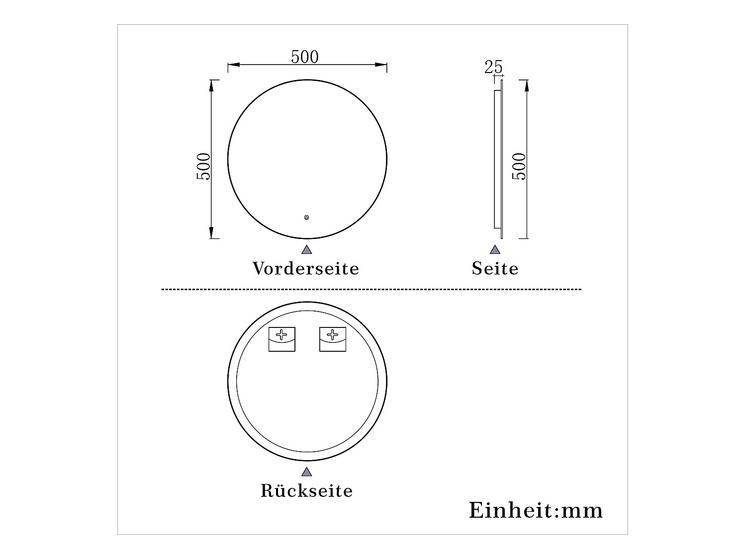 AICA LED Badspiegel Rund 50cm Beschlagfrei Kaltweiß Dimmbar Memory-Funktion