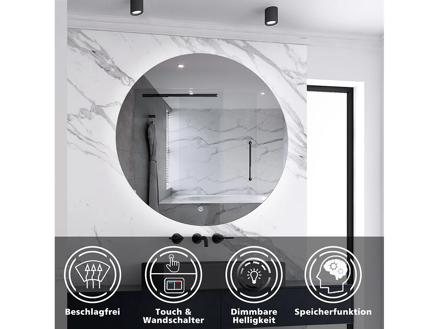 AICA LED Badspiegel Rund 90cm Beschlagfrei Kaltweiß Dimmbar Memory-Funktion
