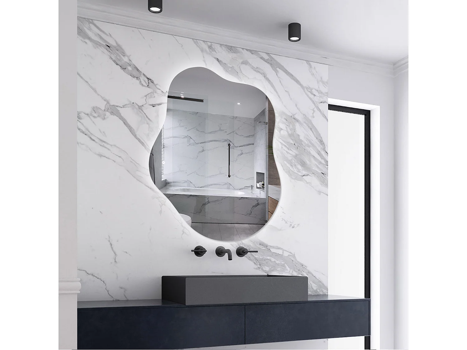 AICA LED Badspiegel Wolkenform 100x66cm Beschlagfrei 3 Lichtfarbe+Dimmbar