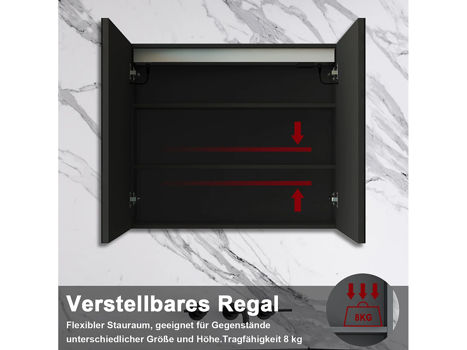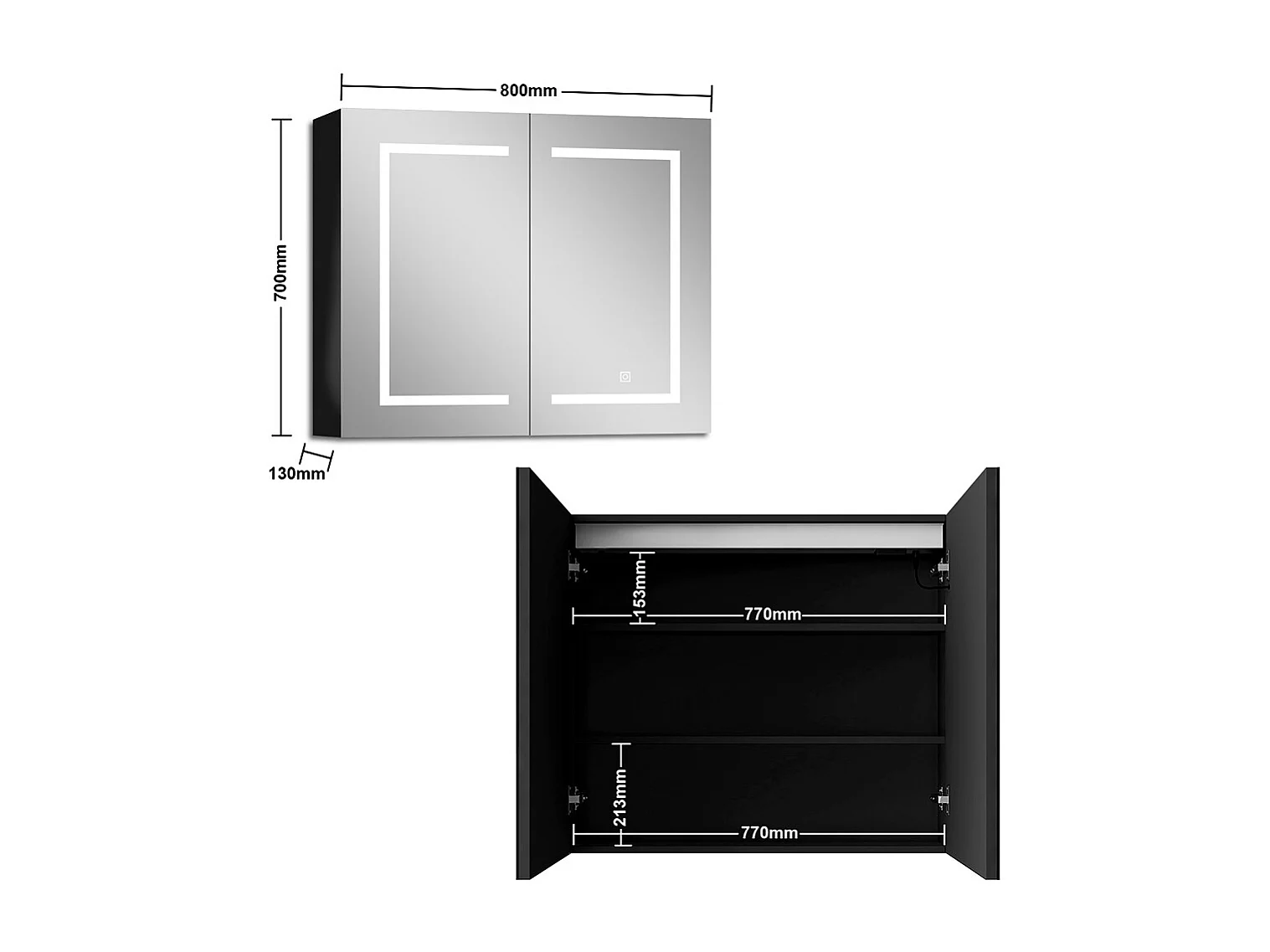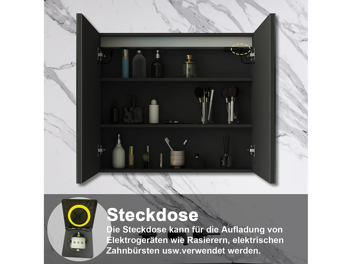 AICA LED Spiegelschrank 80x70cm,Beschlagfrei,3 Lichtfarbe,Dimmbar,Steckdose - Hochglanz Schwarz