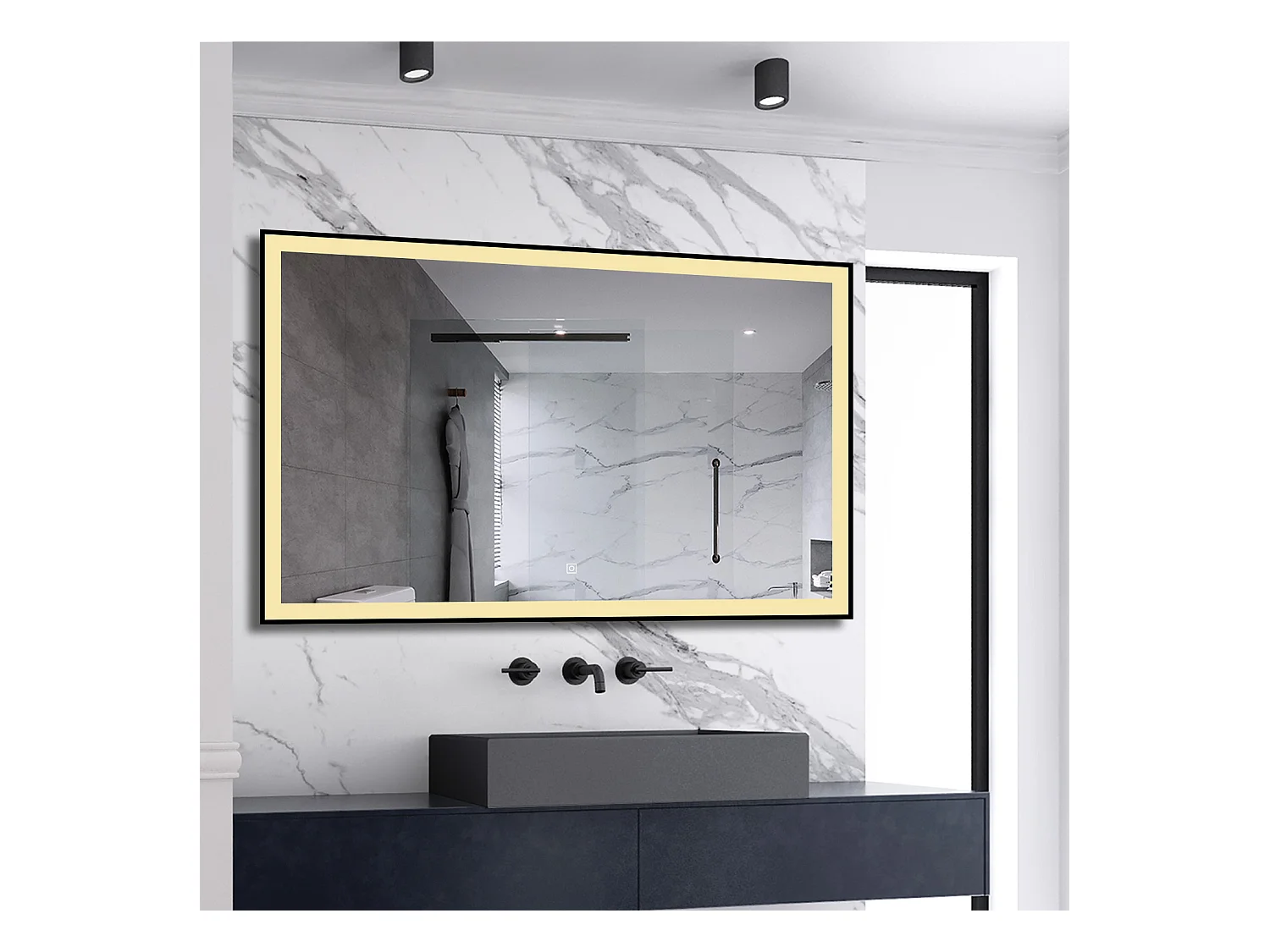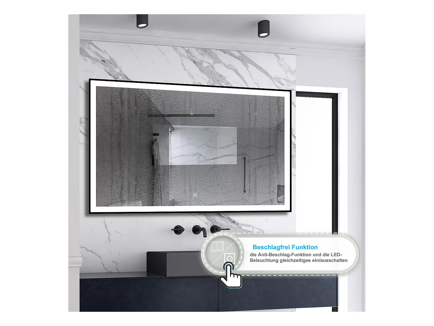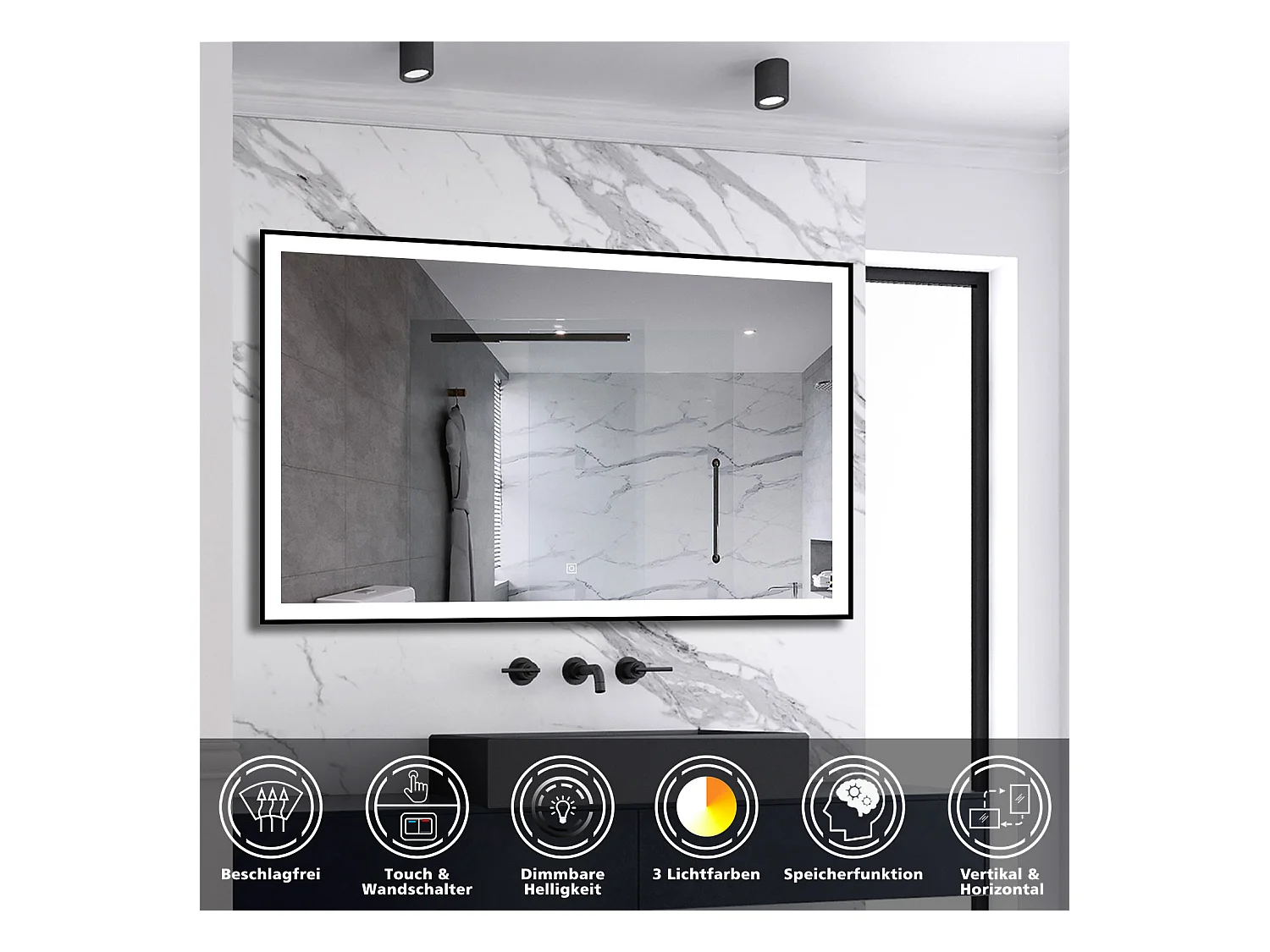 AICA LED Wandspiegel 120x70cm Beschlagfrei 3 Lichtfarbe+Dimmbar Schwarz Rahmen Memory-Funktion