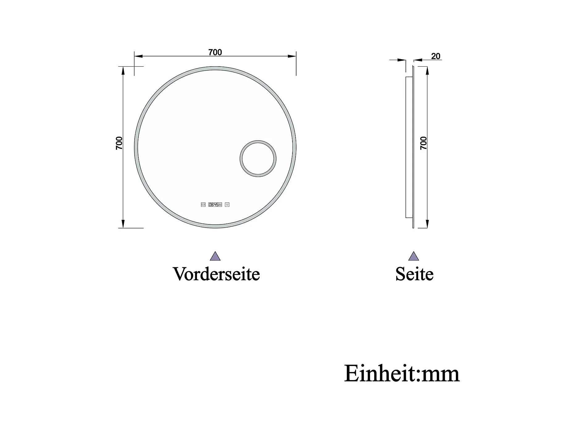 AICA Rund Badezimmerspiegel mit LED-Beleuchtung ø70cm Uhr Kosmetikspiegel 3 Lichtfarbe+Dimmbar Beschlagfrei Memory-Funktion