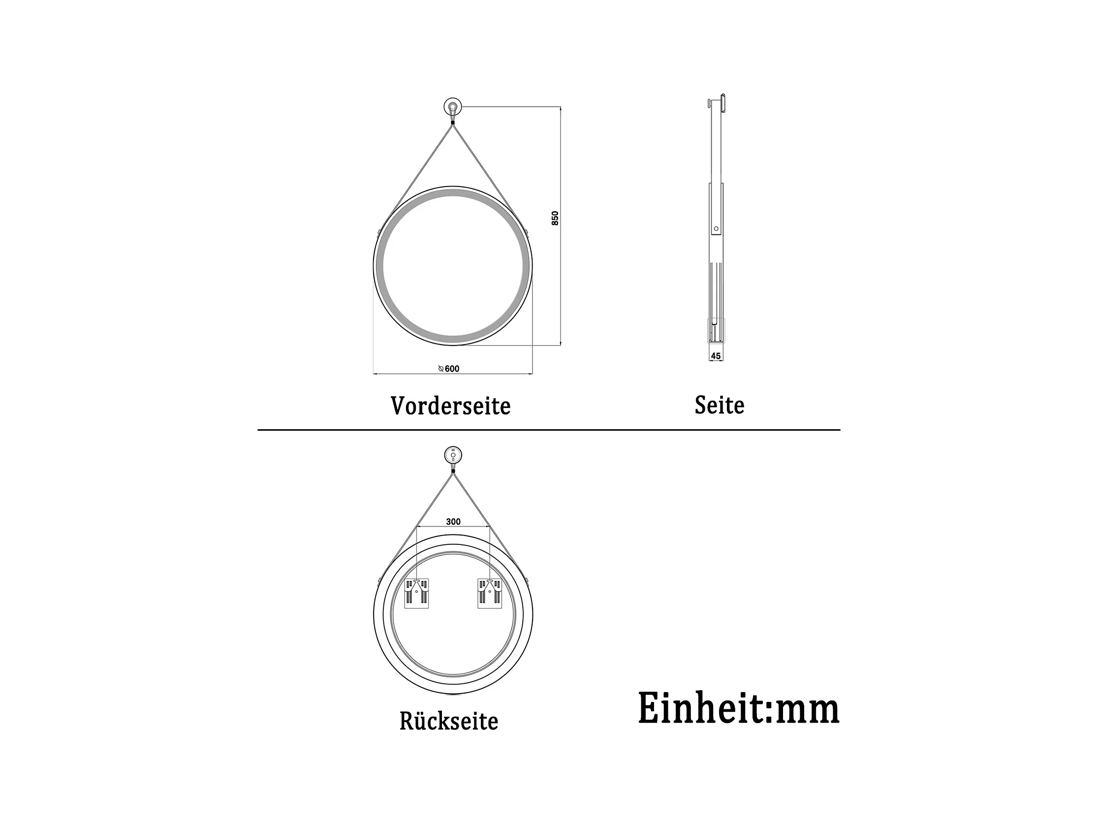 AICA Rund Badspiegel 60cm mit Schwarz Ledergürtel Touch/Wandschalter Beschlagfrei 3 Lichtfarbe+Dimmbar