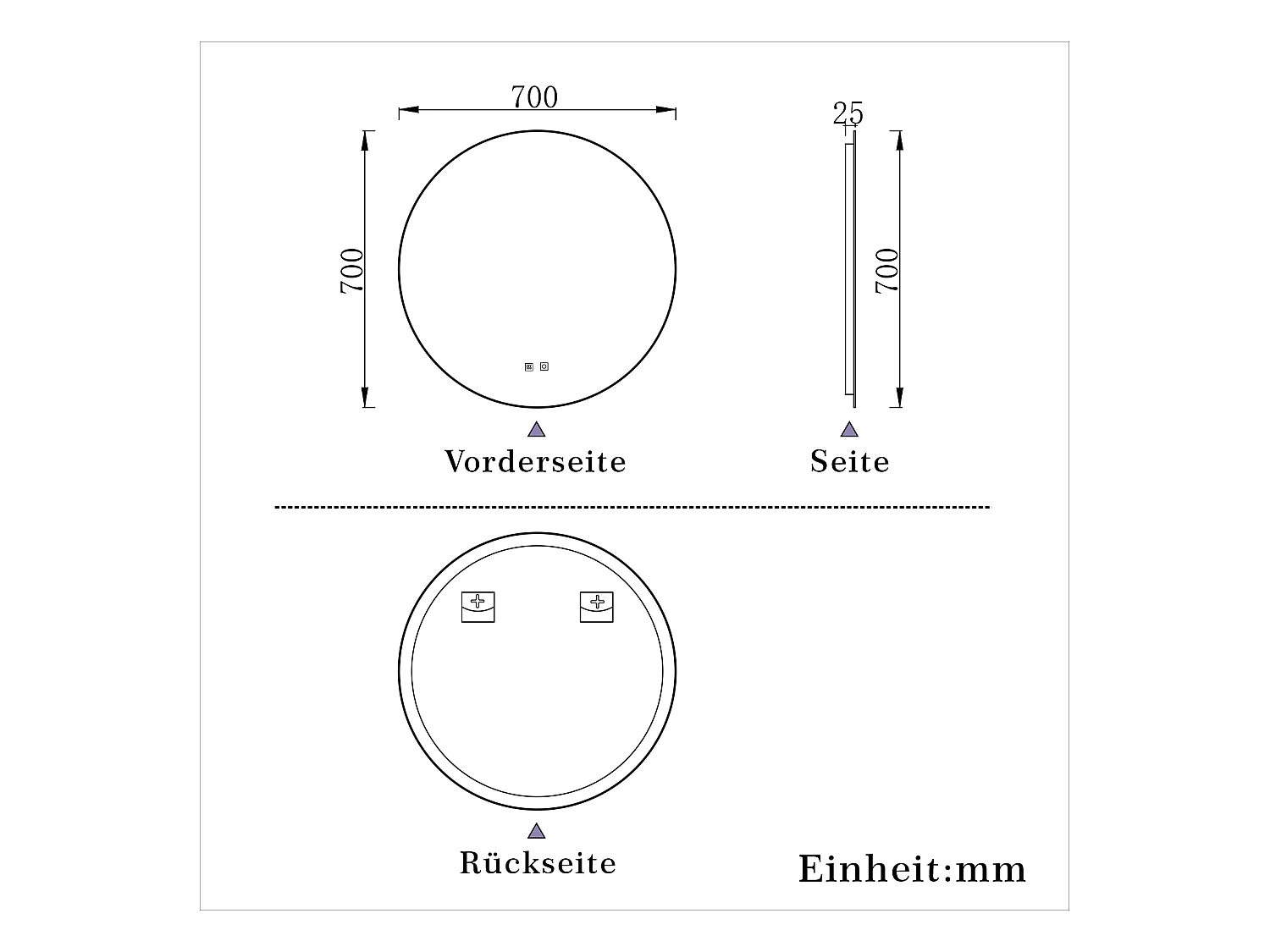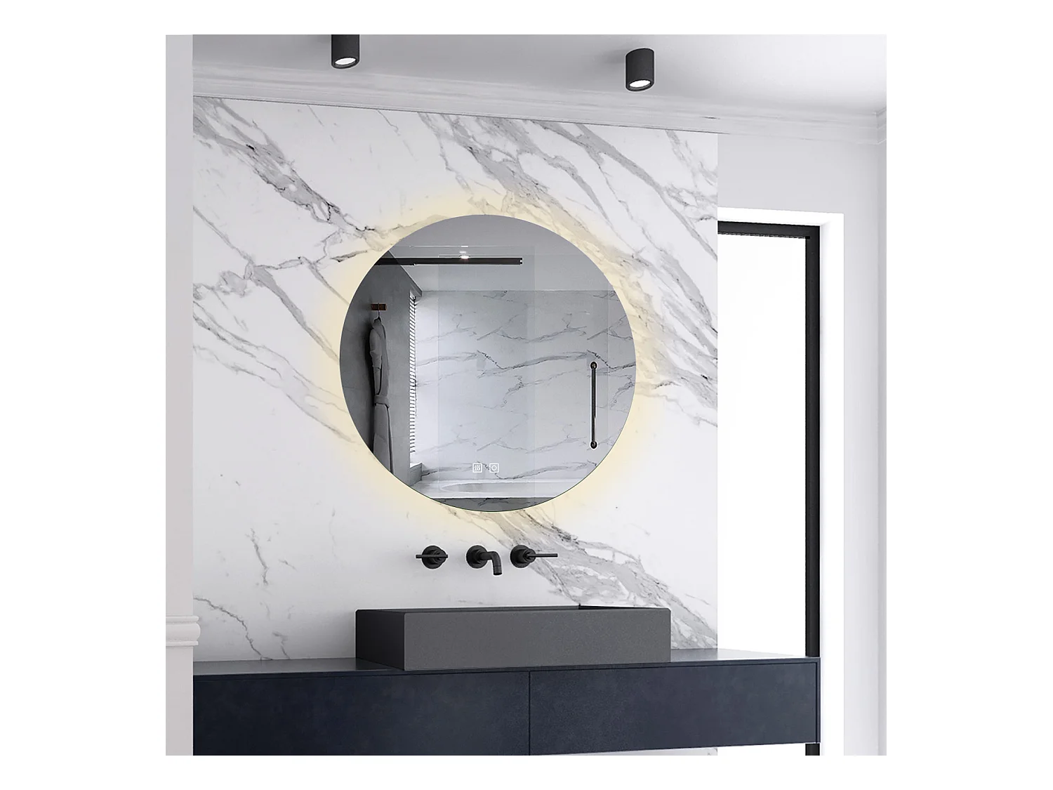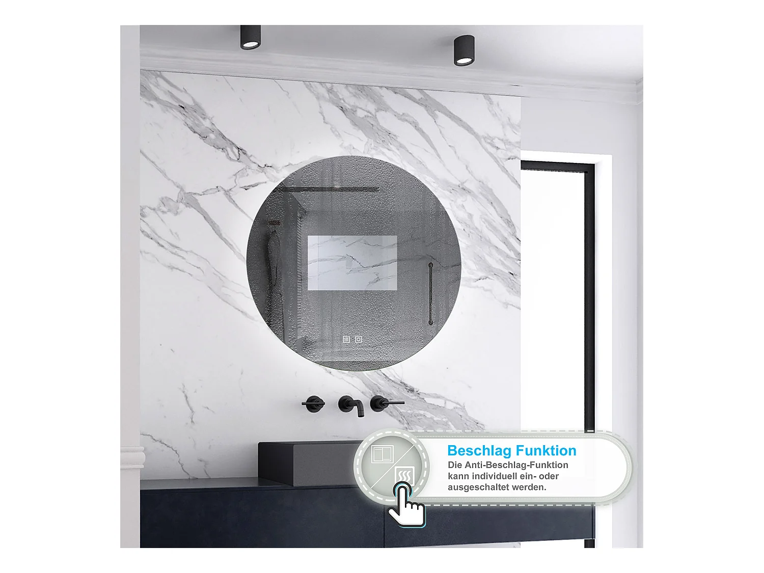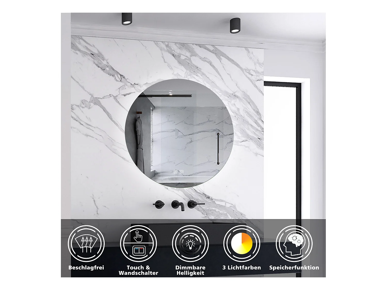 AICA Rund Badspiegel 70cm Beschlagfrei 3 Lichtfarbe+Dimmbar Memory-Funktion