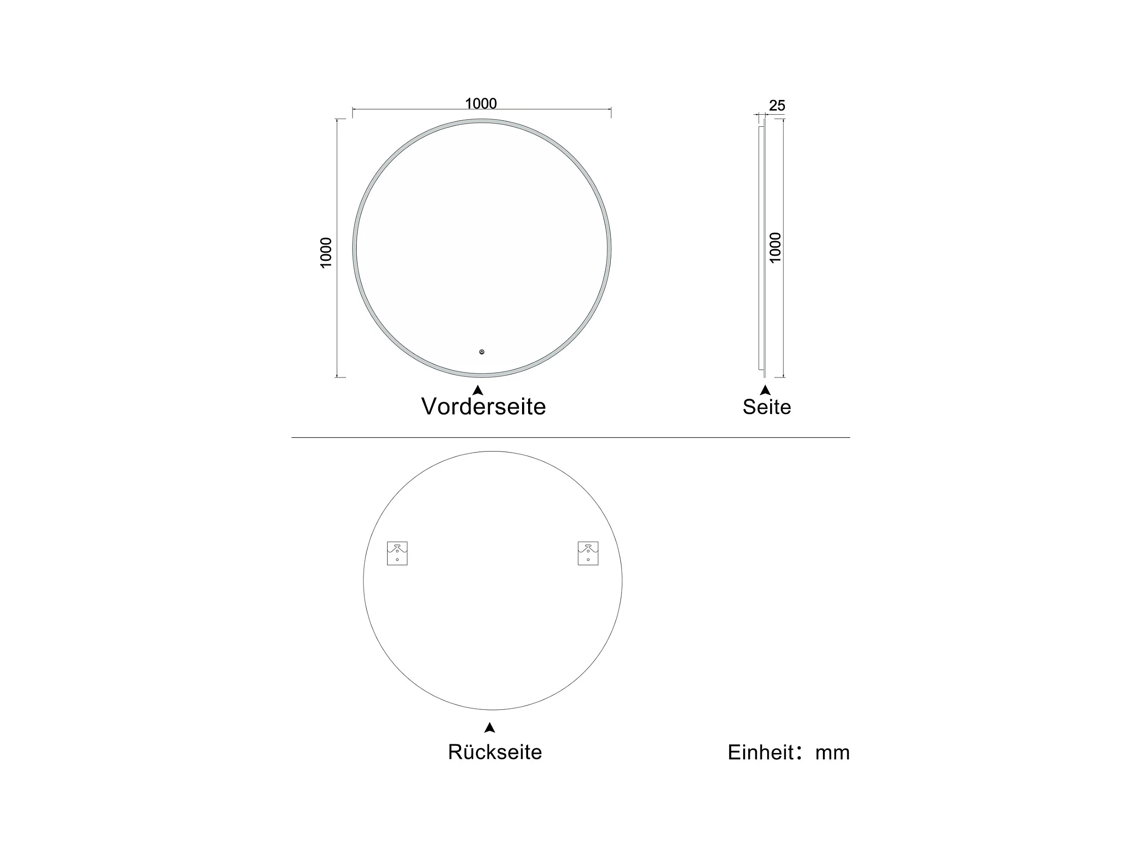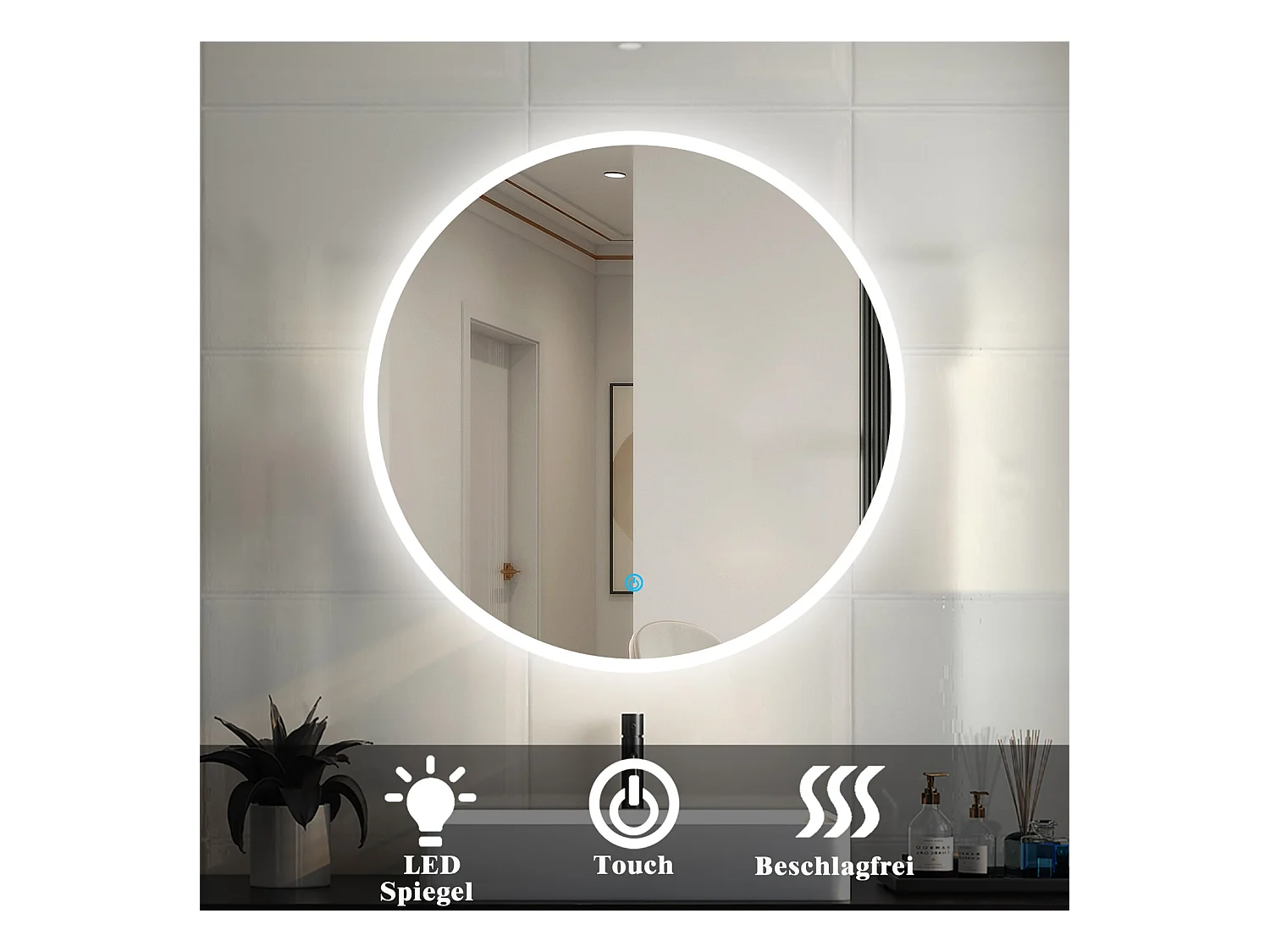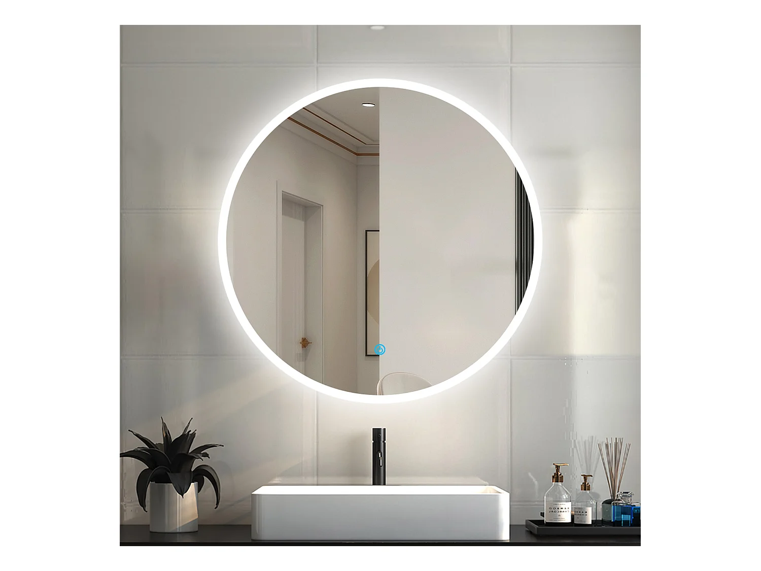 AICA Rund Badspiegel mit LED-Beleuchtung ø100cm Touchschalter Beschlagfrei Kaltweiß