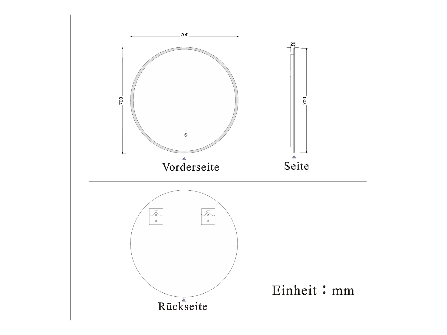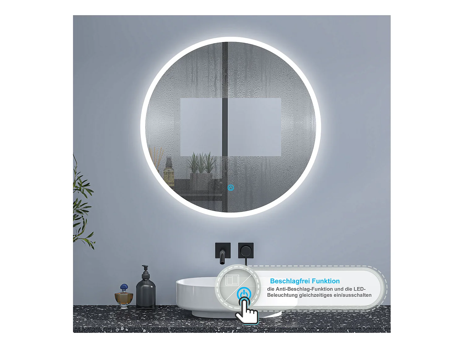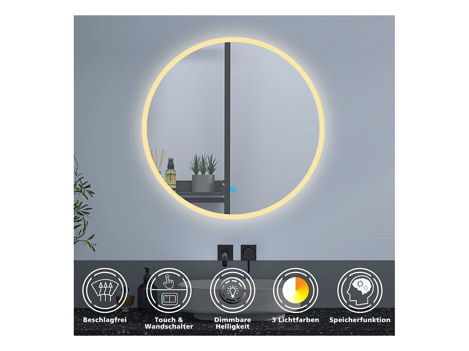 AICA Rund Badspiegel mit LED-Beleuchtung ø70cm 3 Lichtfarbe+Dimmbar Beschlagfrei Memory-Funktion Wand/Touchschalter