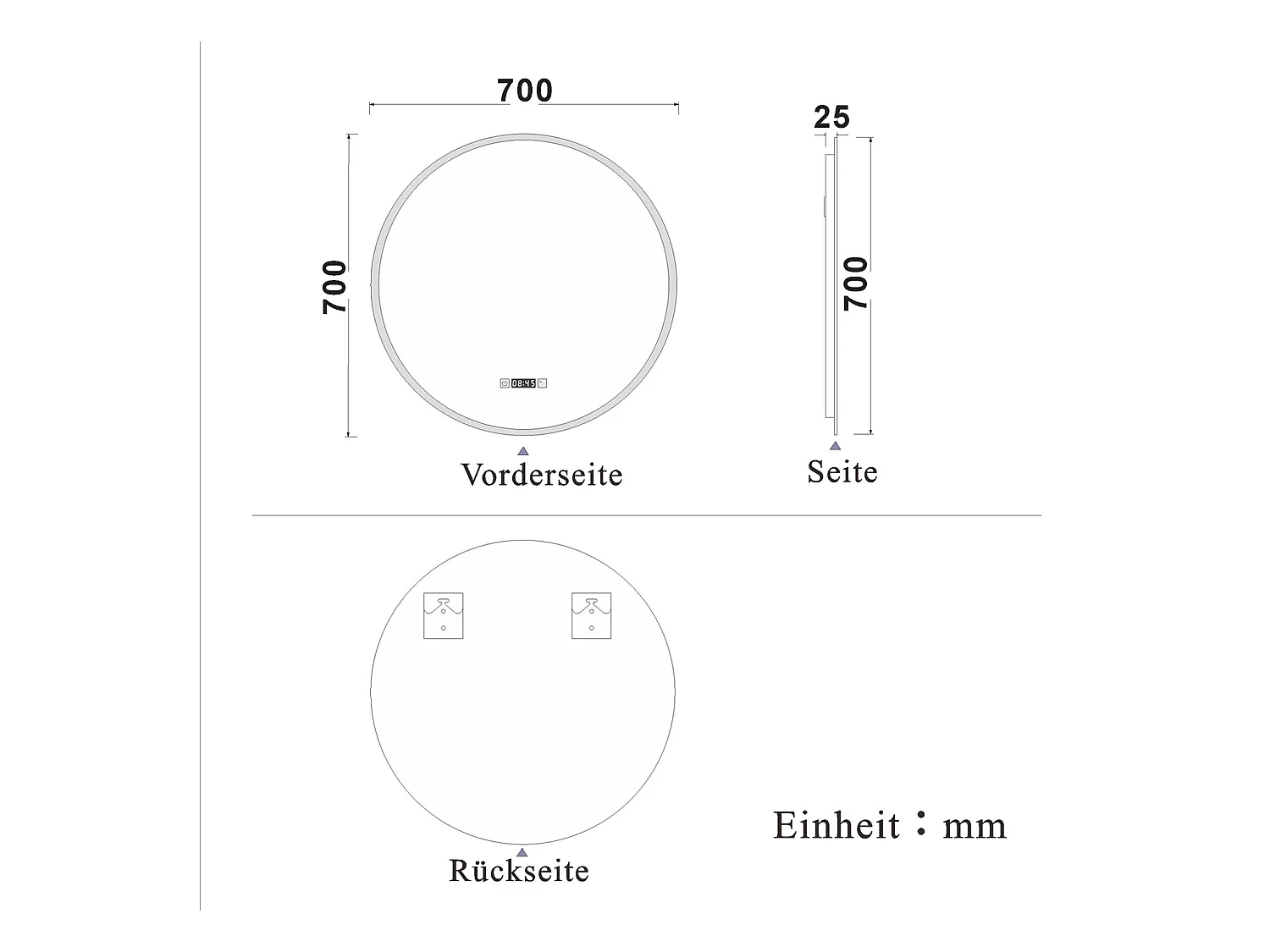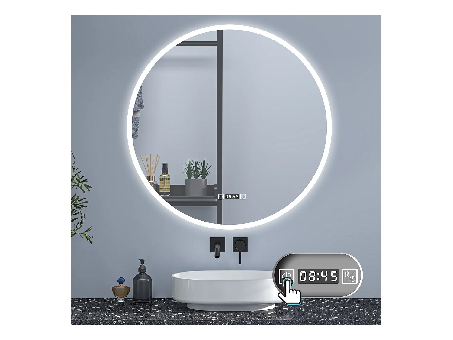 AICA Rund LED Badspiegel ø70cm Uhr 3 Lichtfarbe+Dimmbar Beschlagfrei Memory-Funktion Wand/Touchschalter