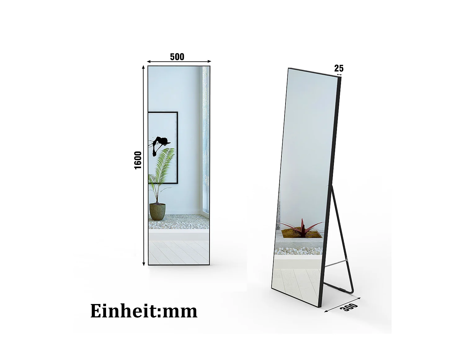 AICA Standspiegel 160x50cm 2 in 1 Ganzkörperspiegel mit Schwarz Rahmen