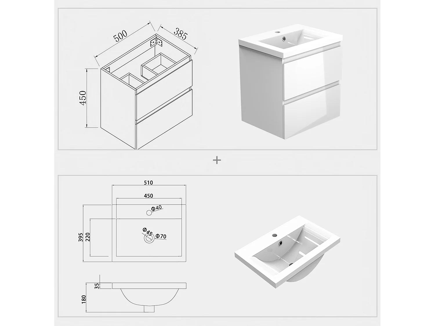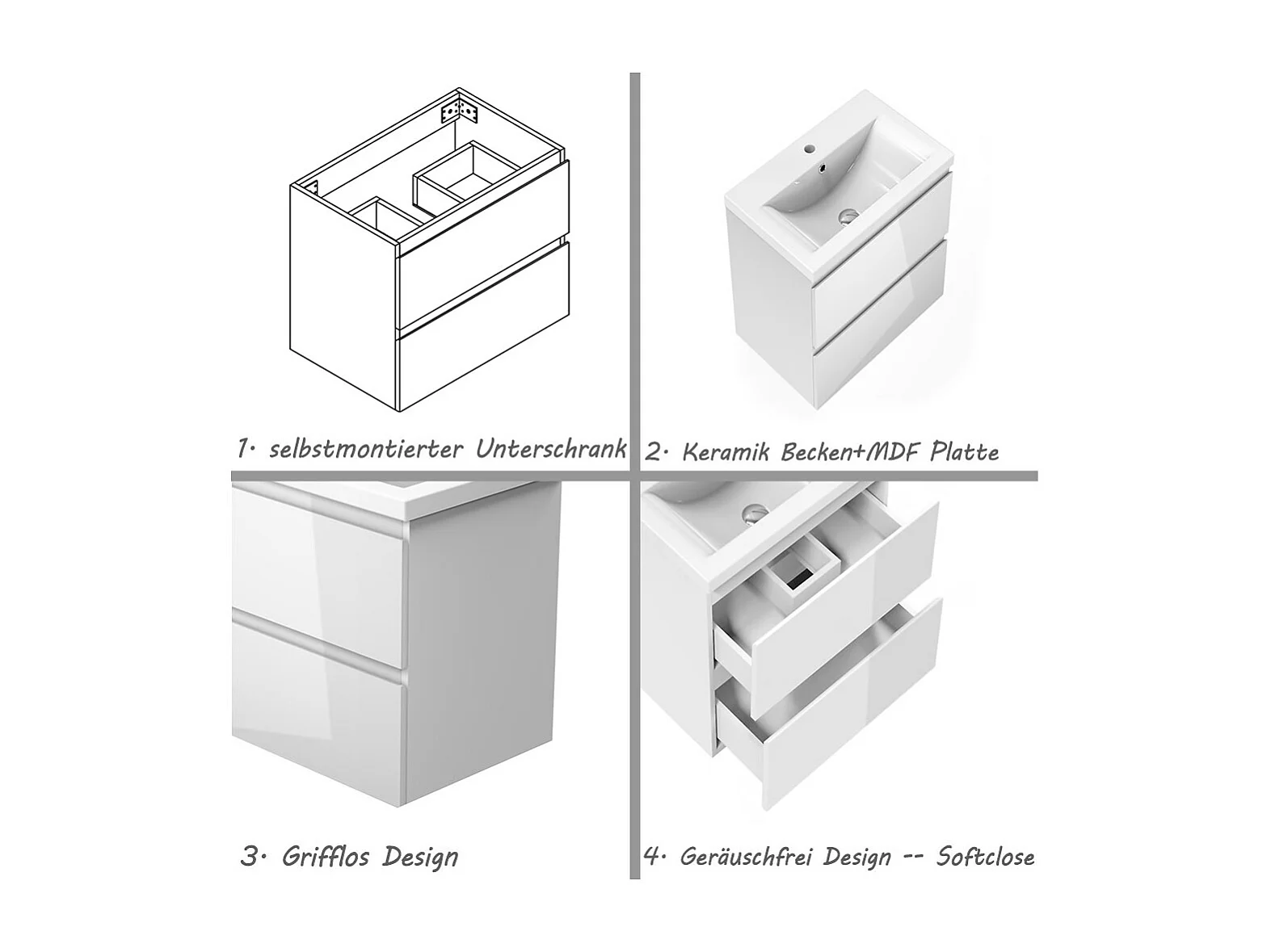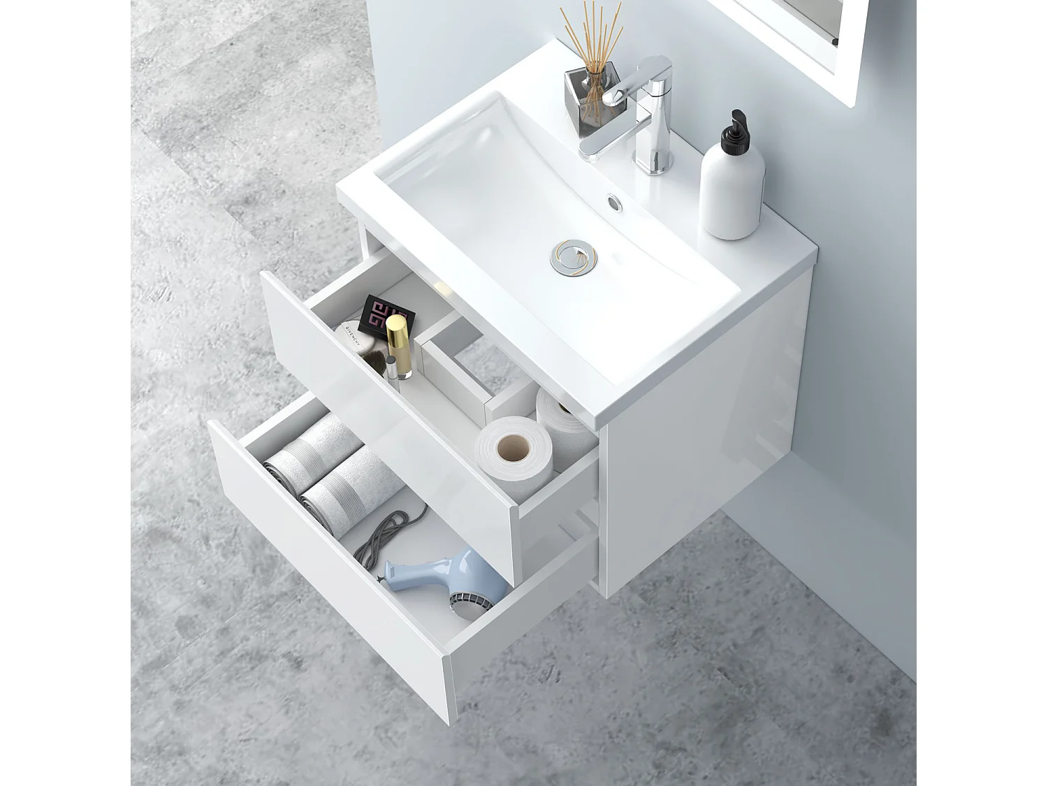 AICA Waschbeckenunterschrank 50cm Keramik Waschtisch mit Unterschrank - Hochglanz Weiß Hängeschrank - CINIC