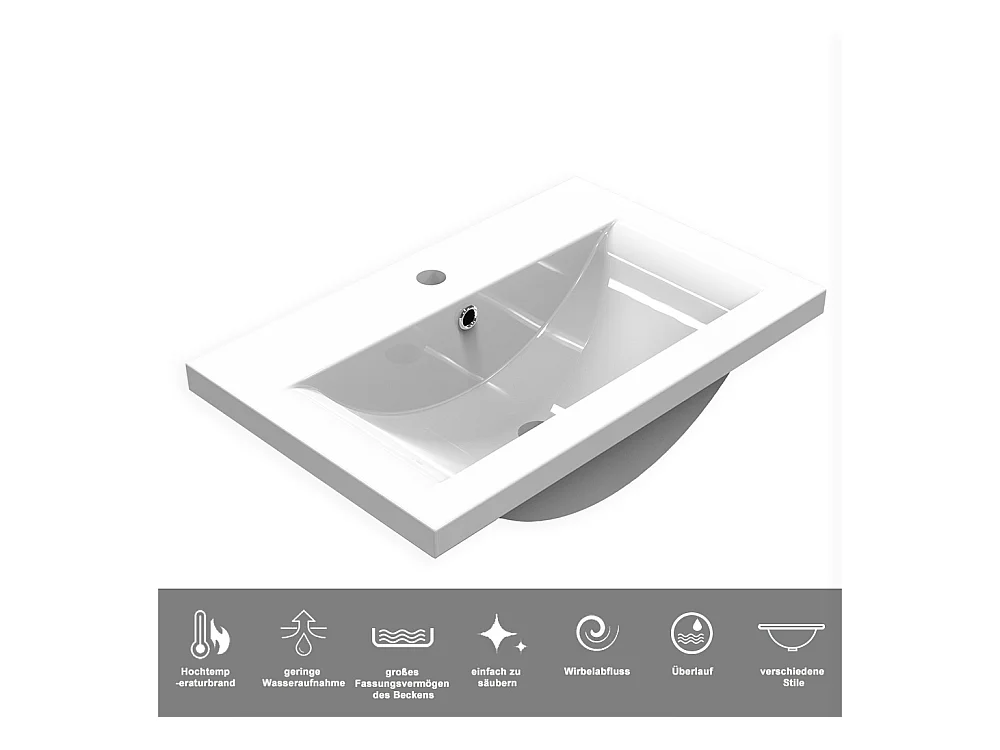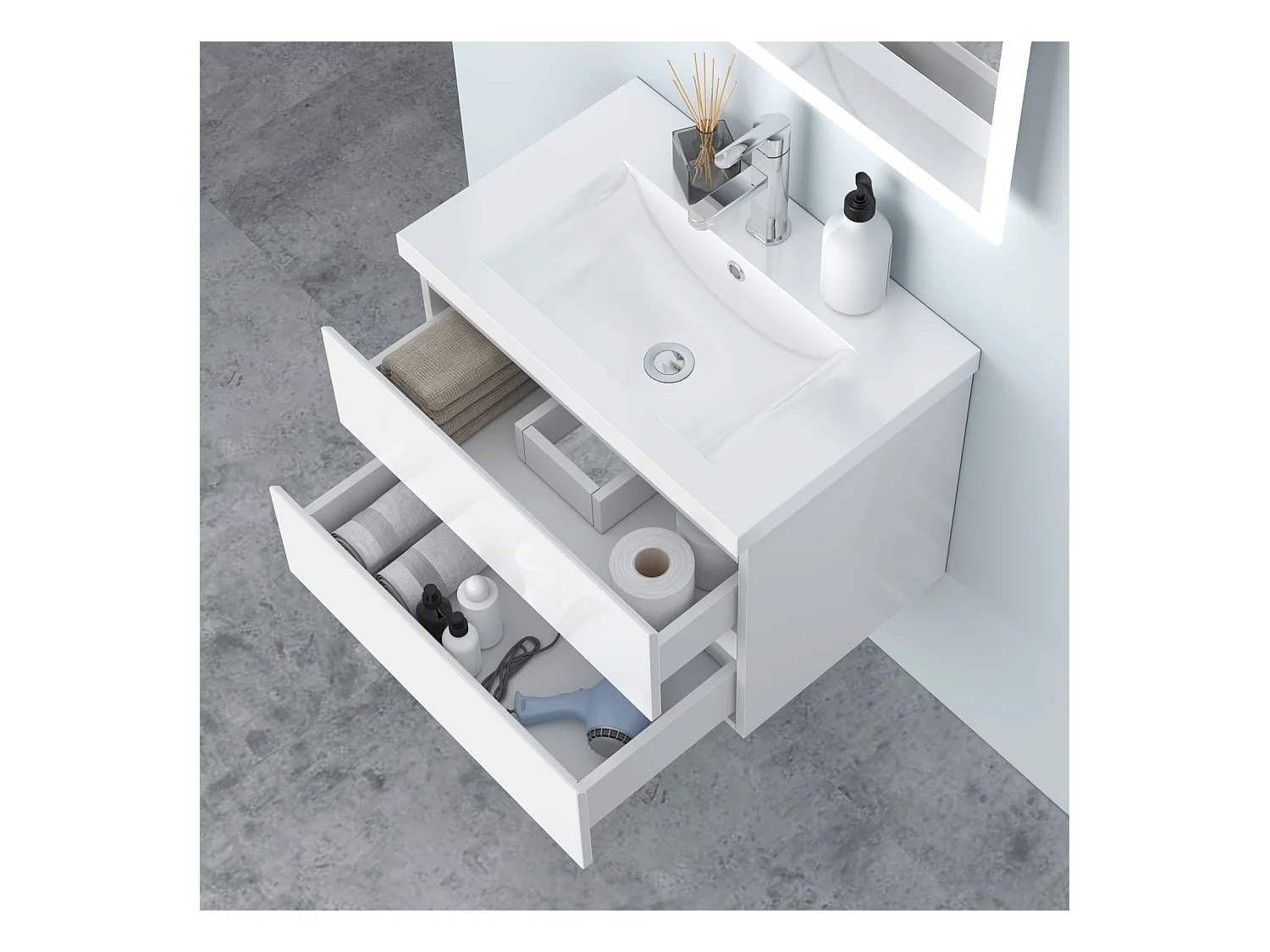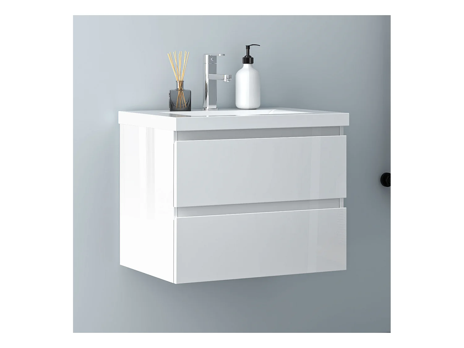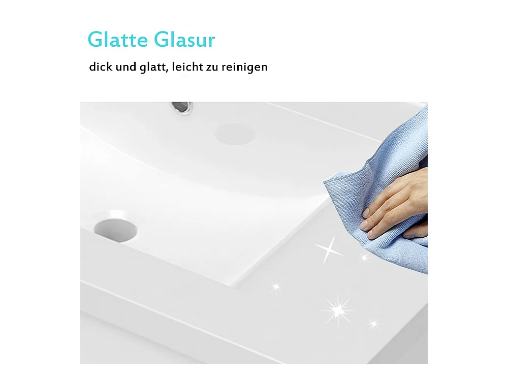 AICA Waschbeckenunterschrank 60cm Dickes Keramik Waschtisch mit Unterschrank - Hochglanz Weiß Hängeschrank - CINIC