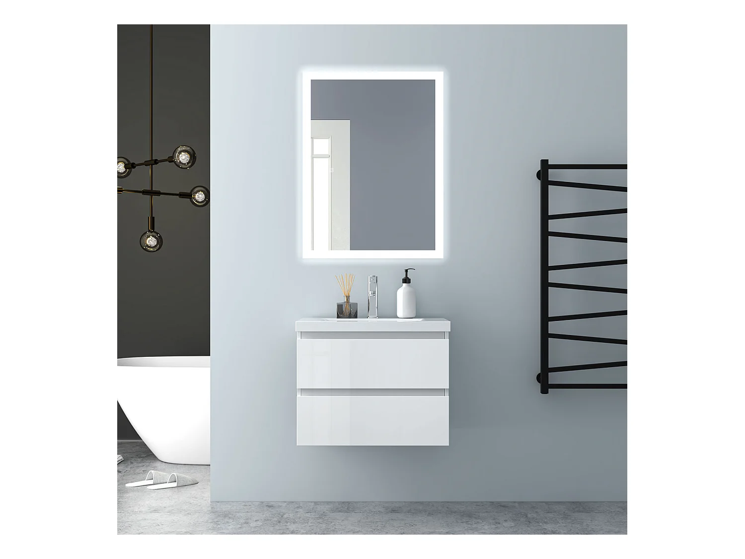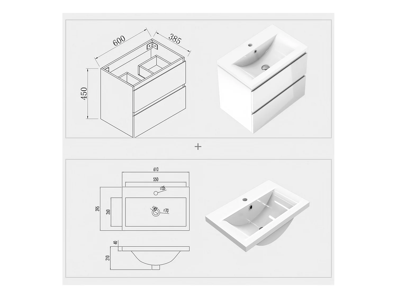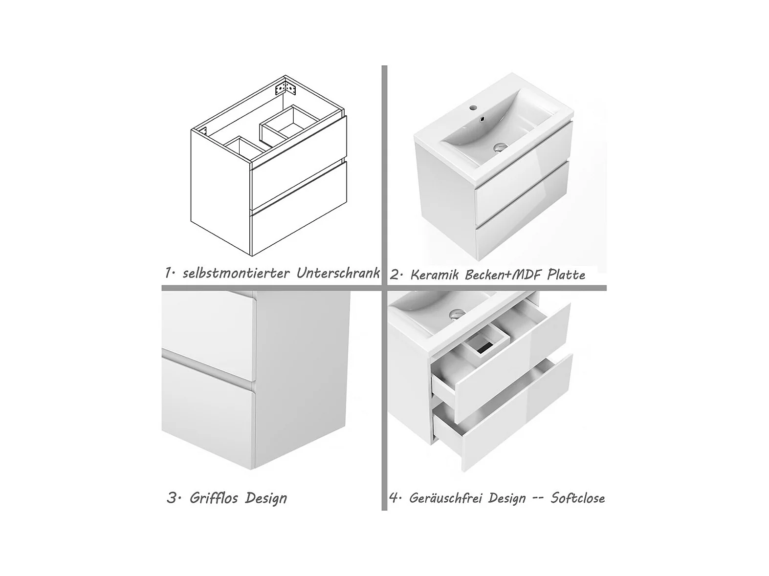 AICA Waschbeckenunterschrank 60cm Dickes Keramik Waschtisch mit Unterschrank - Hochglanz Weiß Hängeschrank - CINIC