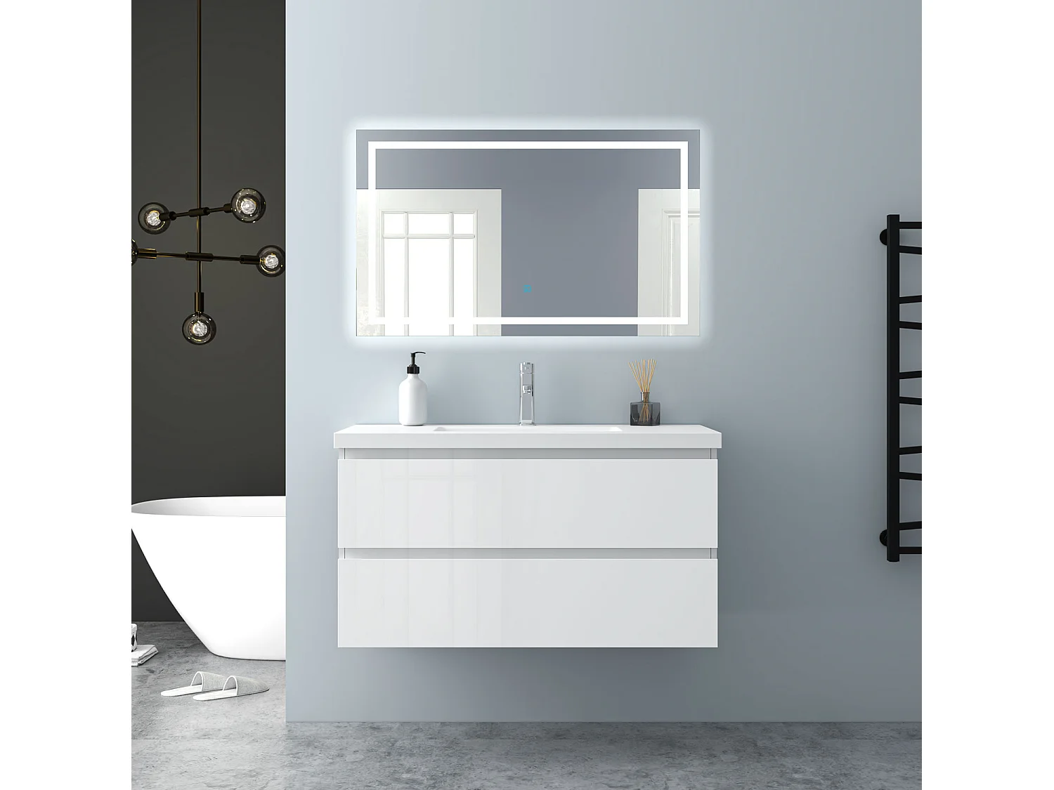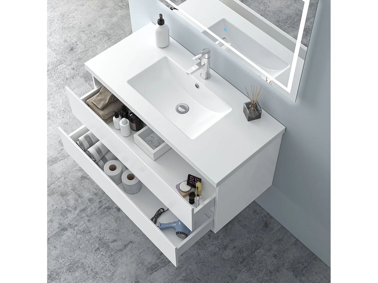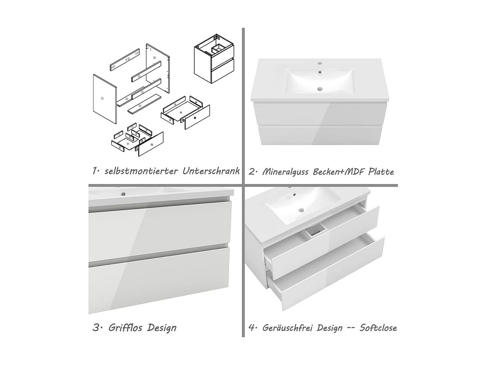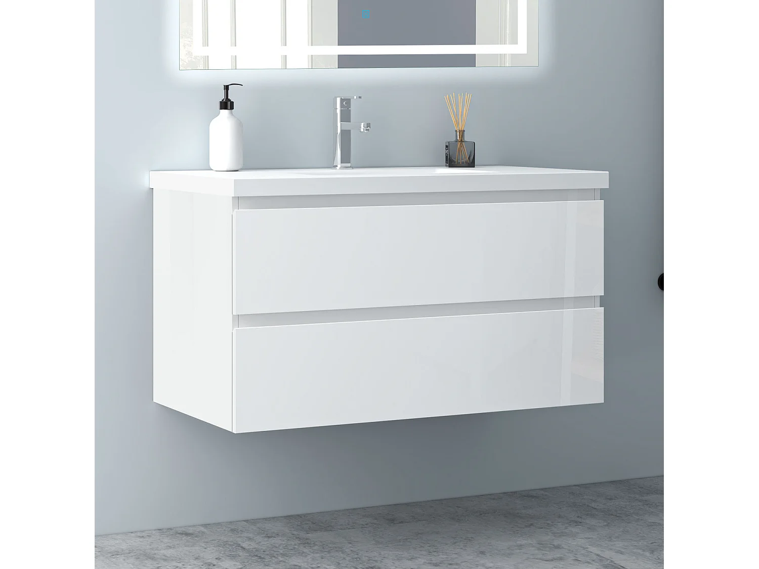 AICA Waschbeckenunterschrank hängend 100cm Mineralguss Waschtisch mit Unterschrank - Hochglanz Weiß - CINIC
