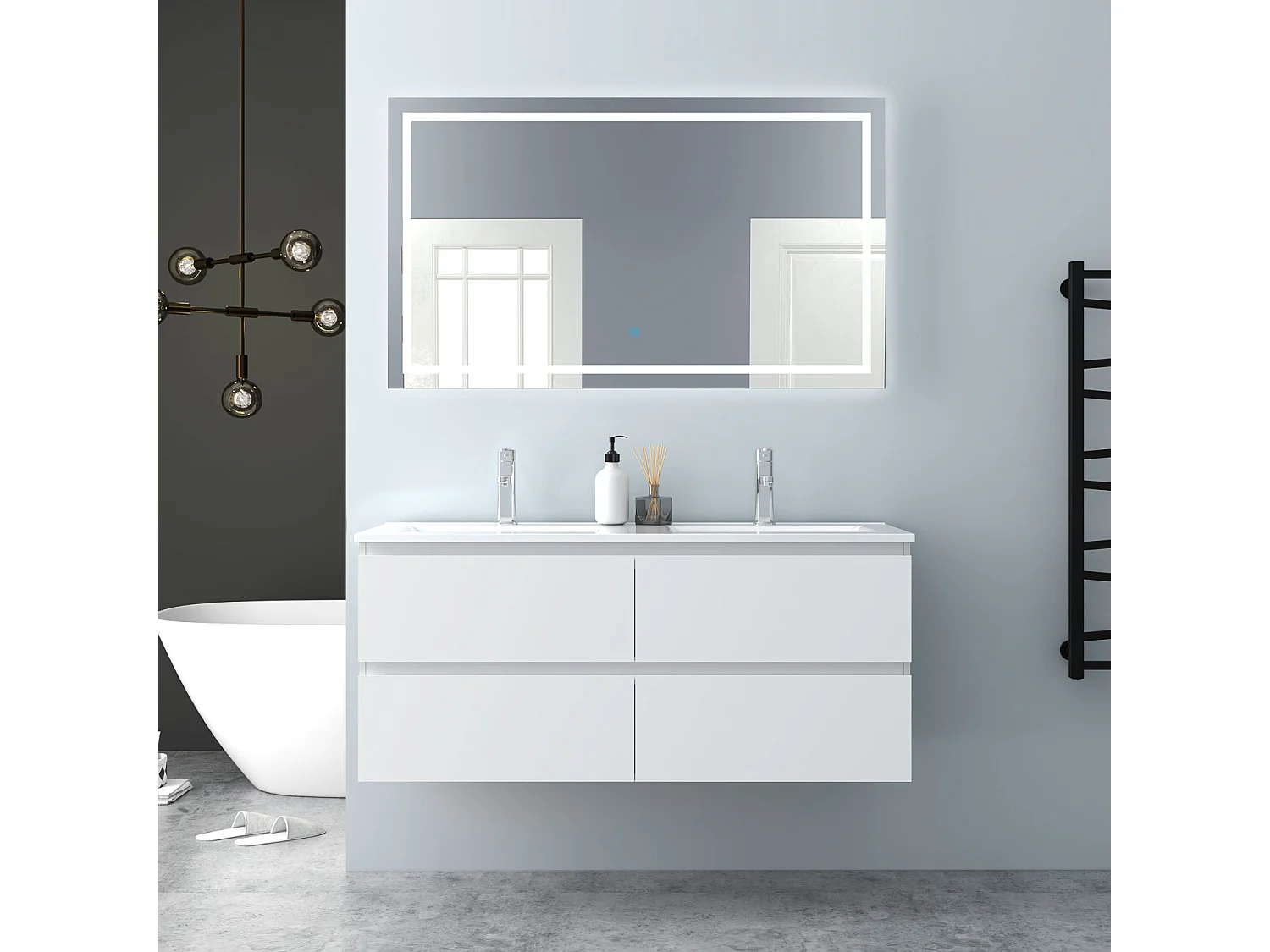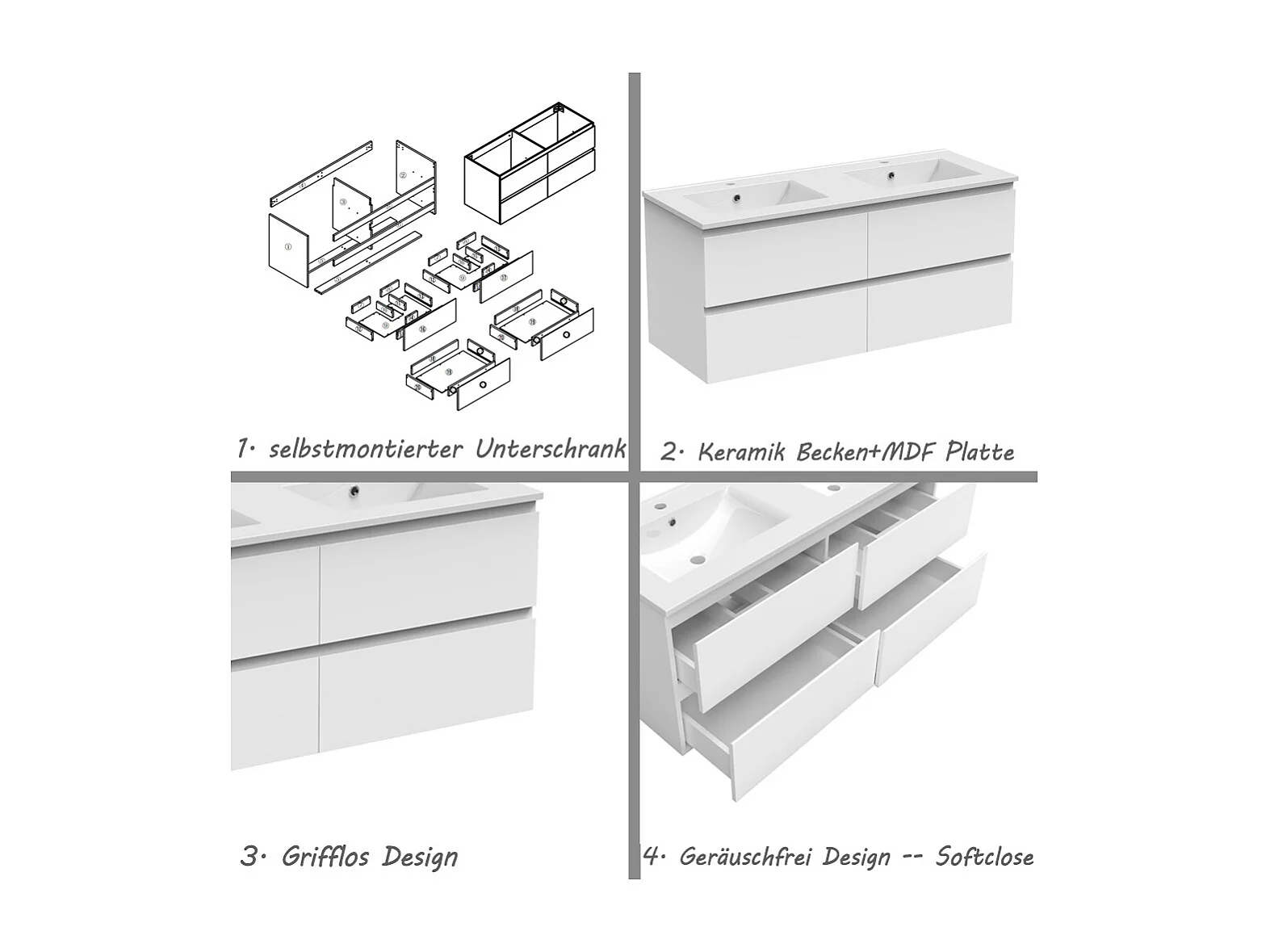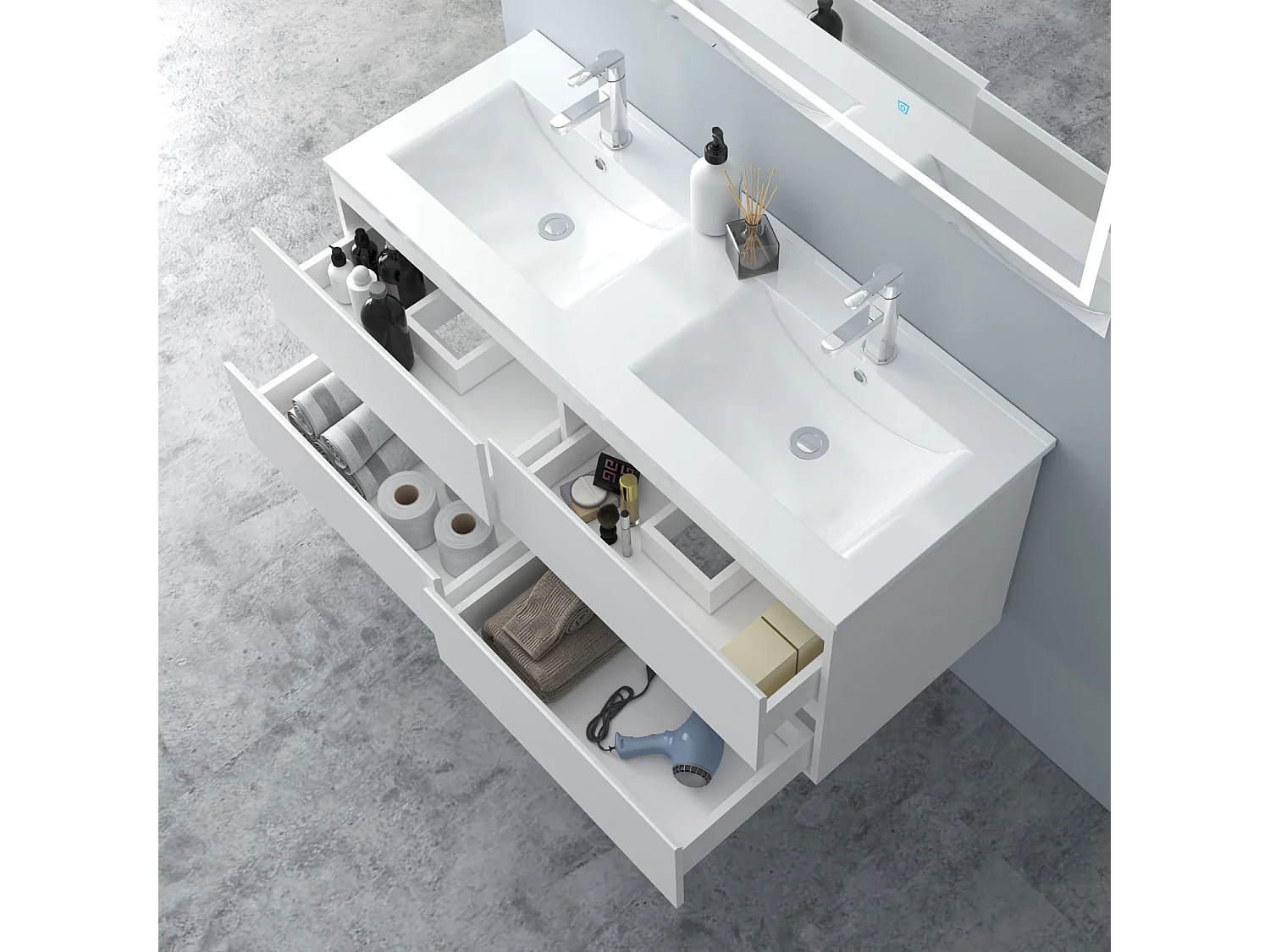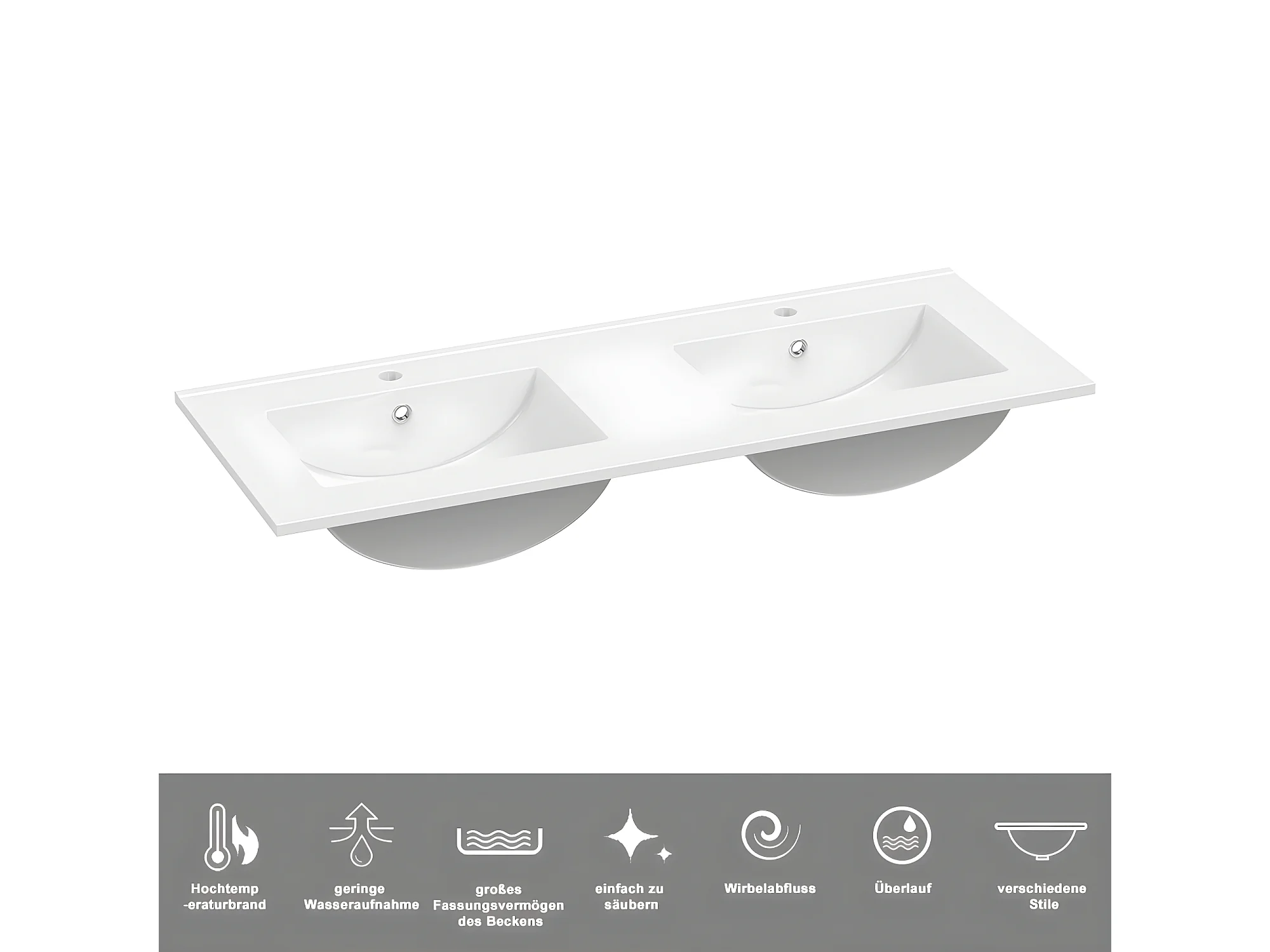 AICA Waschbeckenunterschrank hängend 120cm Keramik Einbauwaschbecken mit Unterschrank - Weiß Matt - CINIC