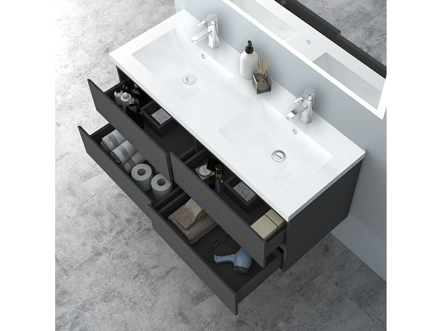 AICA Waschbeckenunterschrank hängend 120cm Mineralguss Einbauwaschbecken mit Unterschrank - Dunkelgrau Matt - CINIC
