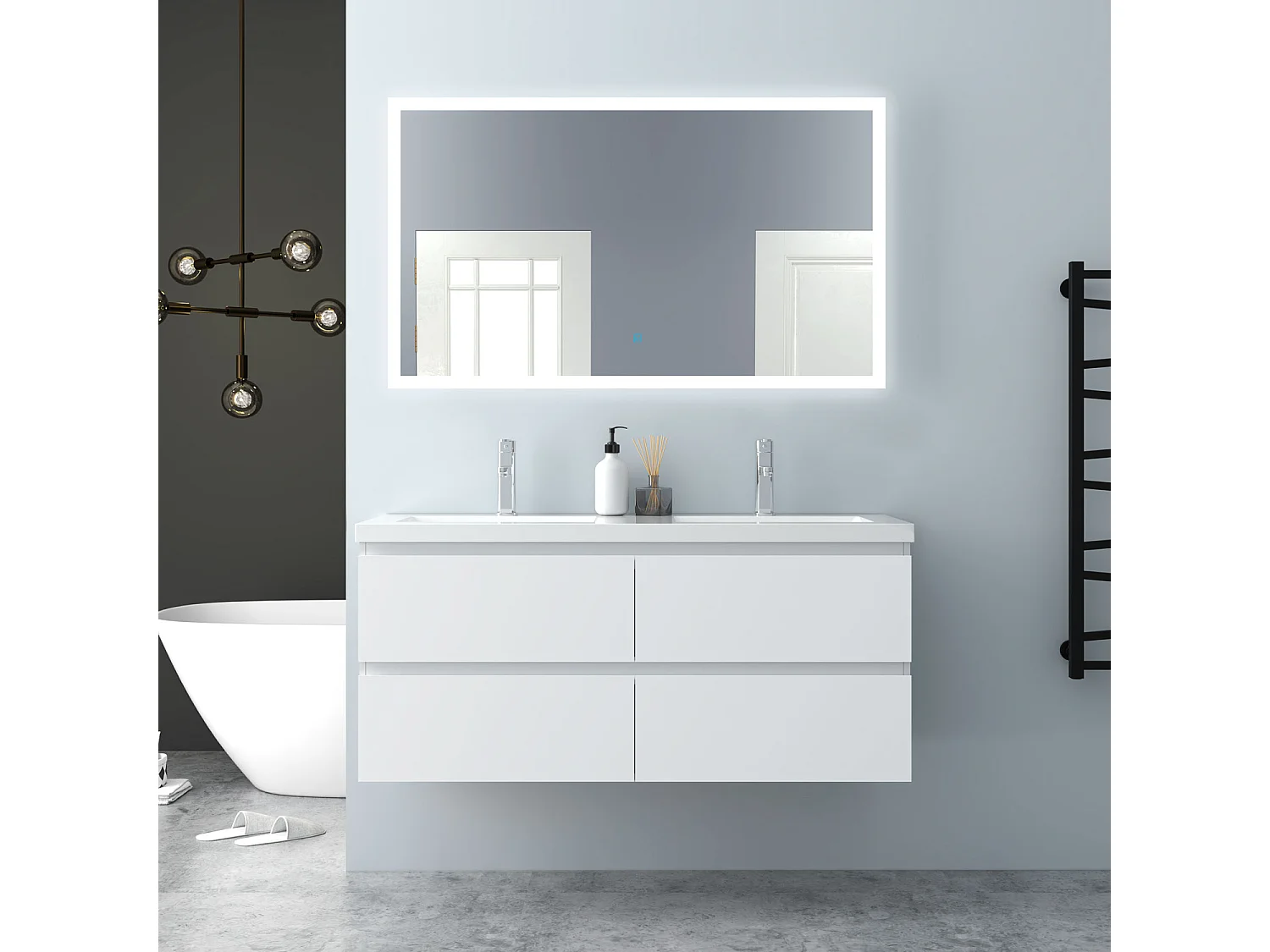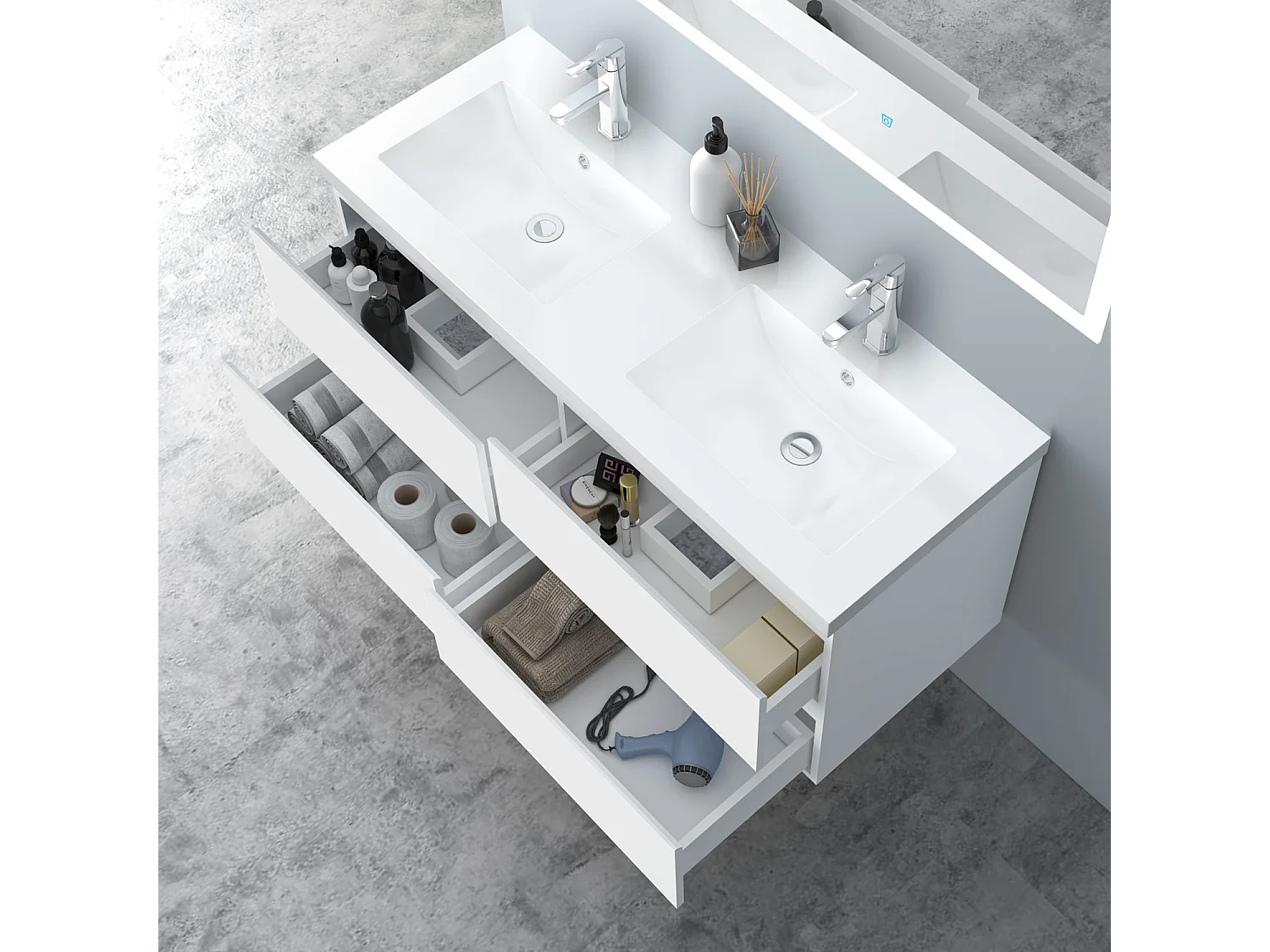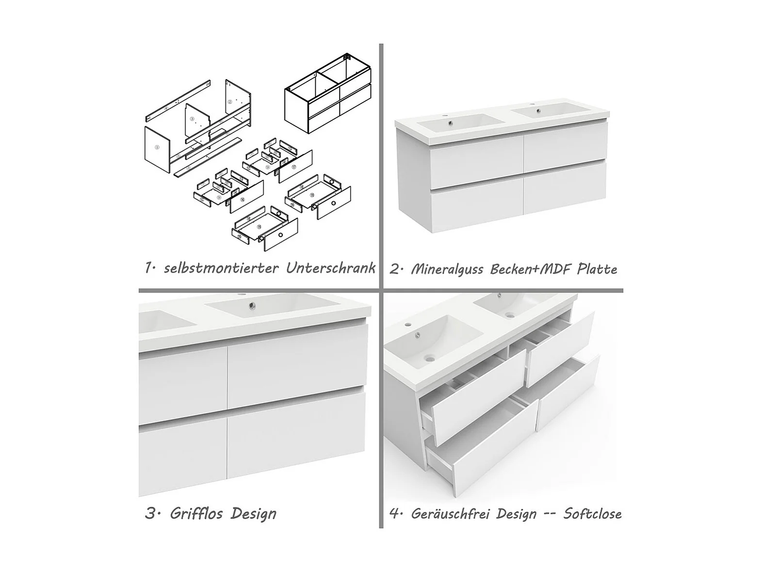 AICA Waschbeckenunterschrank hängend 120cm Mineralguss Einbauwaschbecken mit Unterschrank - Weiß Matt - CINIC