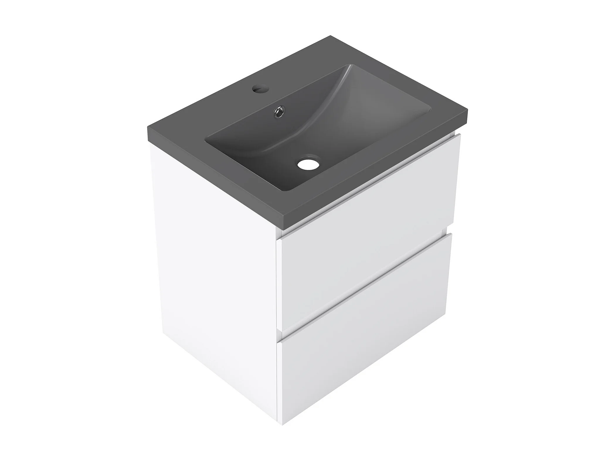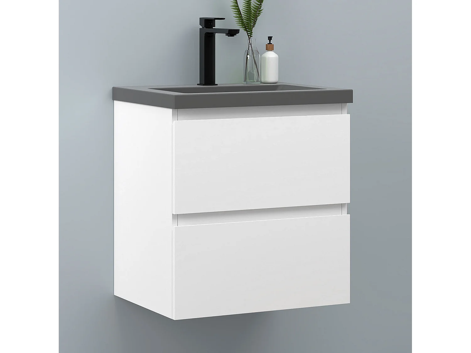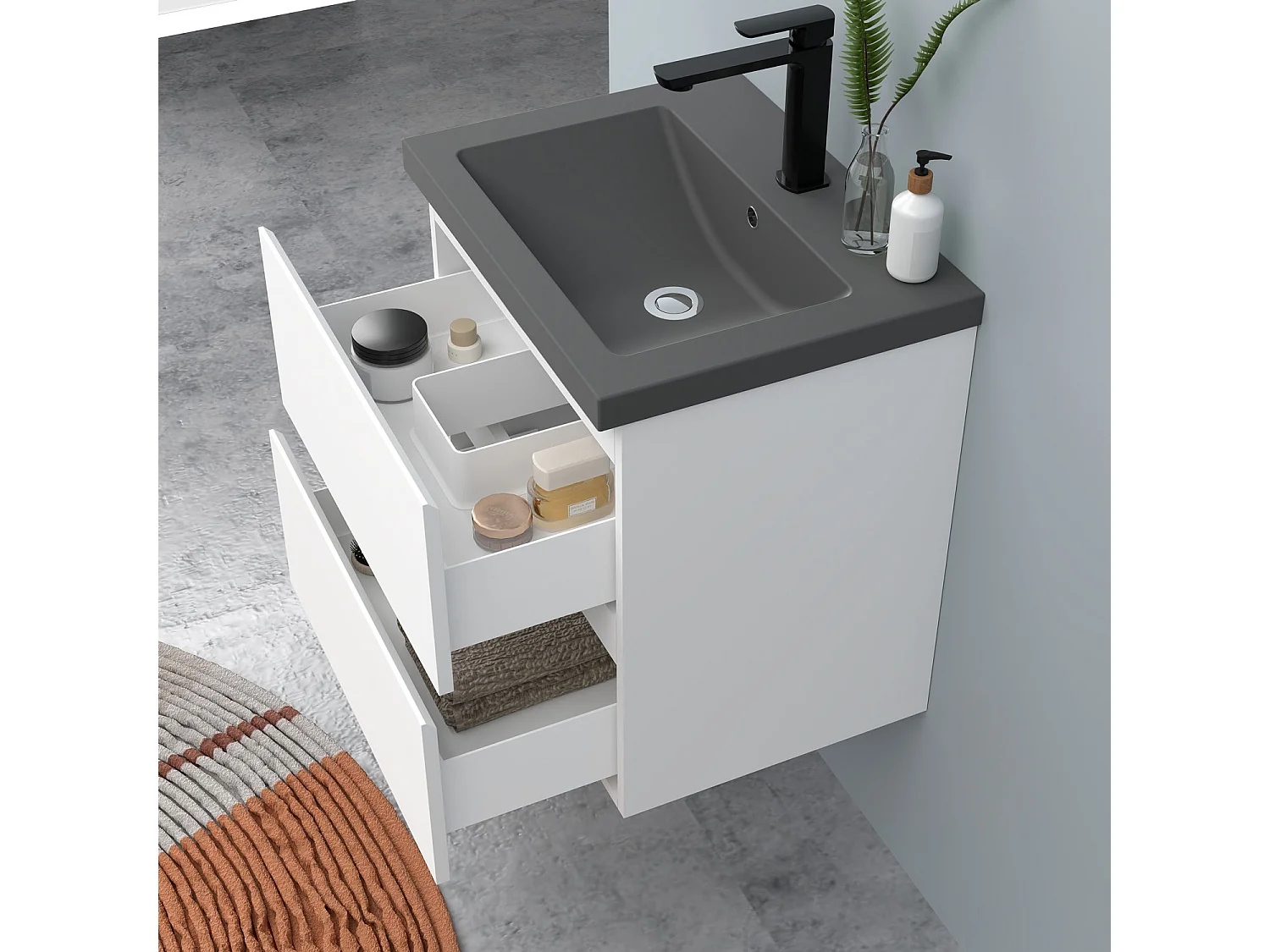 AICA Waschbeckenunterschrank hängend 50cm Dunkelgrau Mineralguss-Waschbecken mit Unterschrank - Weiß Matt - CINIC