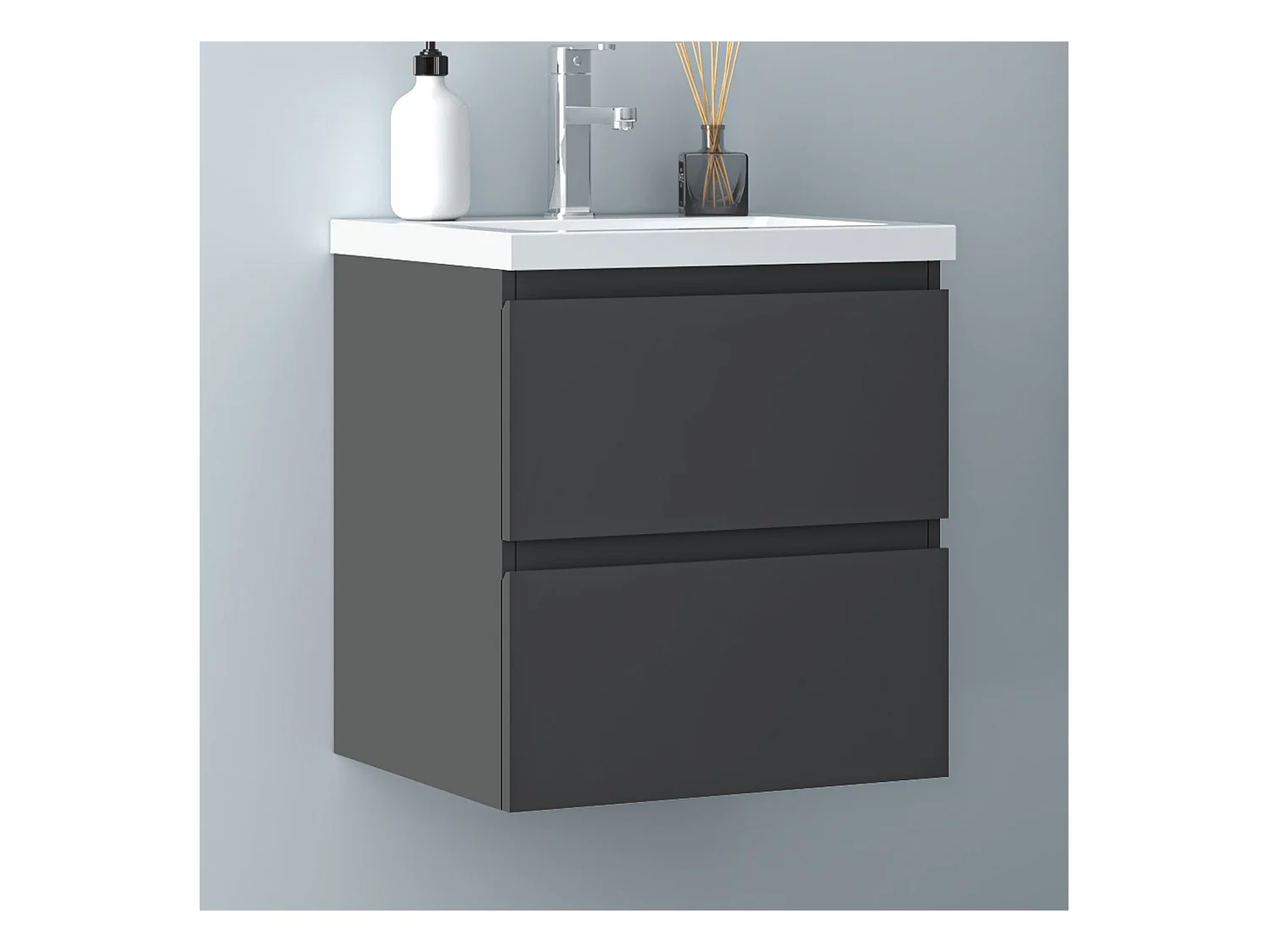 AICA Waschbeckenunterschrank hängend 50cm Keramik Waschtisch mit Unterschrank - Dunkelgrau Matt - CINIC