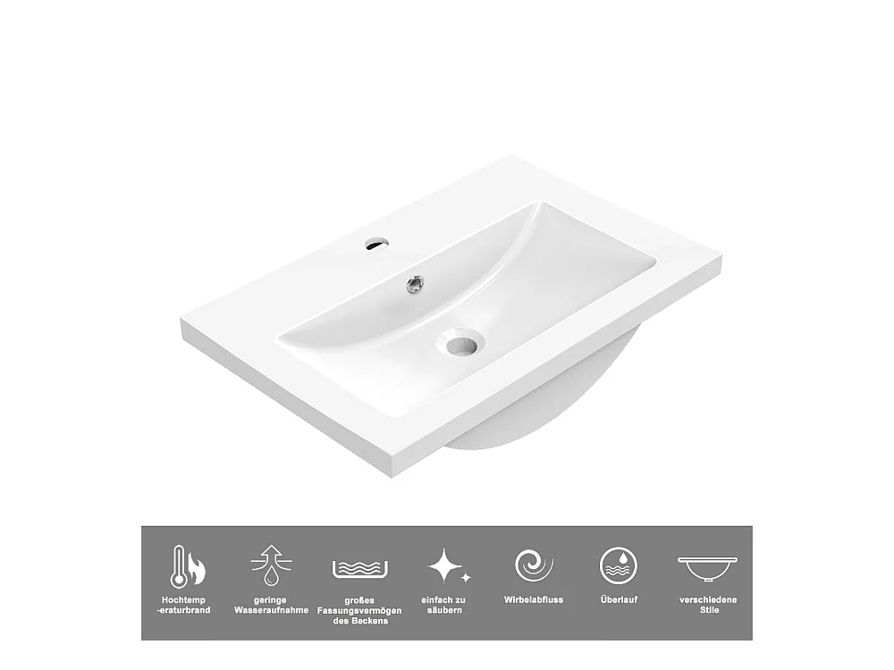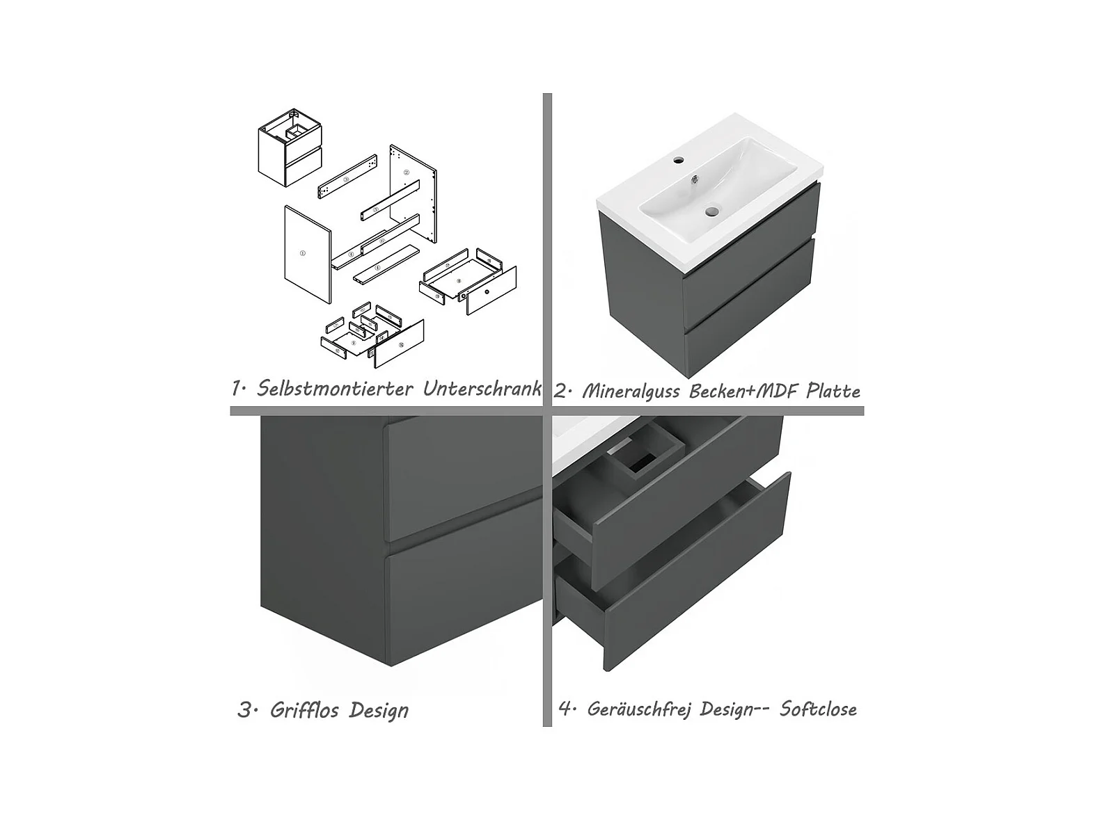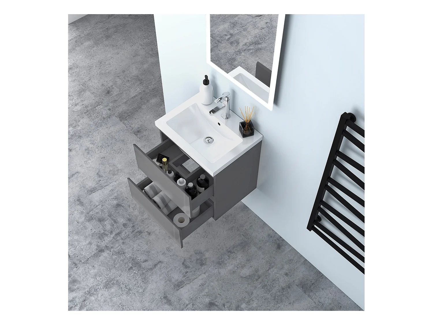 AICA Waschbeckenunterschrank hängend 50cm Keramik Waschtisch mit Unterschrank - Hochglanz Dunkelgrau - CINIC