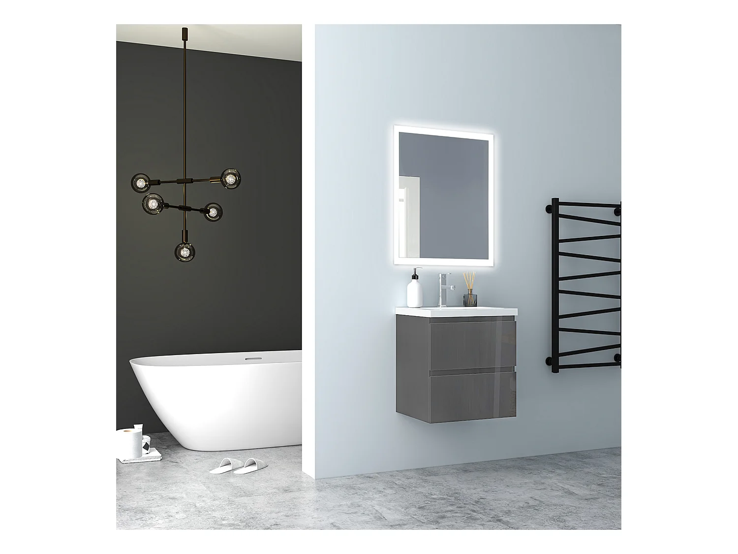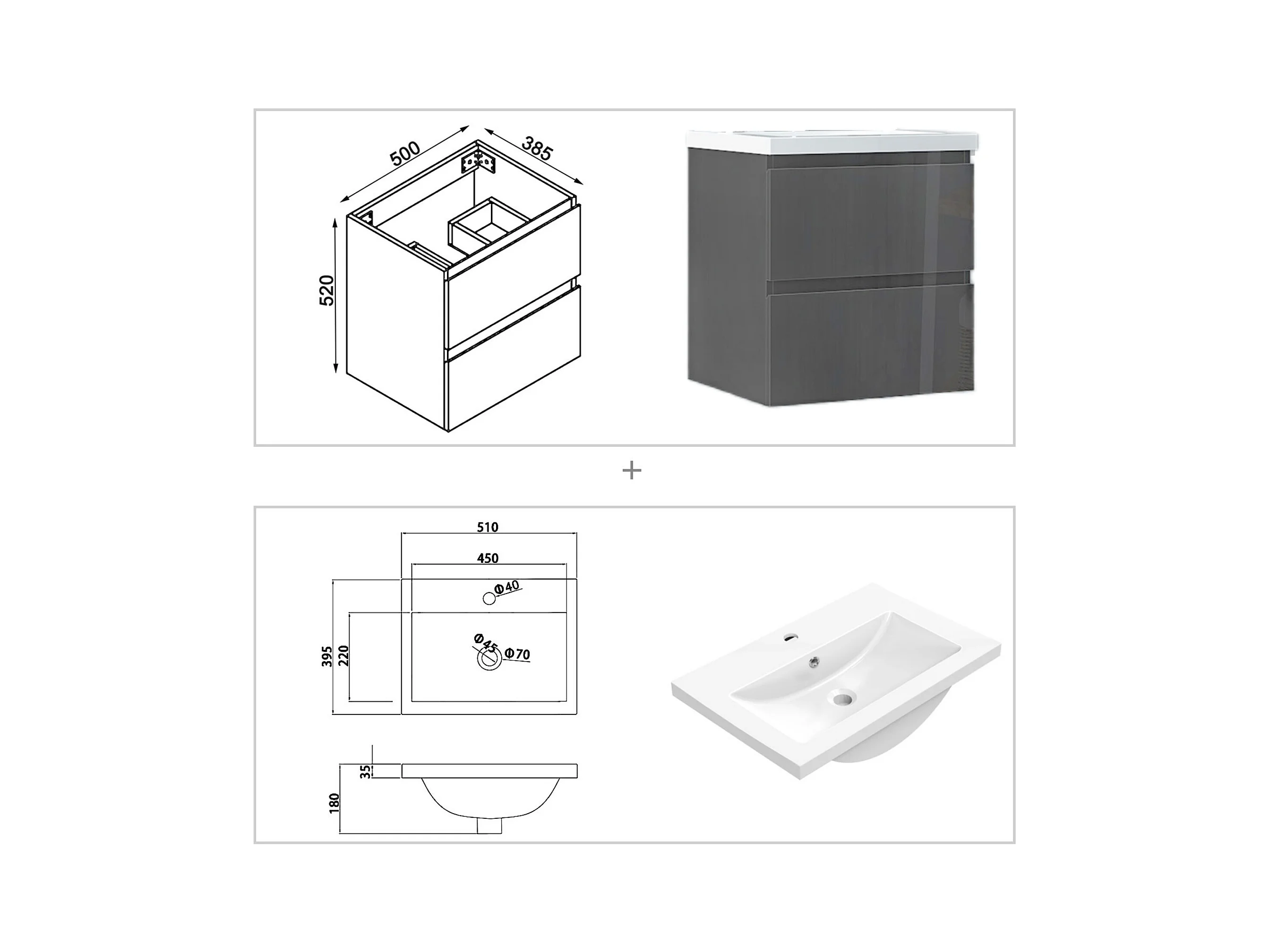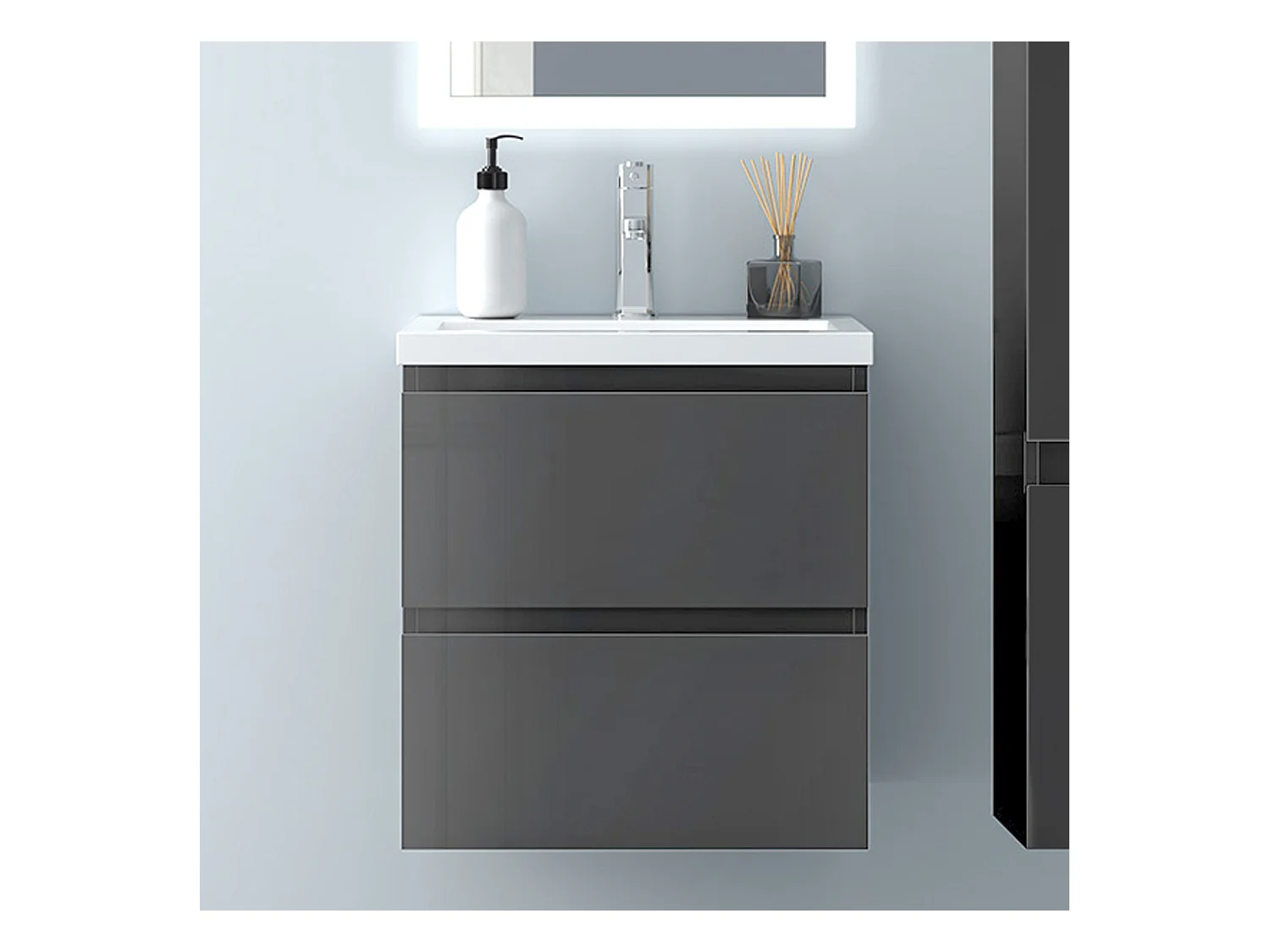 AICA Waschbeckenunterschrank hängend 50cm Keramik Waschtisch mit Unterschrank - Hochglanz Dunkelgrau - CINIC