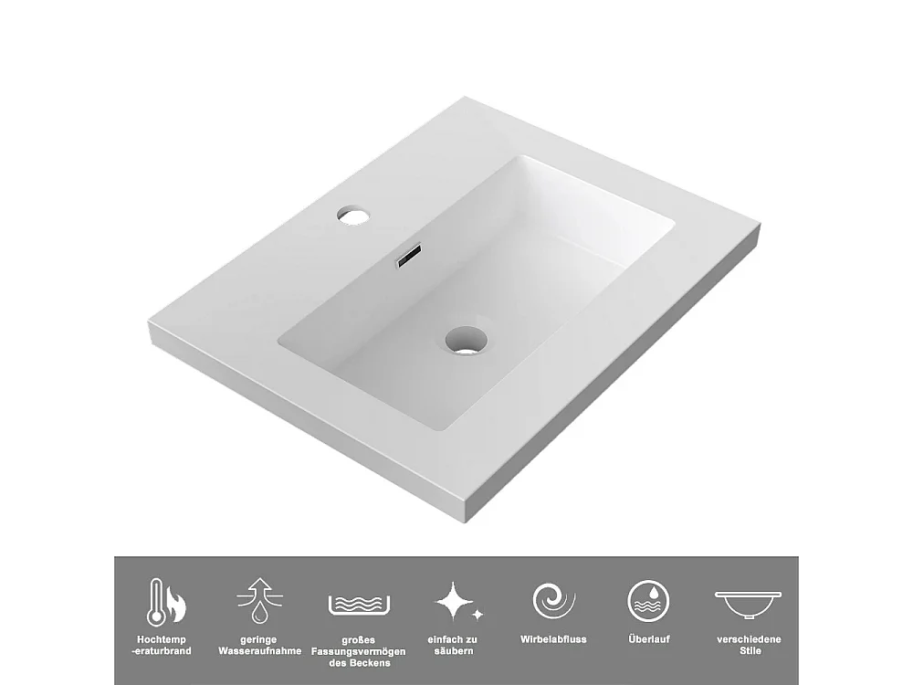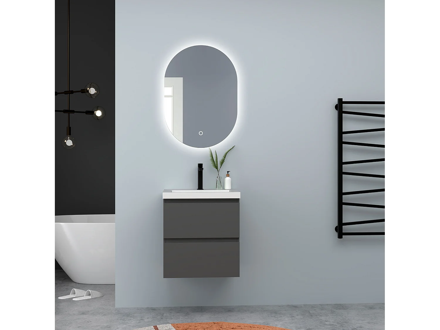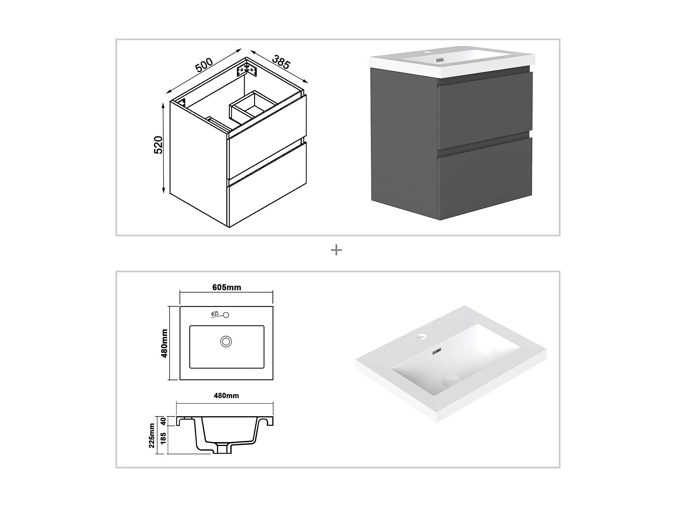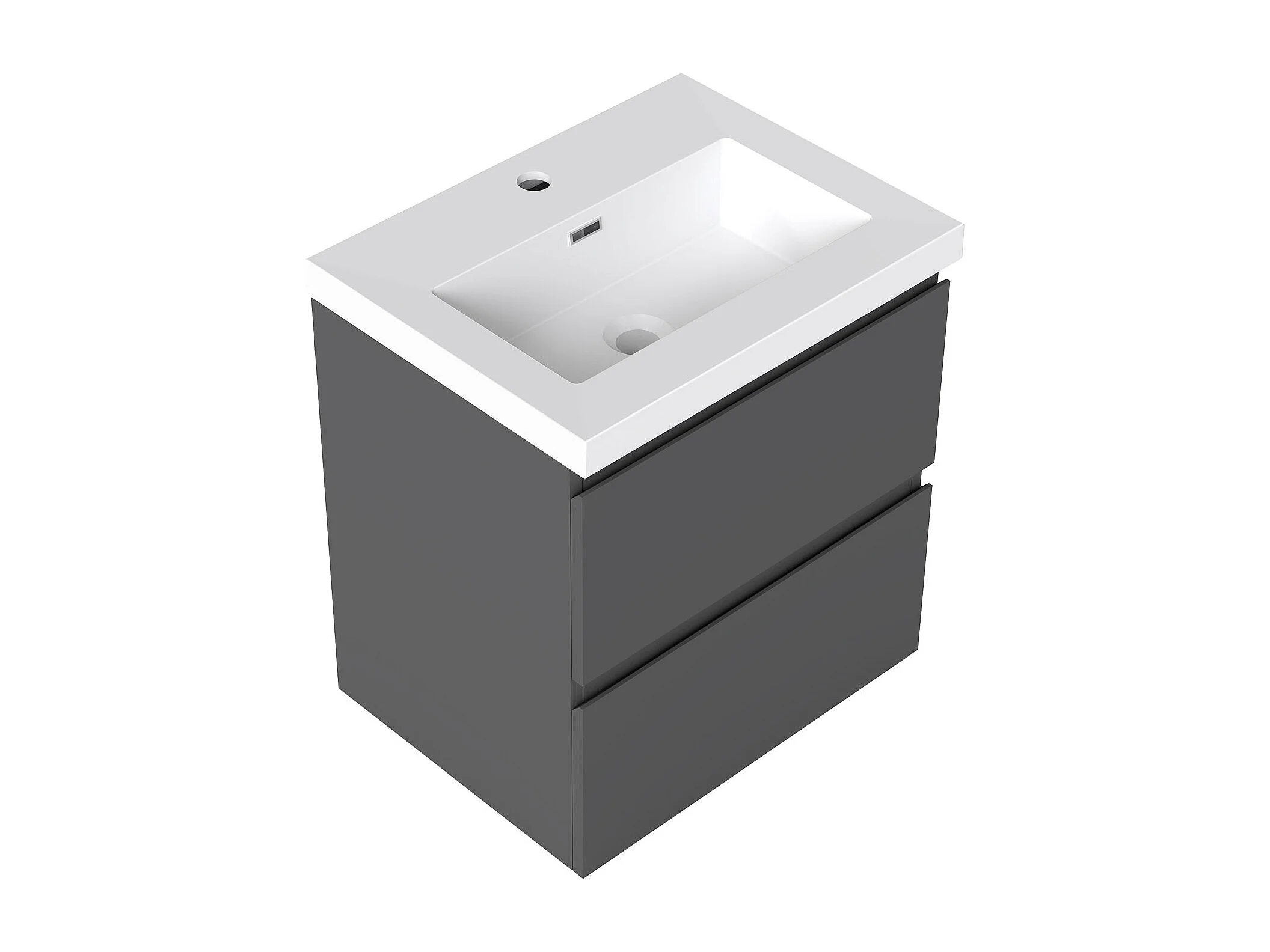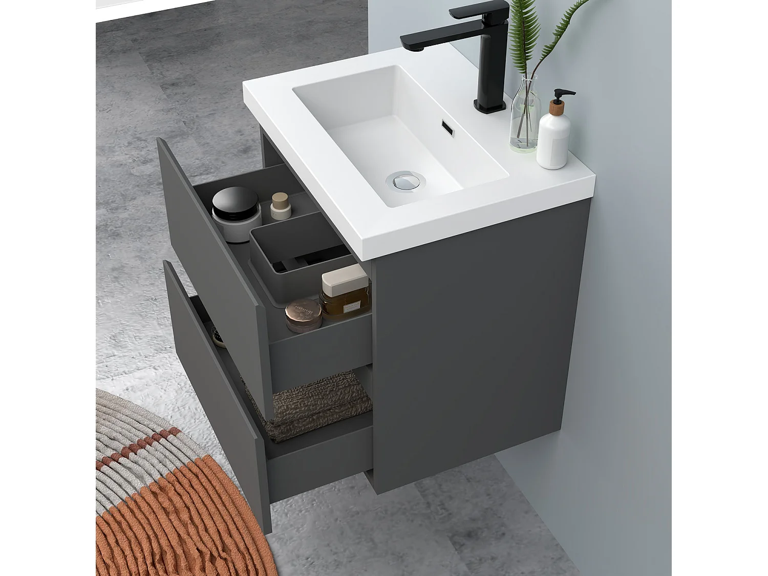AICA Waschbeckenunterschrank hängend 50cm Rechteckiges Mineralguss-Waschbecken mit Unterschrank - Dunkelgrau Matt - CINIC