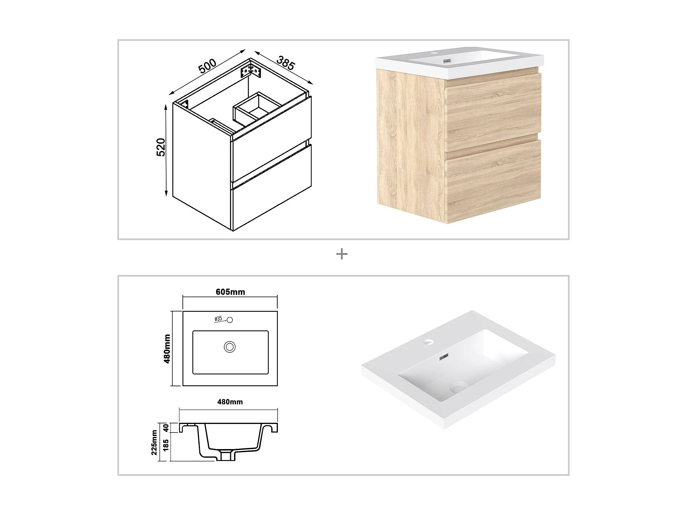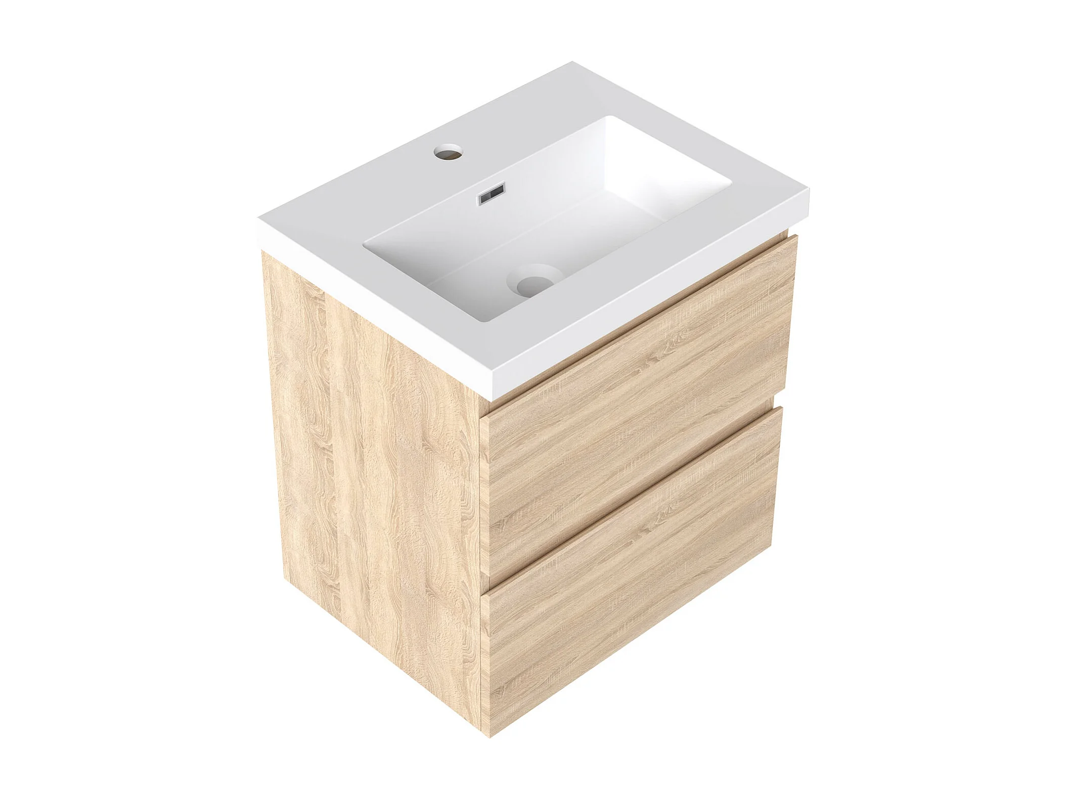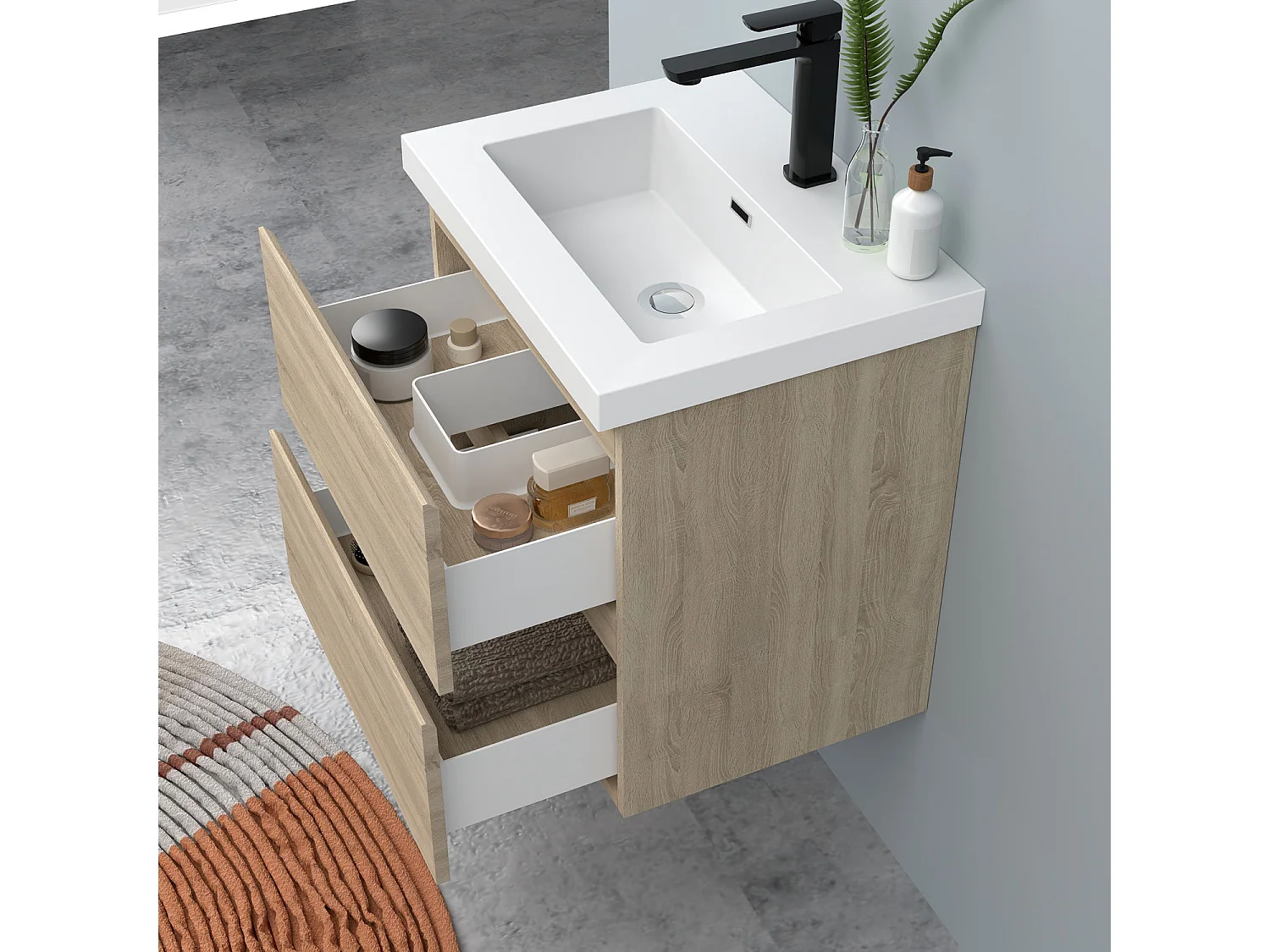 AICA Waschbeckenunterschrank hängend 50cm Rechteckiges Mineralguss-Waschbecken mit Unterschrank - Eiche Matt - CINIC