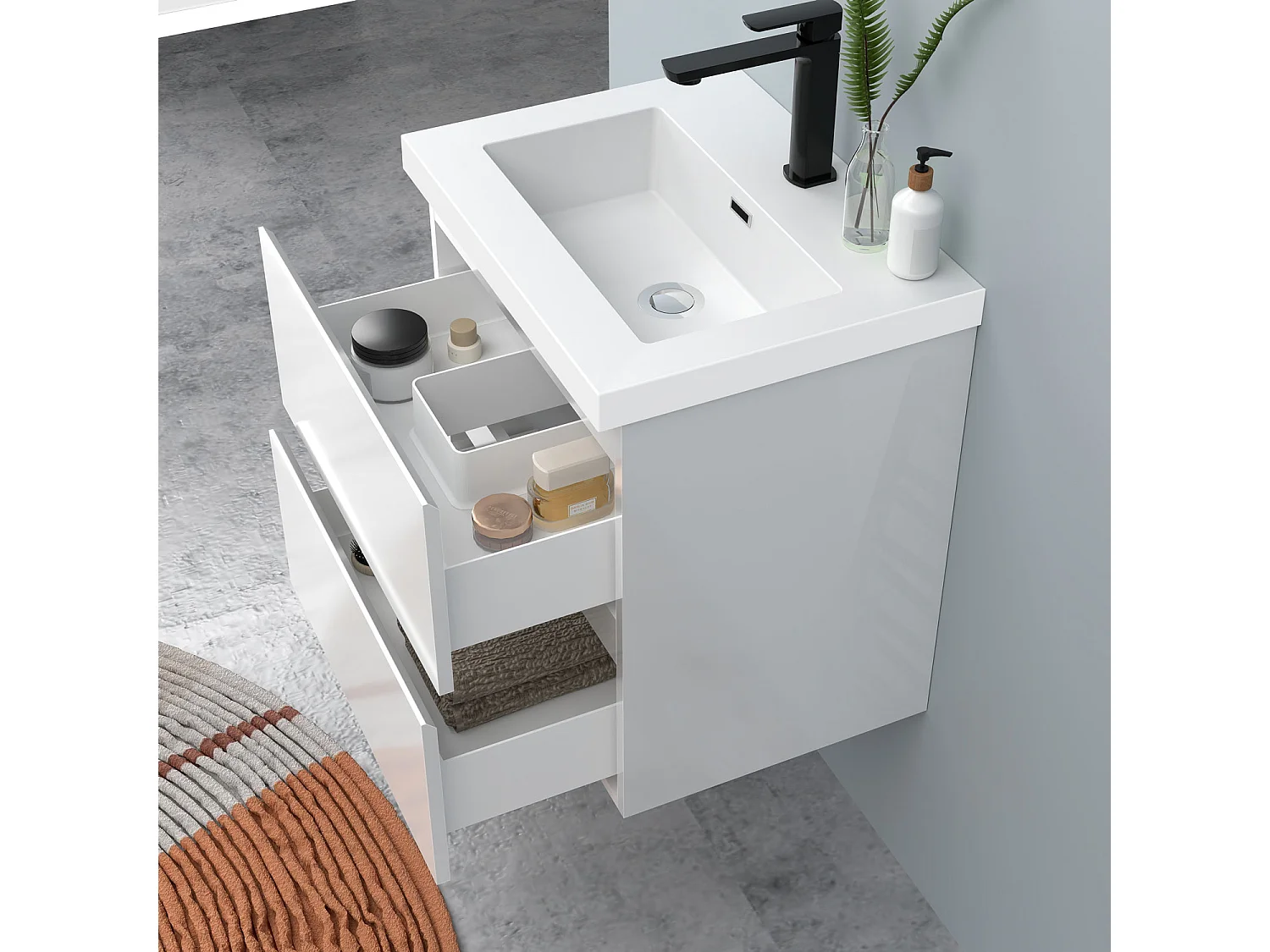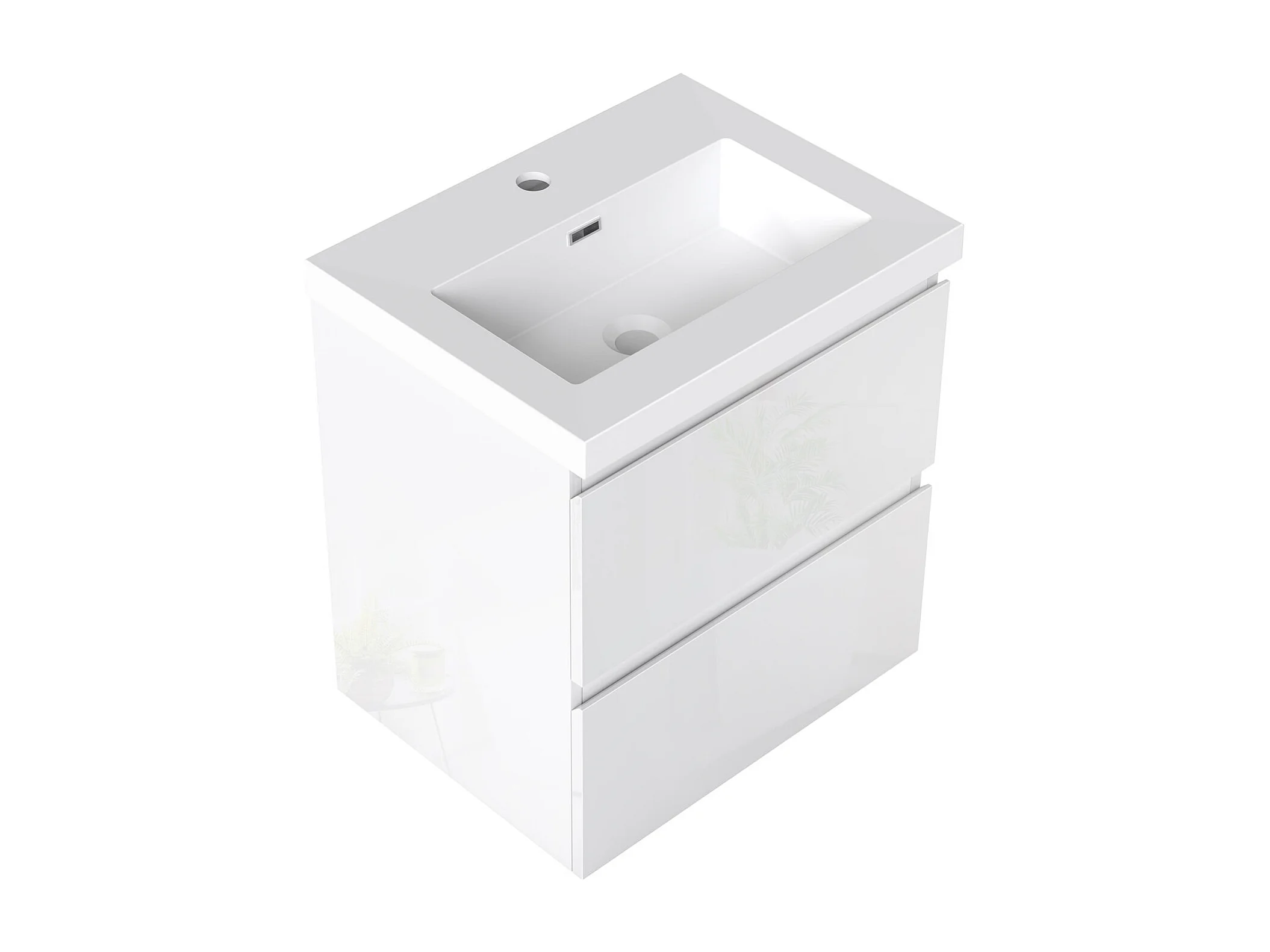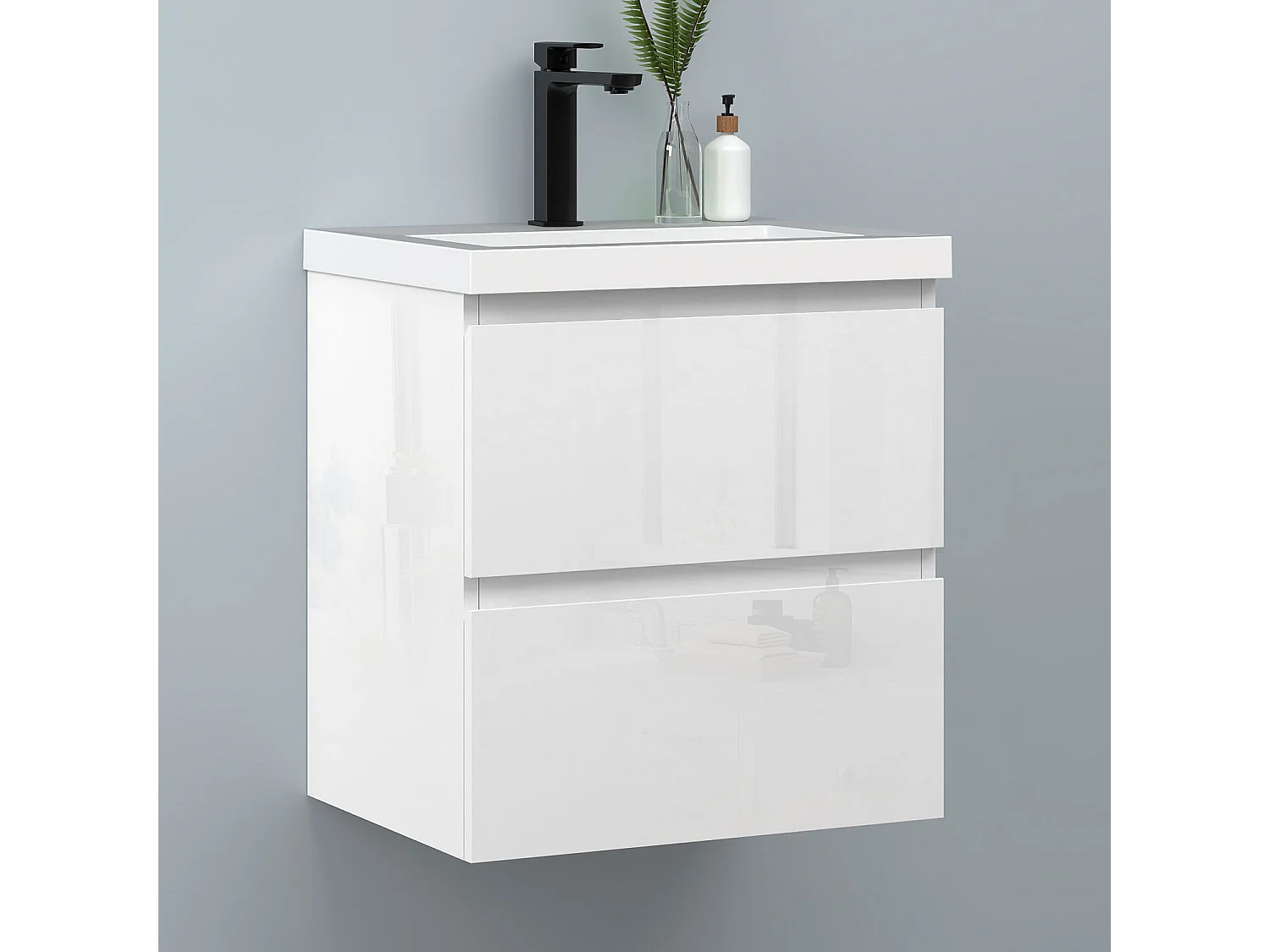 AICA Waschbeckenunterschrank hängend 50cm Rechteckiges Mineralguss-Waschbecken mit Unterschrank - Hochglanz Weiß - CINIC