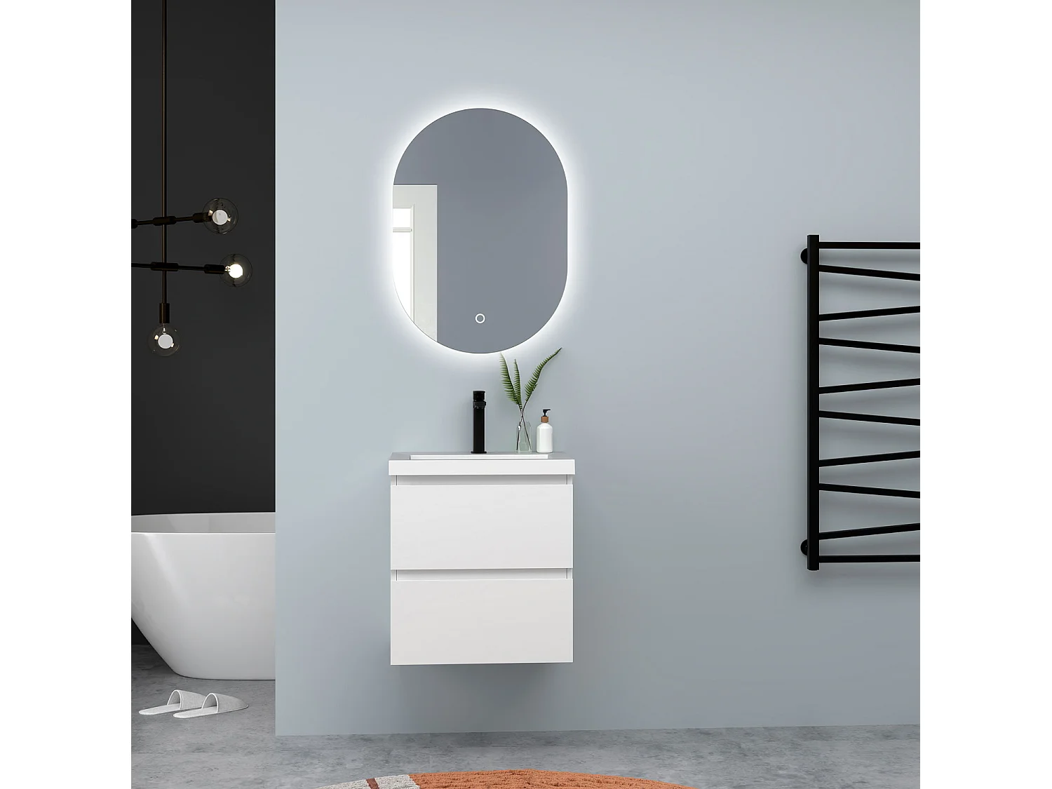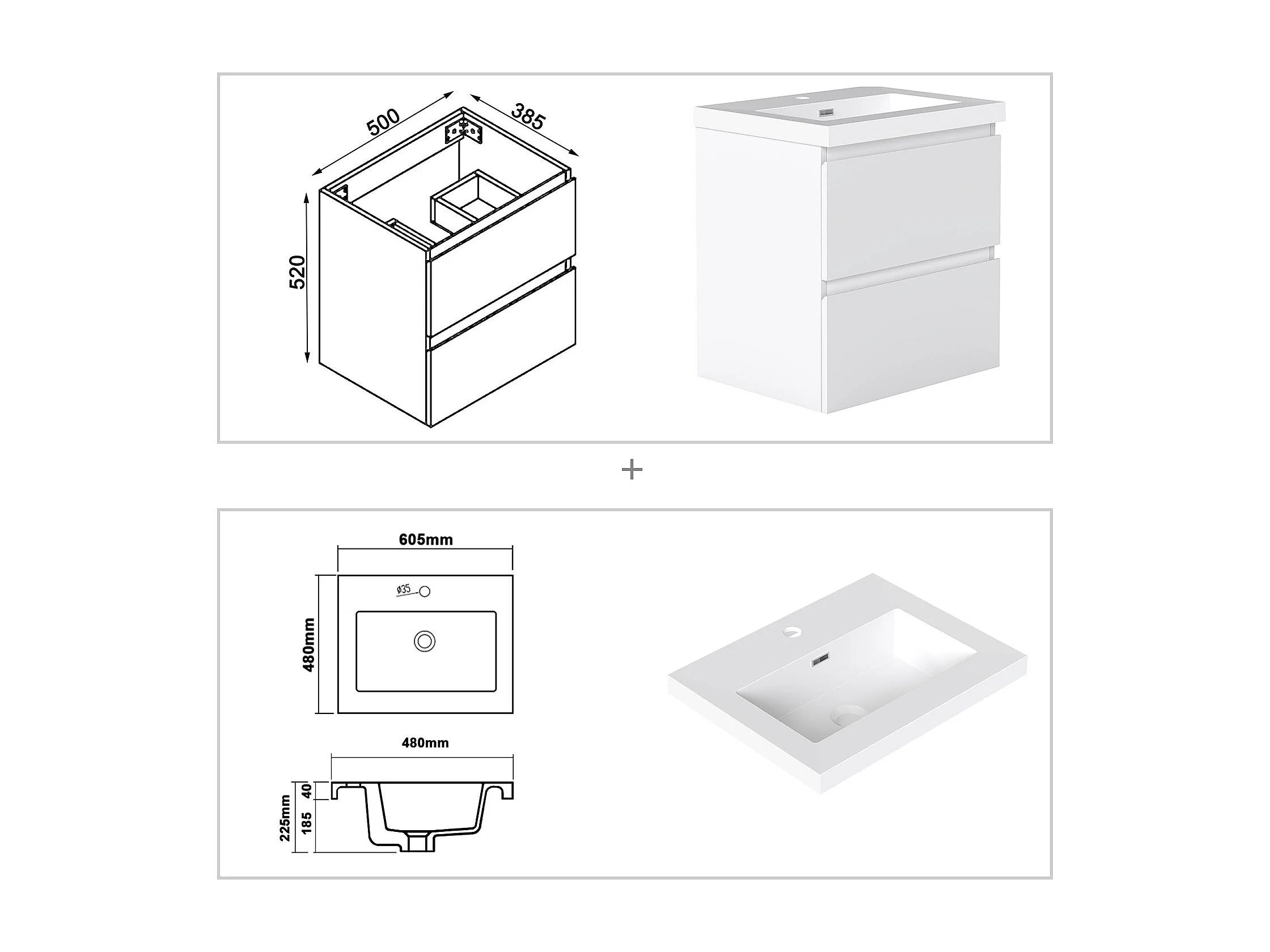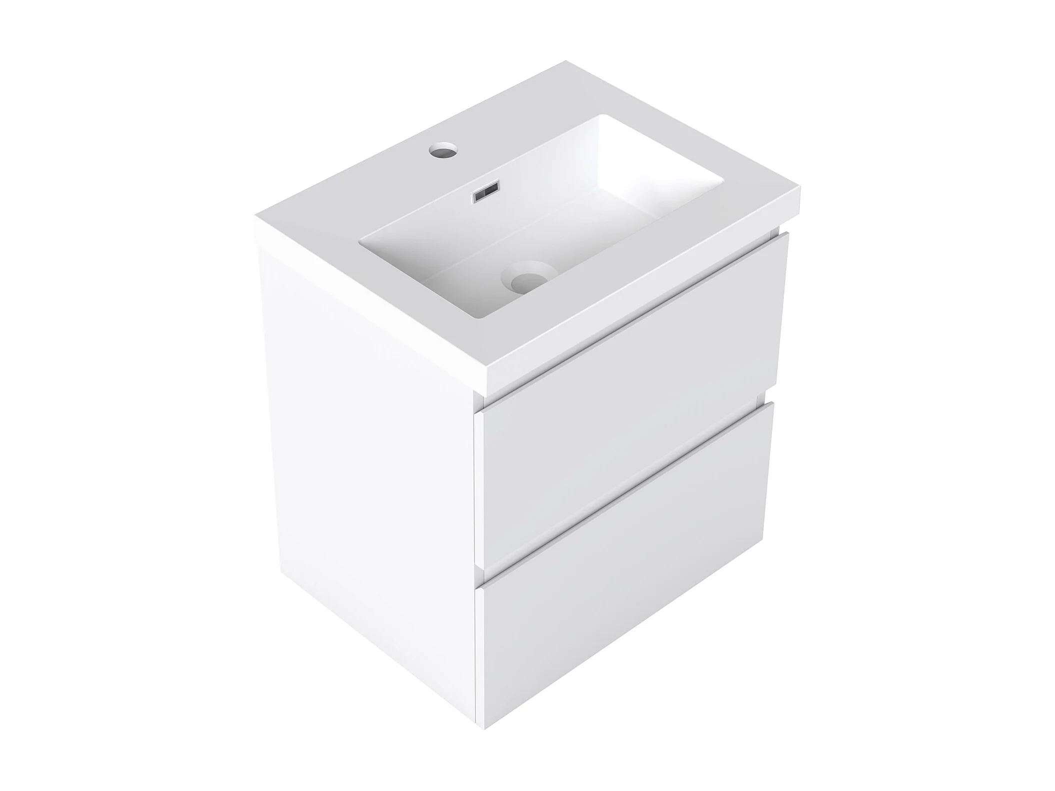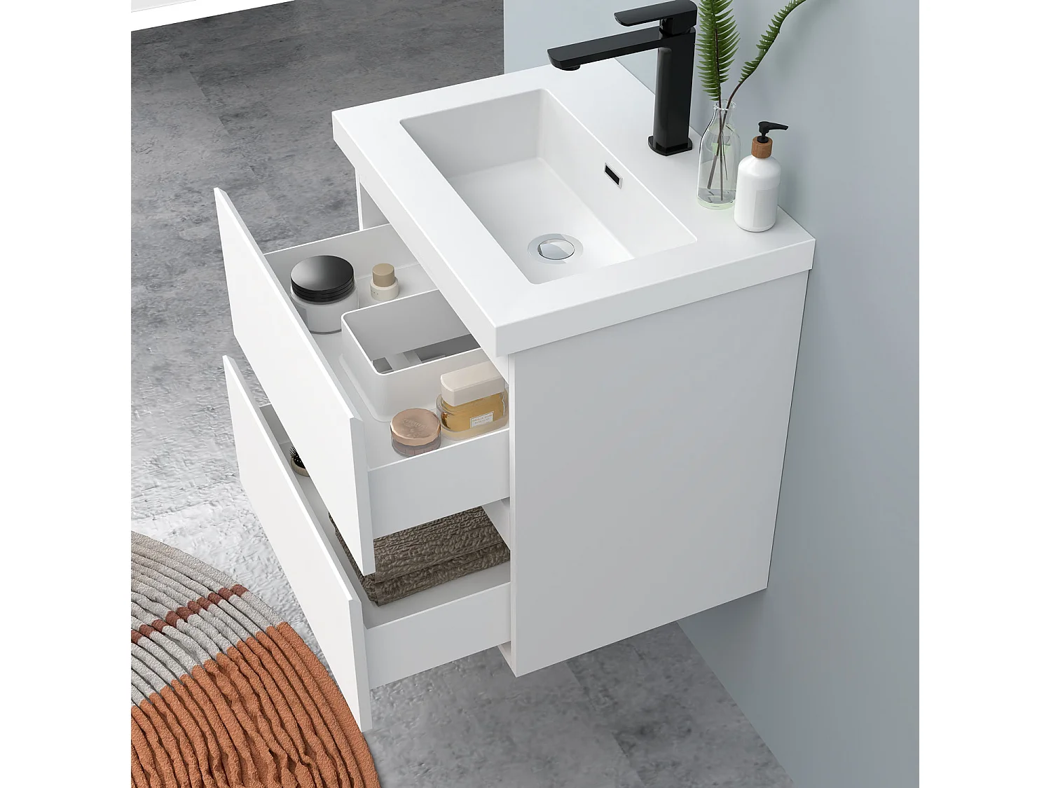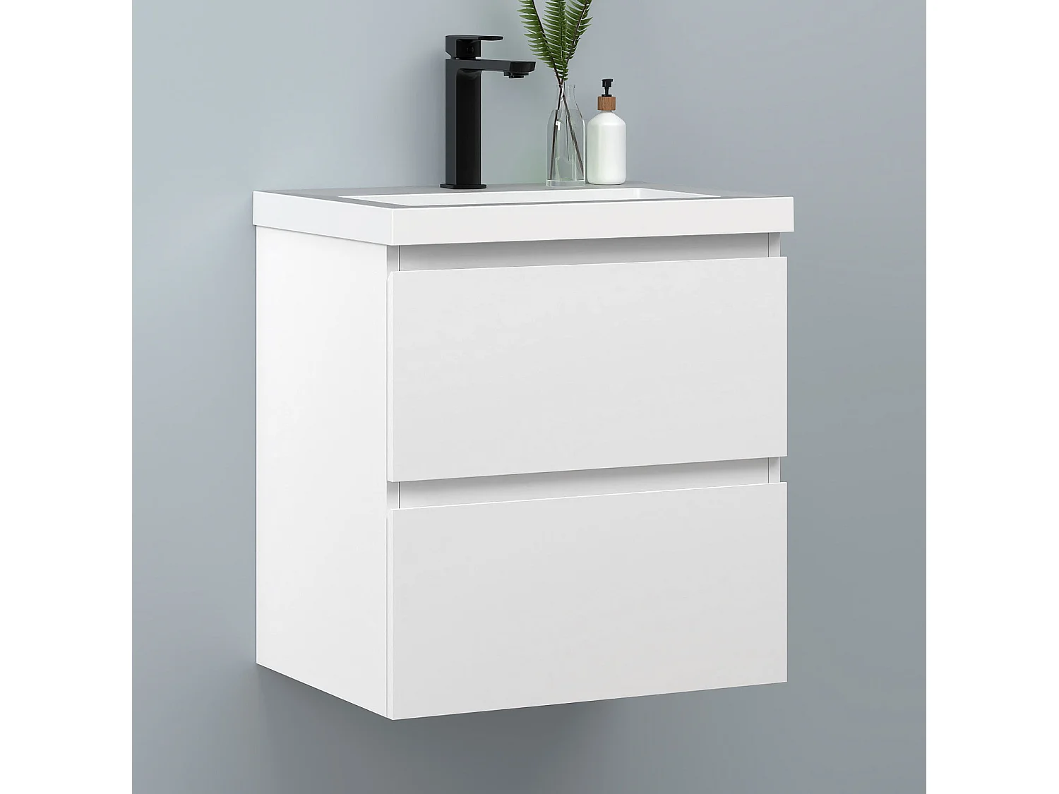 AICA Waschbeckenunterschrank hängend 50cm Rechteckiges Mineralguss-Waschbecken mit Unterschrank - Weiß Matt - CINIC