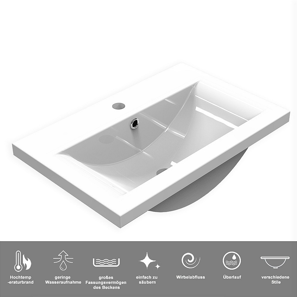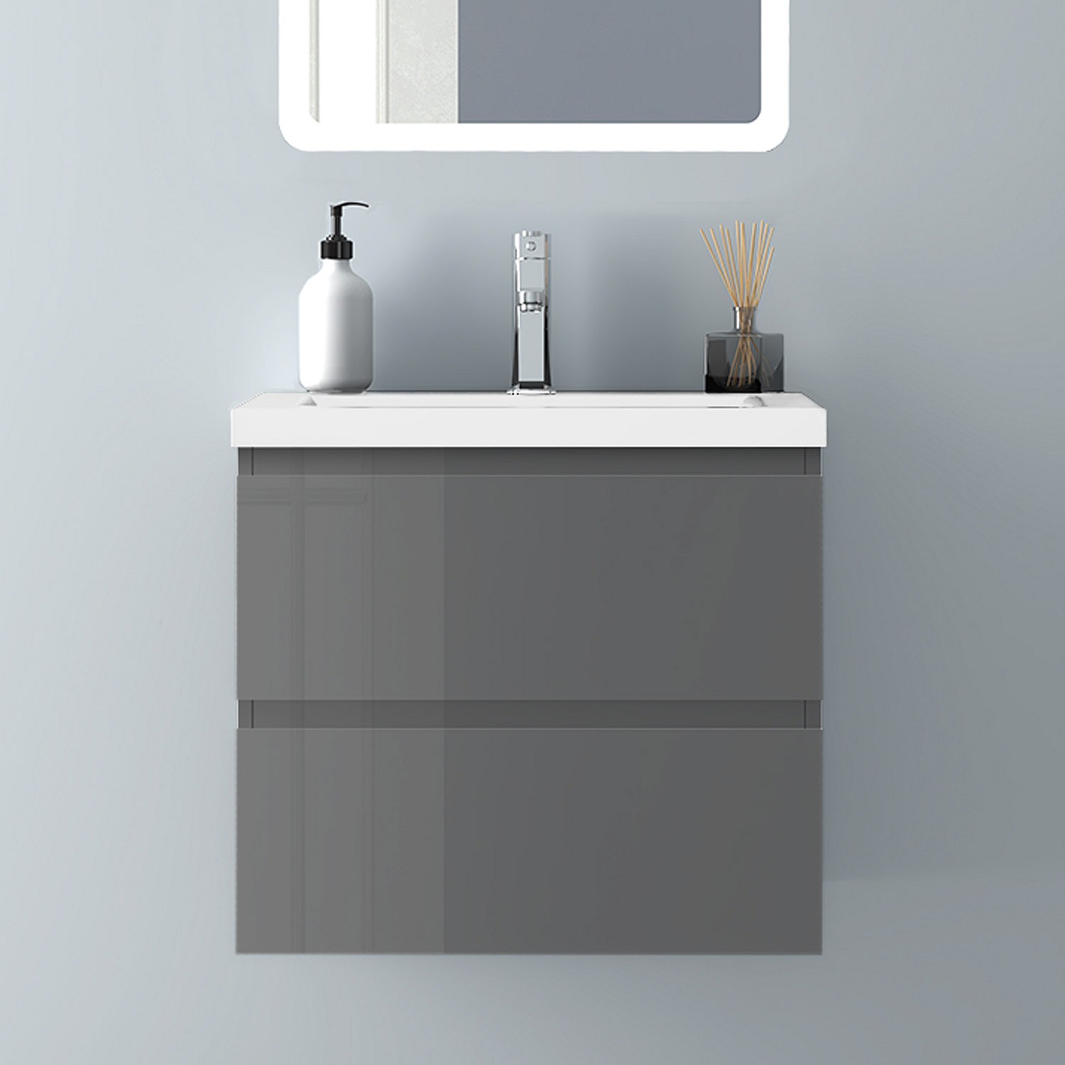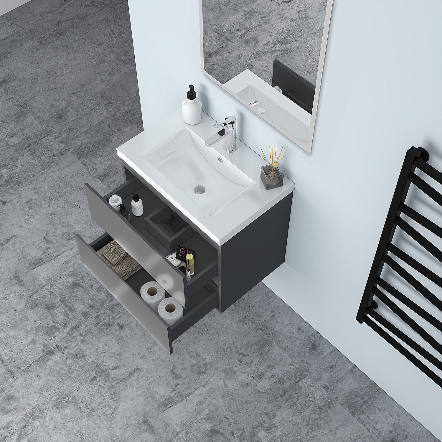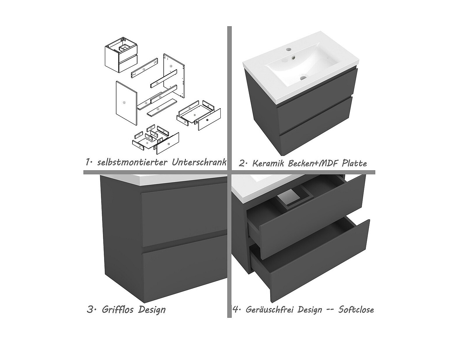 AICA Waschbeckenunterschrank hängend 60cm Dickes Keramik Waschtisch mit Unterschrank - Hochglanz Dunkelgrau - CINIC
