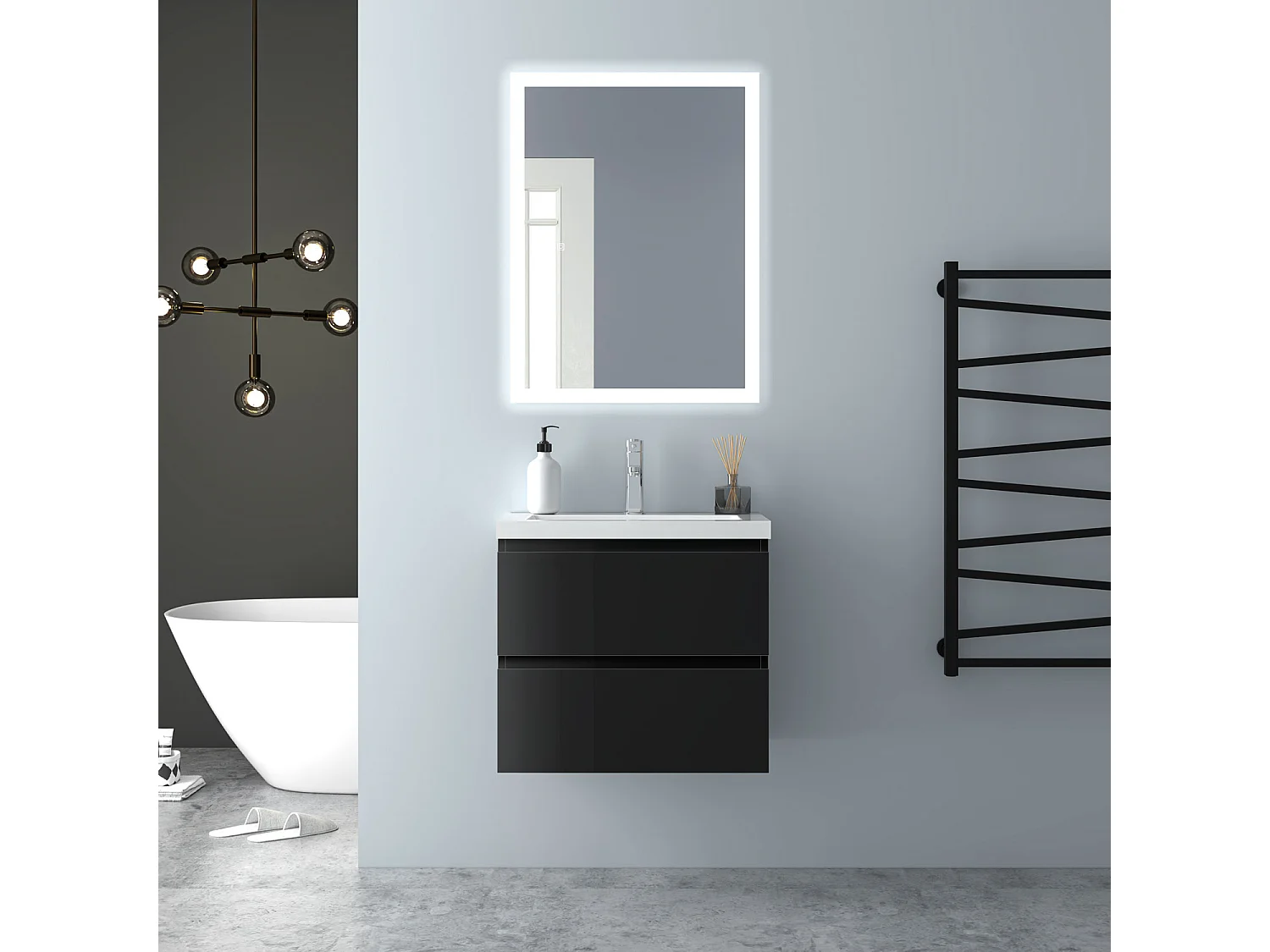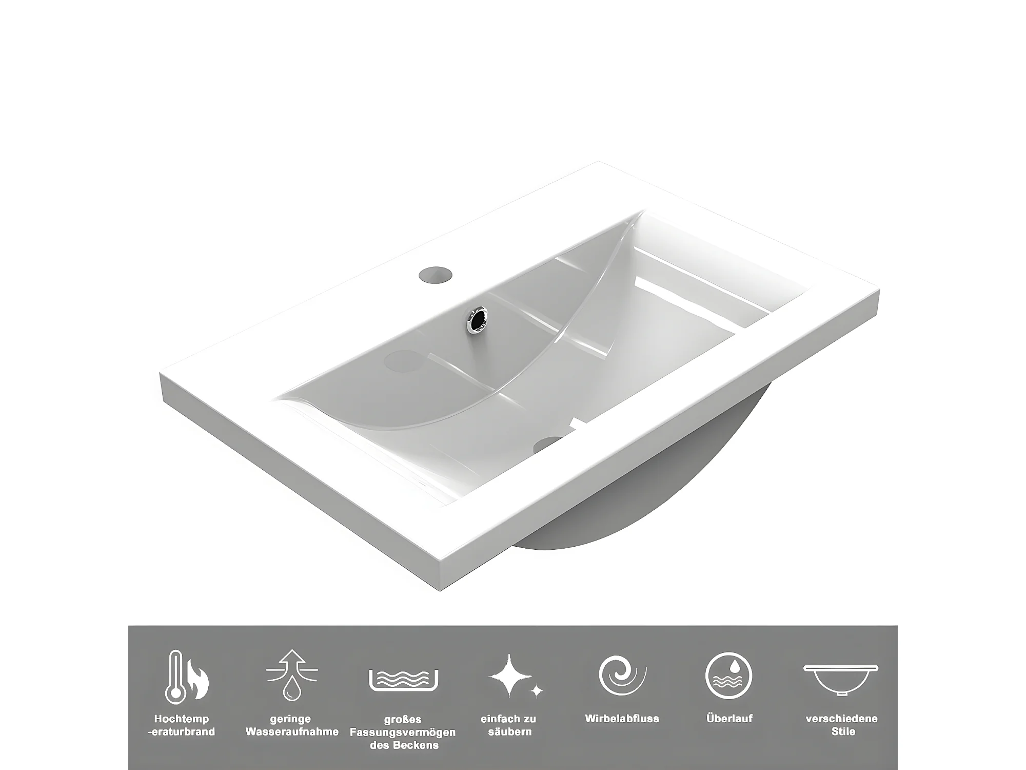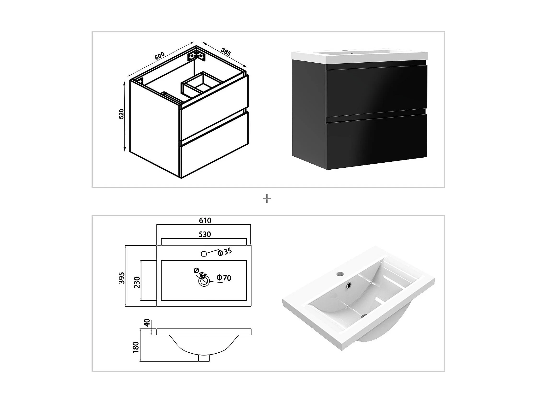AICA Waschbeckenunterschrank hängend 60cm Dickes Keramik Waschtisch mit Unterschrank - Hochglanz Schwarz - CINIC