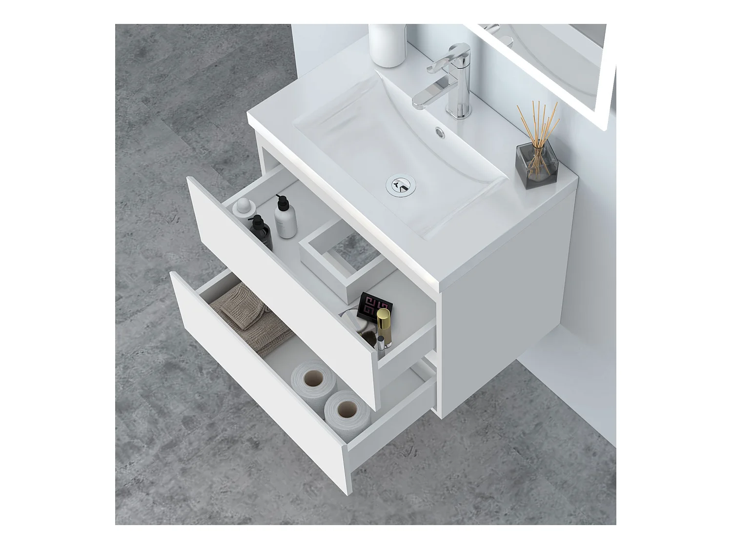 AICA Waschbeckenunterschrank hängend 60cm Dickes Keramik Waschtisch mit Unterschrank - Weiß Matt - CINIC