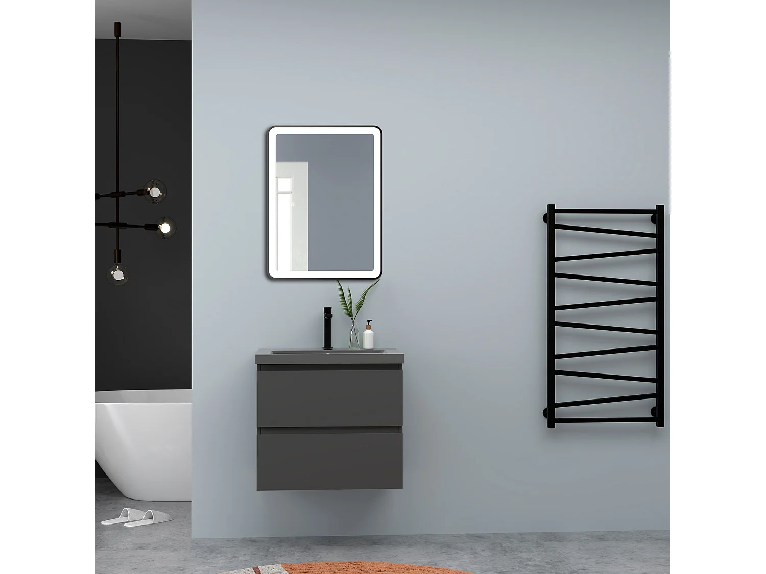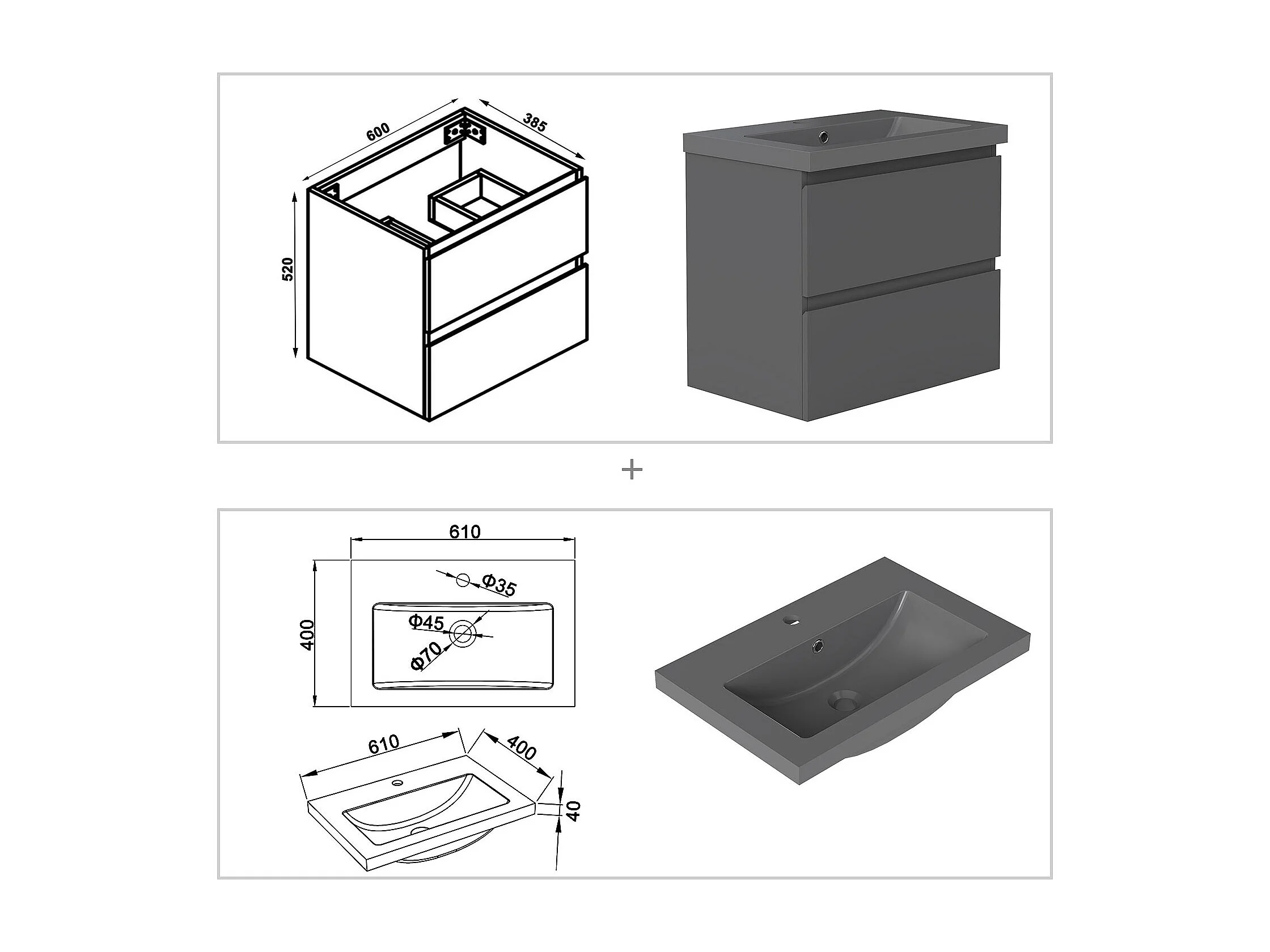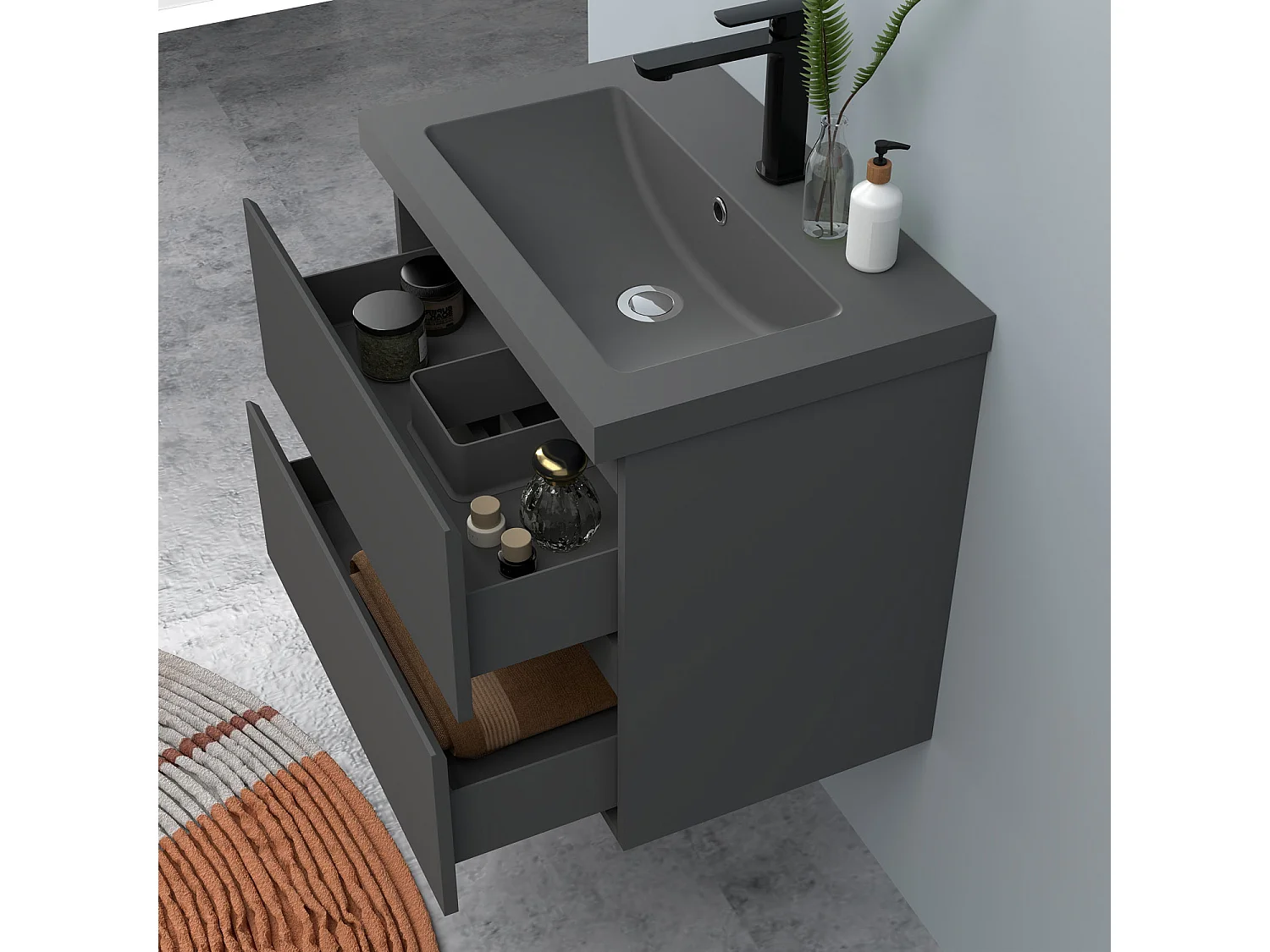 AICA Waschbeckenunterschrank hängend 60cm Dunkelgrau Mineralguss-Waschbecken mit Unterschrank - Dunkelgrau Matt - CINIC