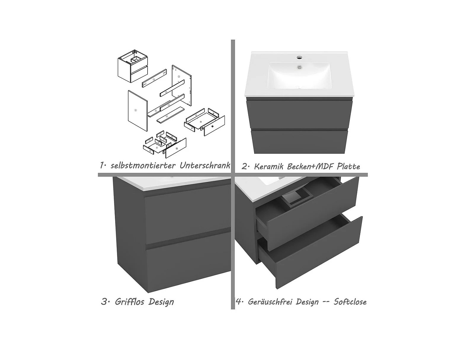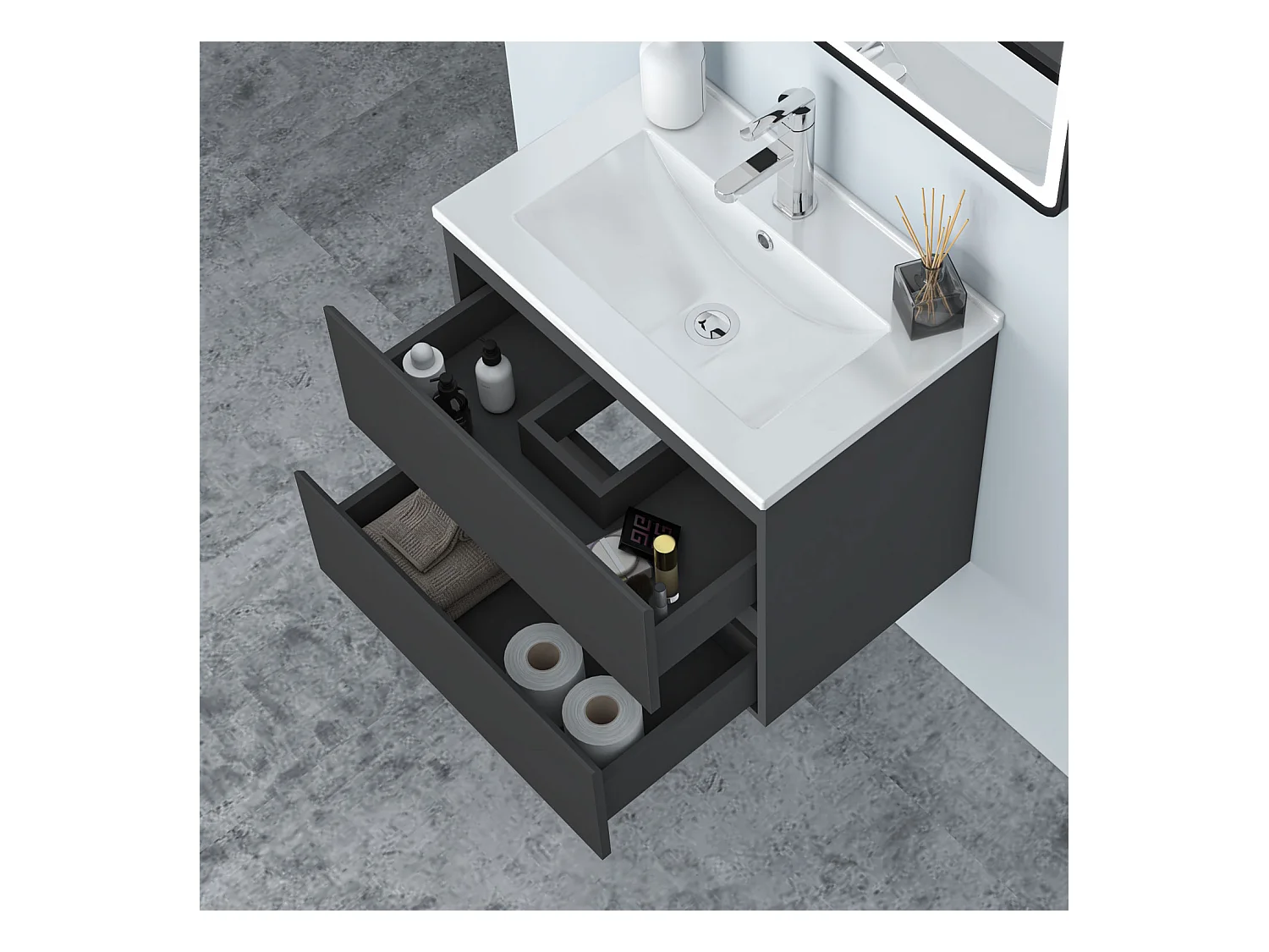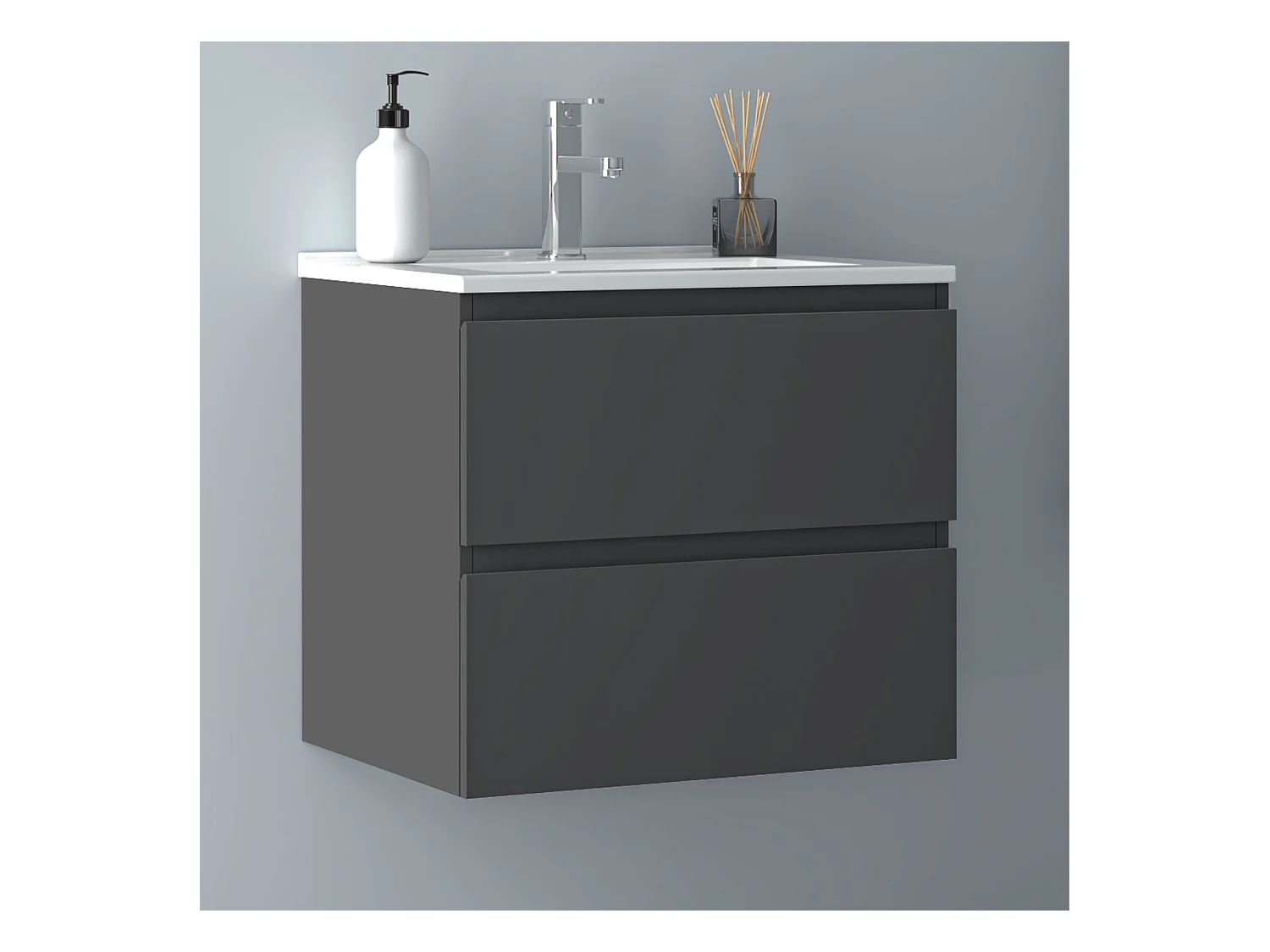 AICA Waschbeckenunterschrank hängend 60cm Dünn Keramik Waschtisch mit Unterschrank - Dunkelgrau Matt - CINIC