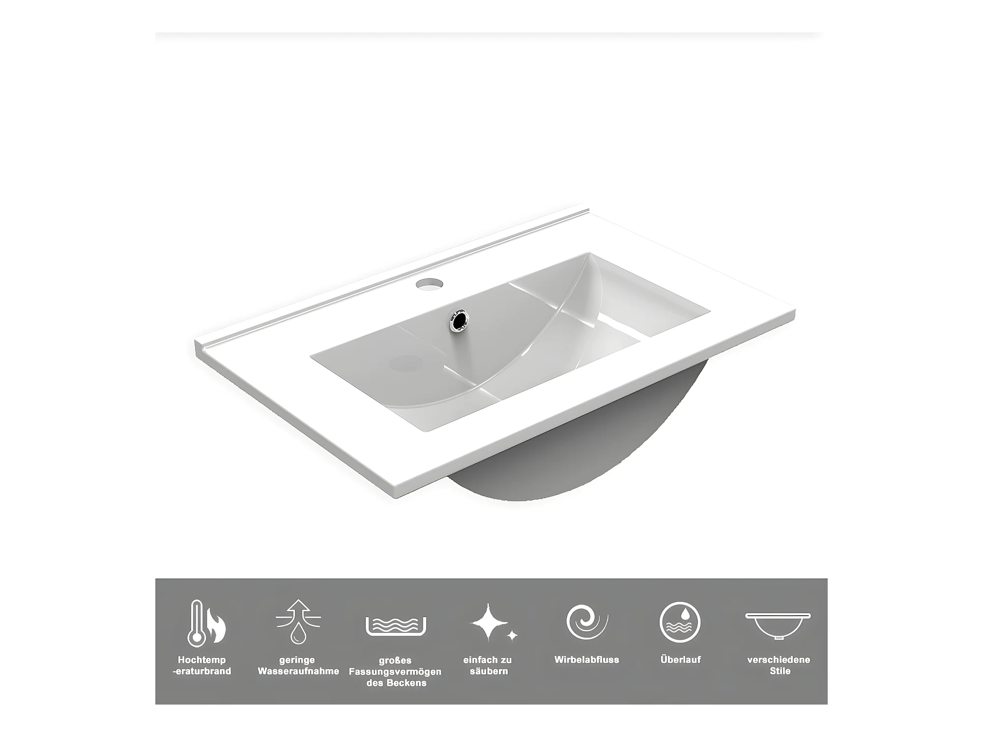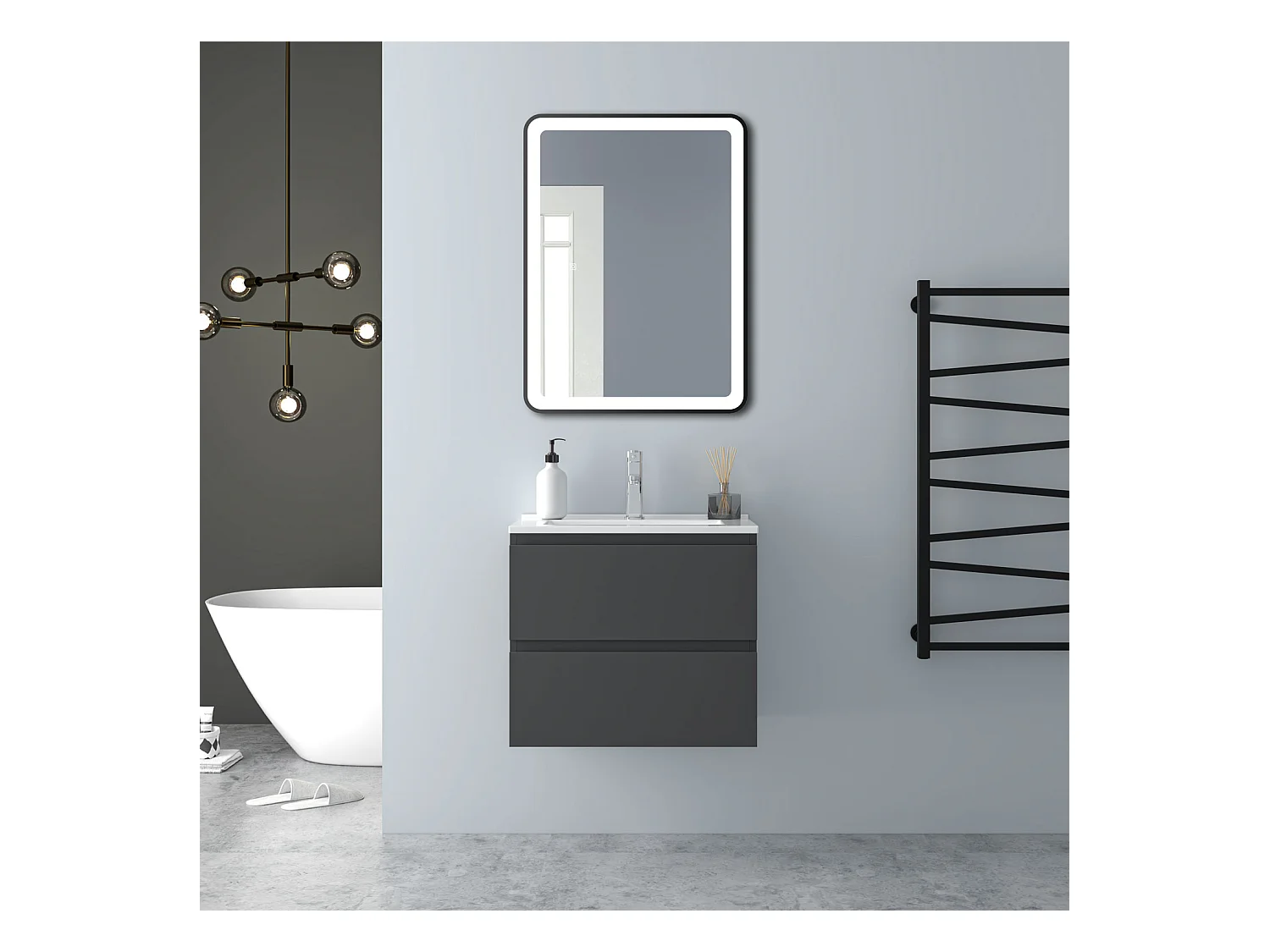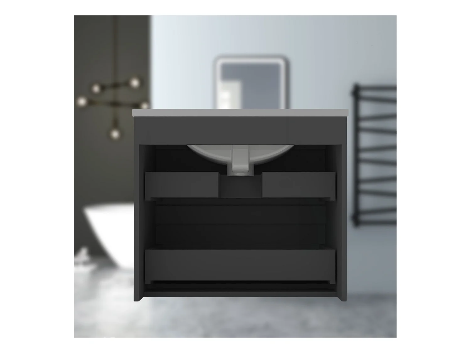 AICA Waschbeckenunterschrank hängend 60cm Dünn Keramik Waschtisch mit Unterschrank - Dunkelgrau Matt - CINIC