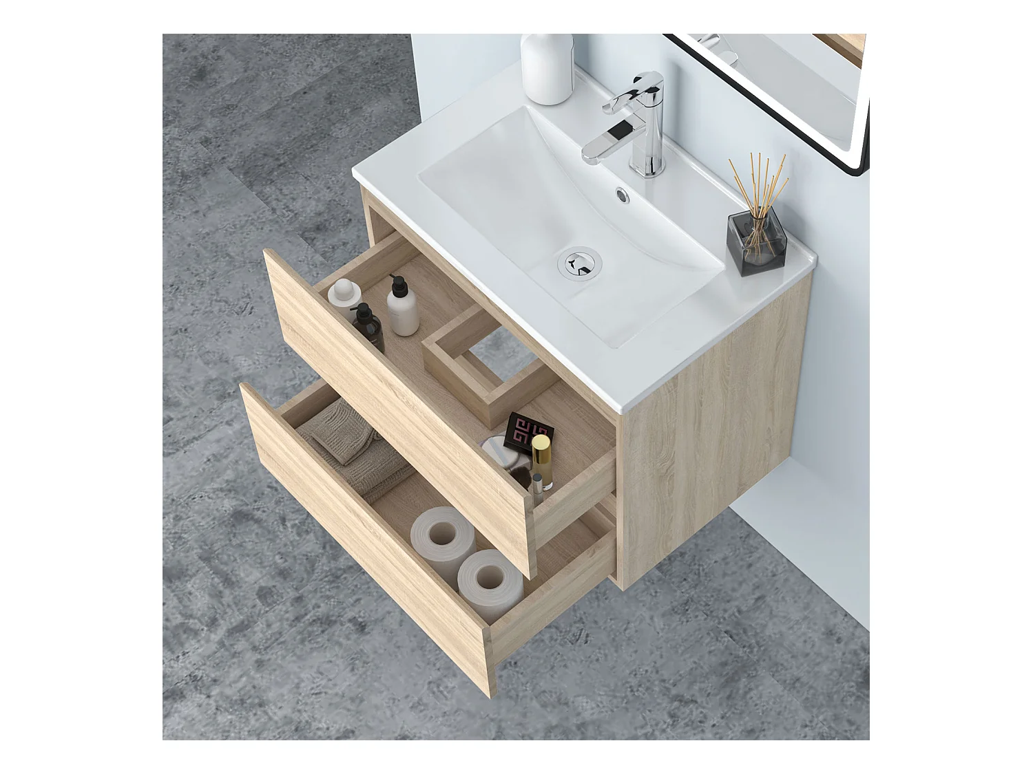 AICA Waschbeckenunterschrank hängend 60cm Dünn Keramik Waschtisch mit Unterschrank - Eiche Matt - CINIC