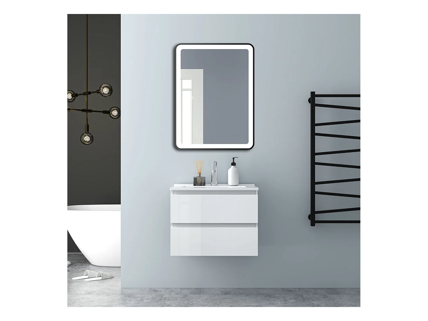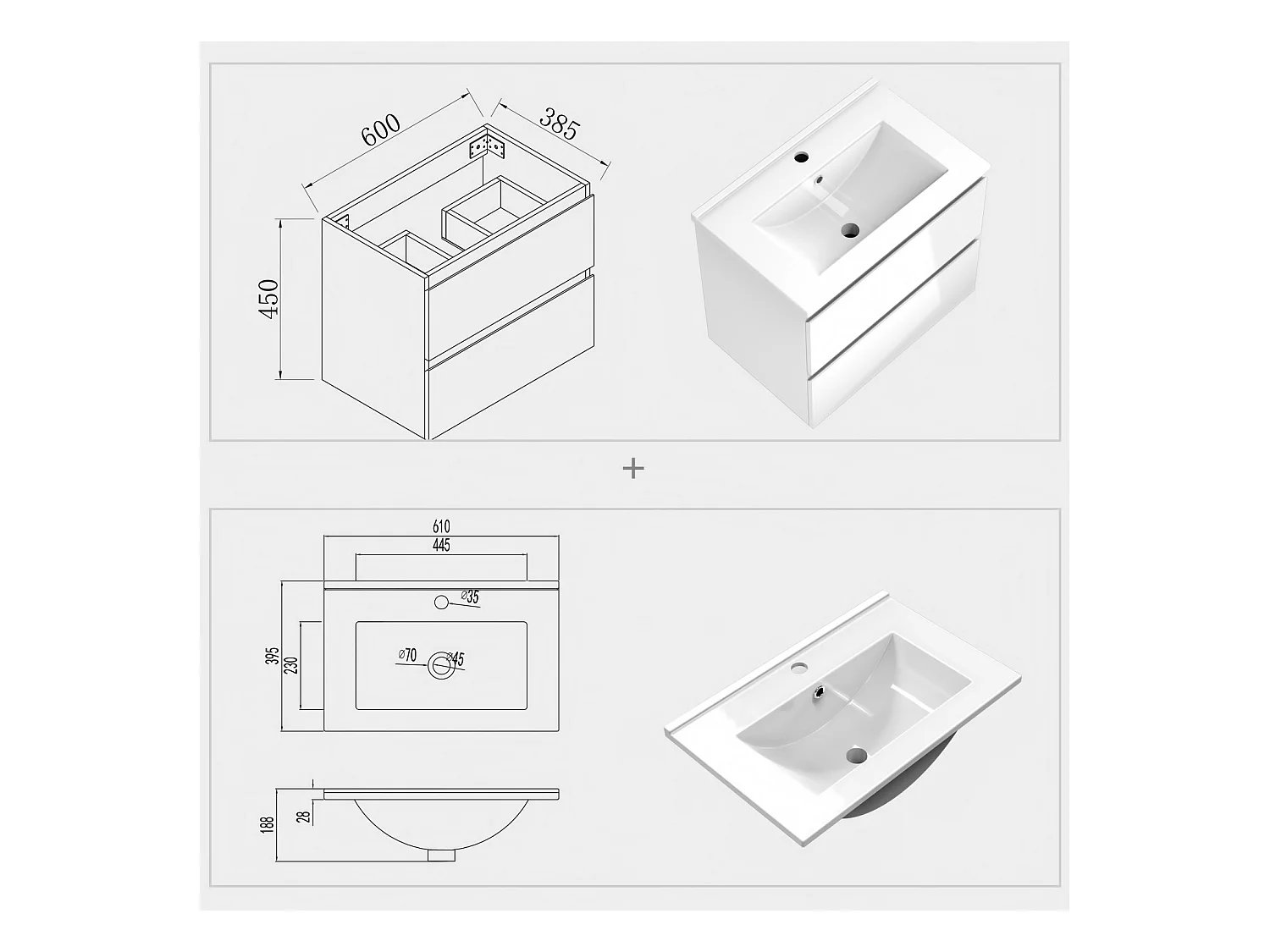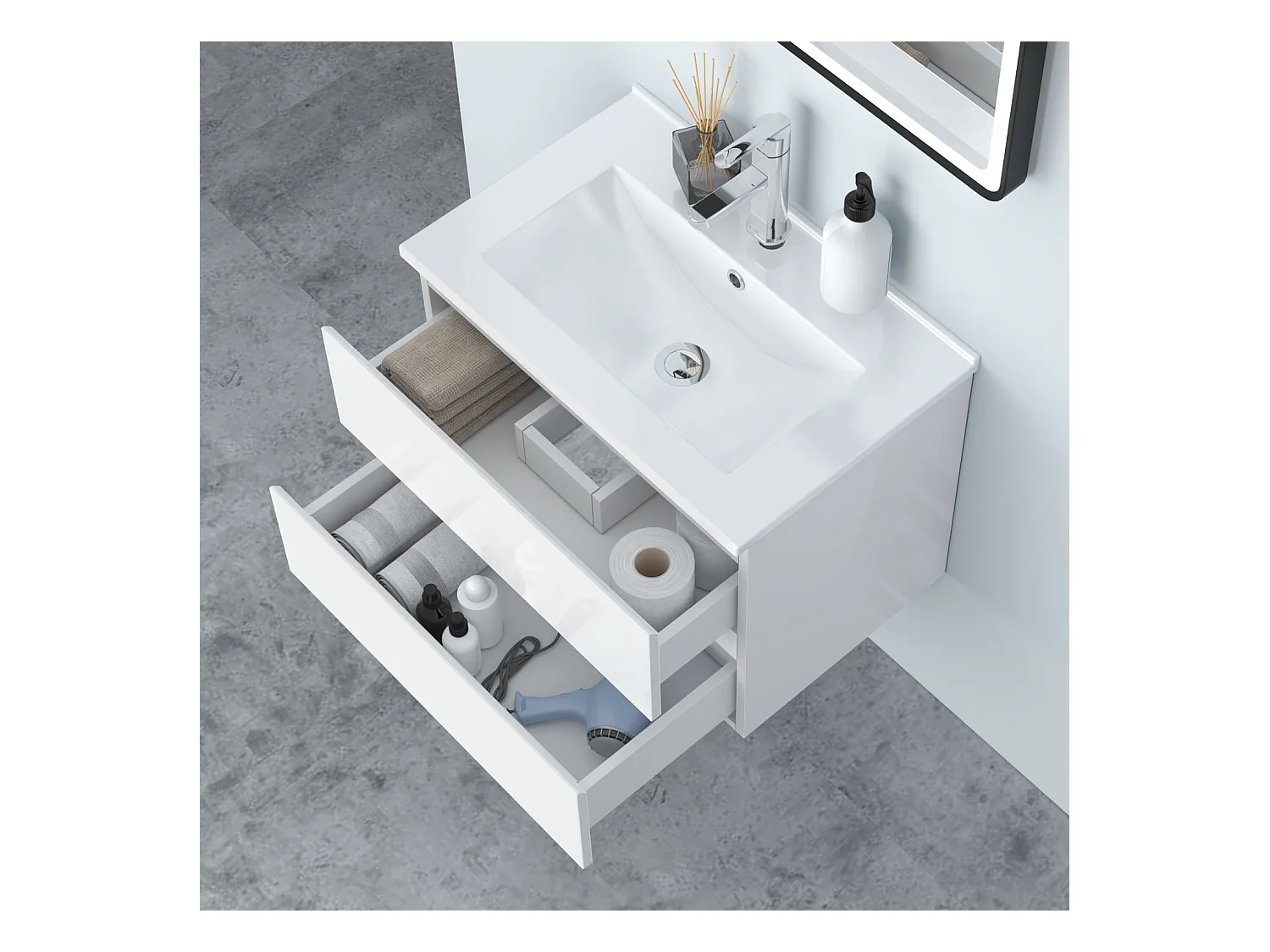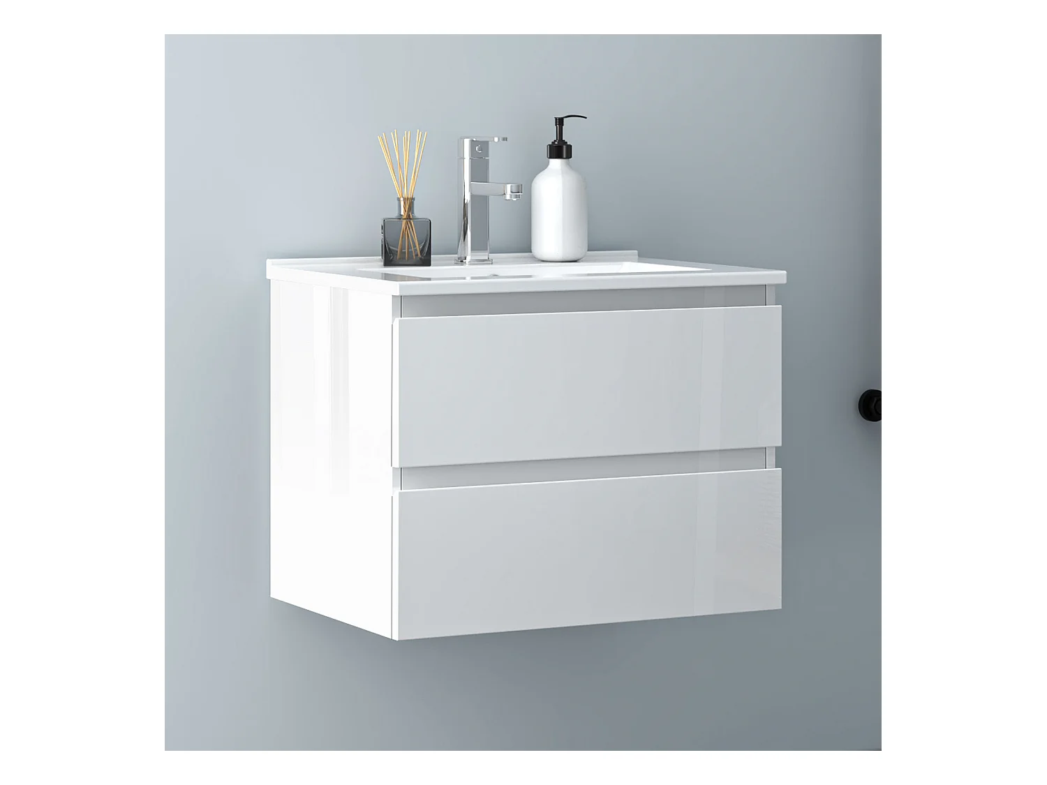 AICA Waschbeckenunterschrank hängend 60cm Dünn Keramik Waschtisch mit Unterschrank - Hochglanz Weiß - CINIC