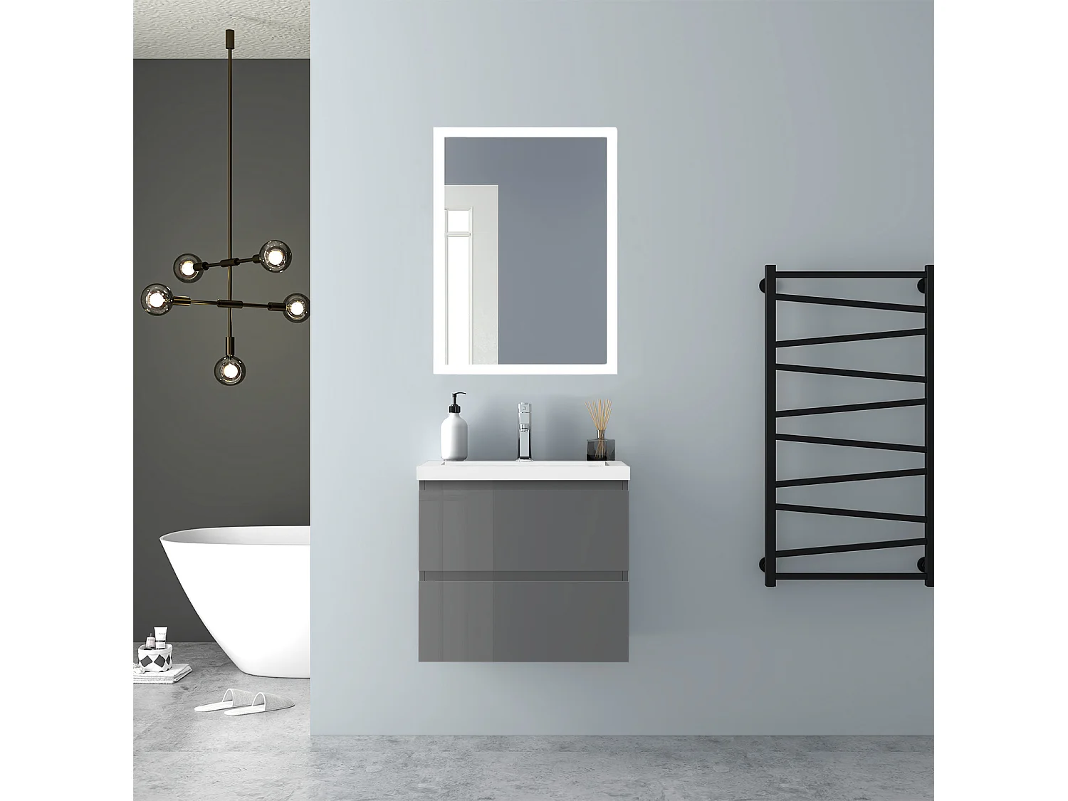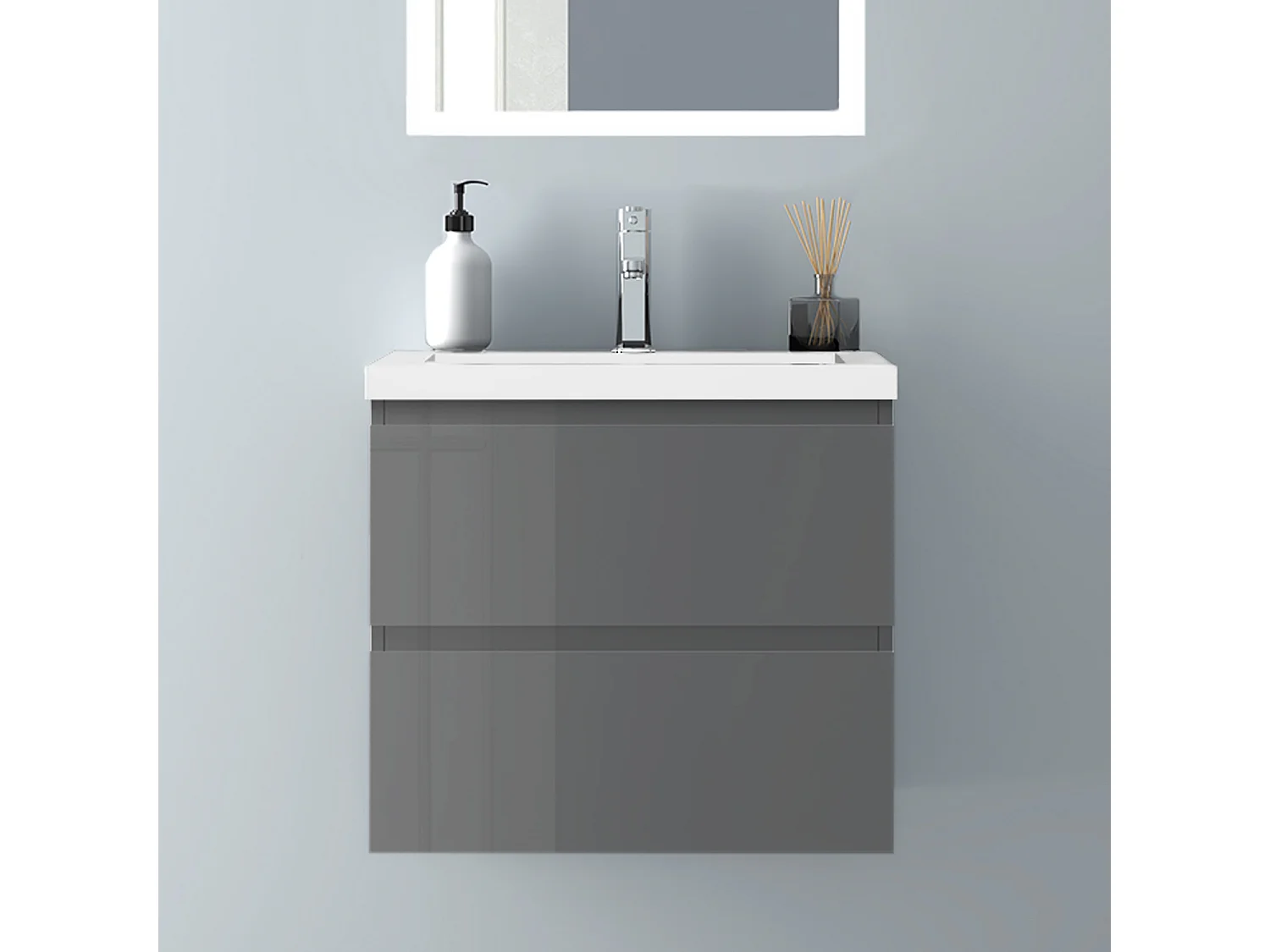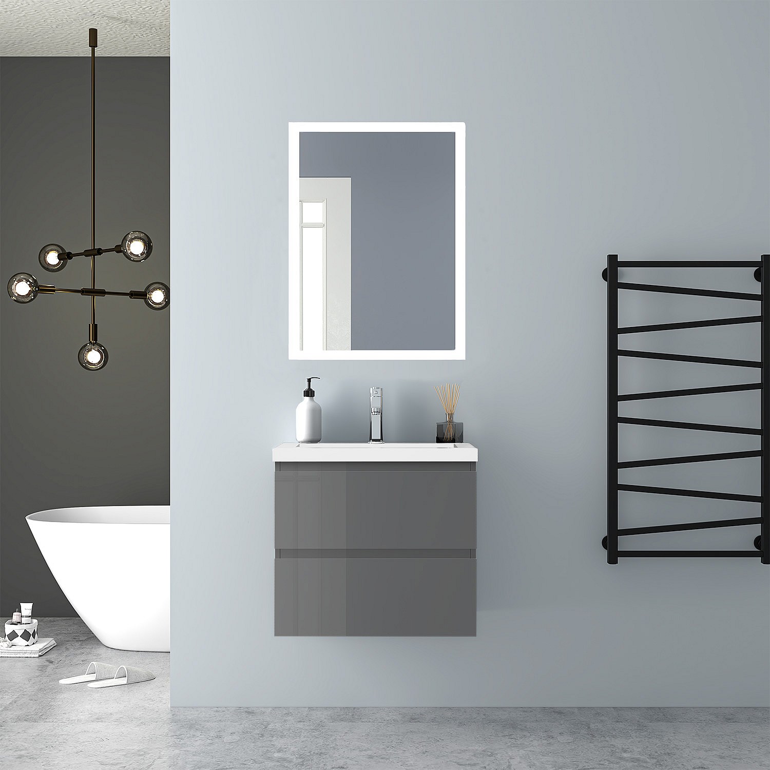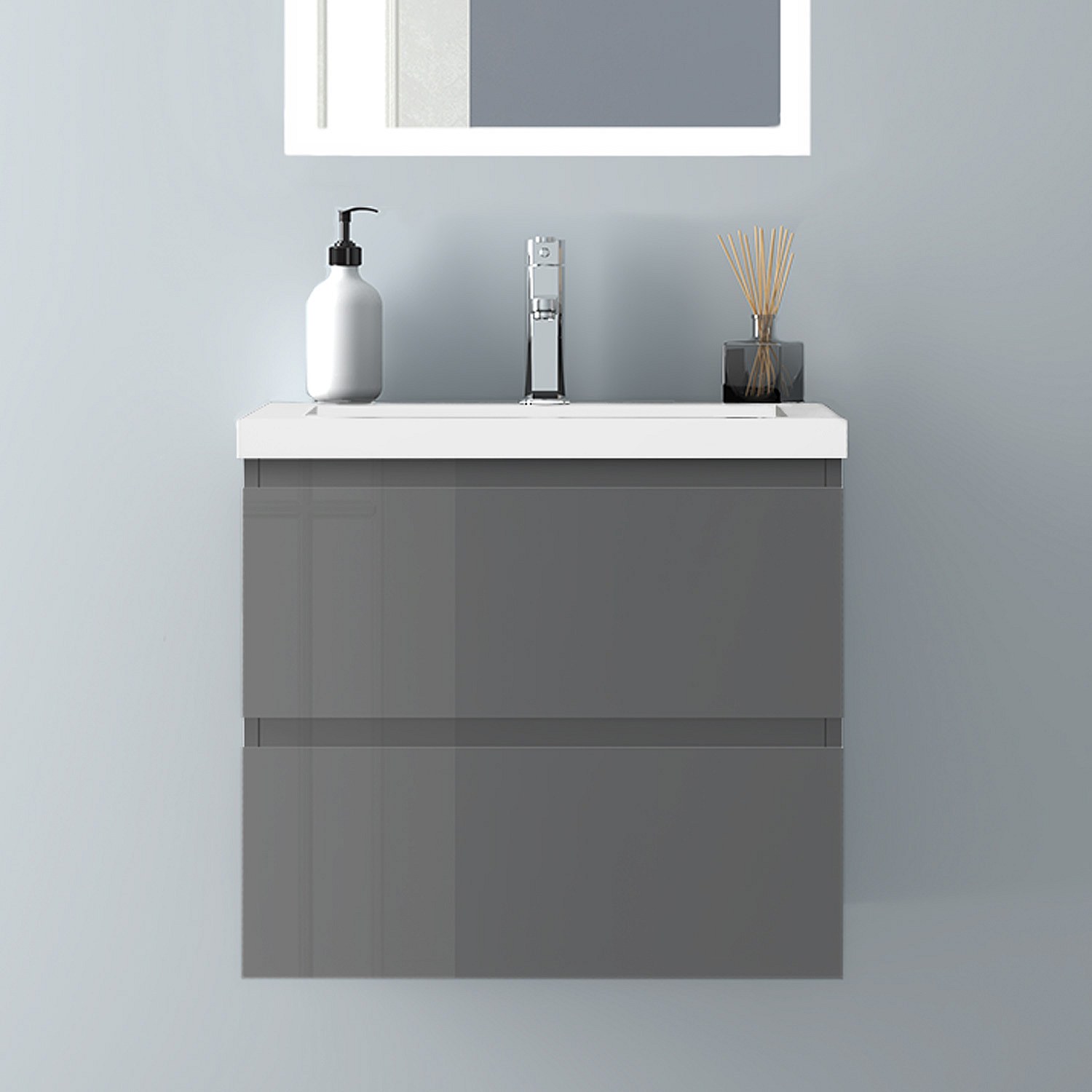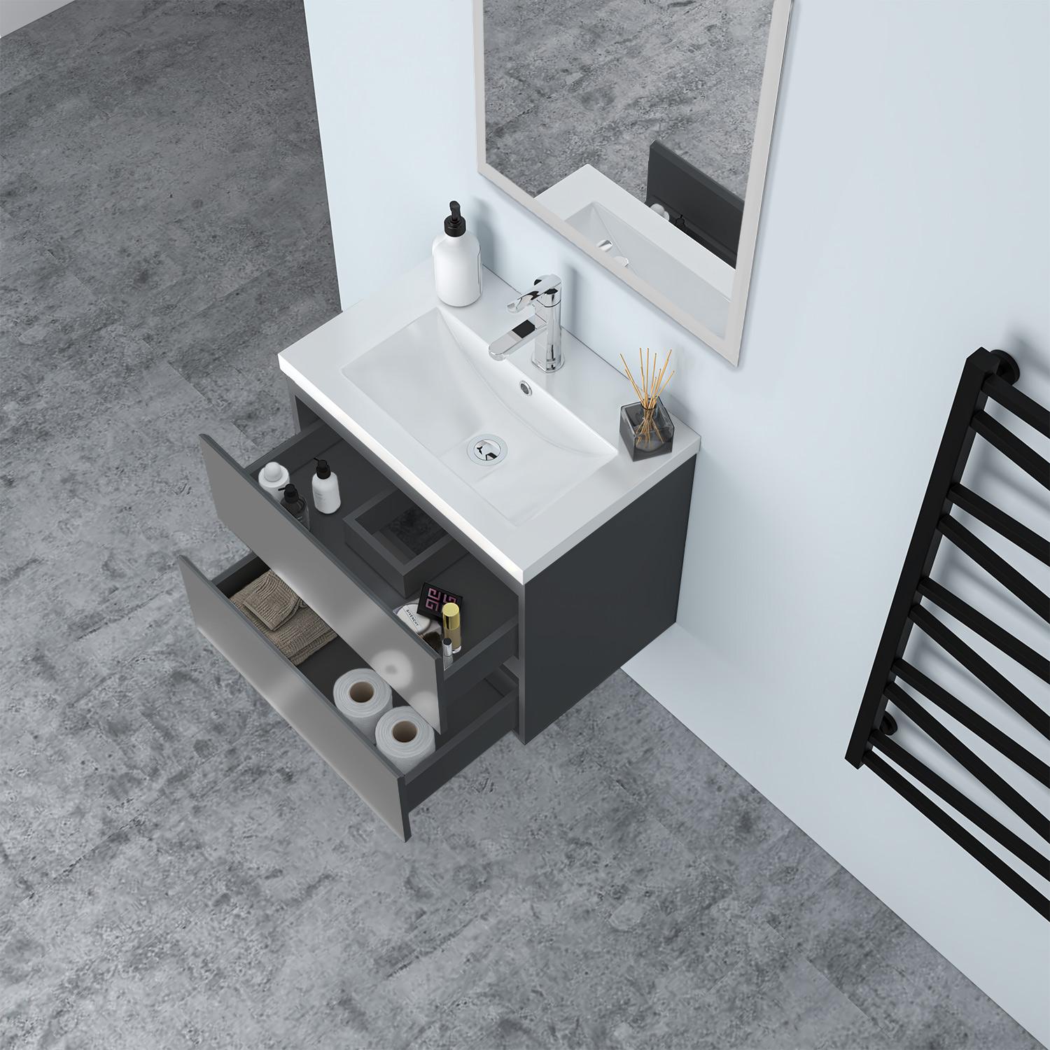 AICA Waschbeckenunterschrank hängend 60cm Mineralguss Waschtisch mit Unterschrank - Hochglanz Dunkelgrau - CINIC