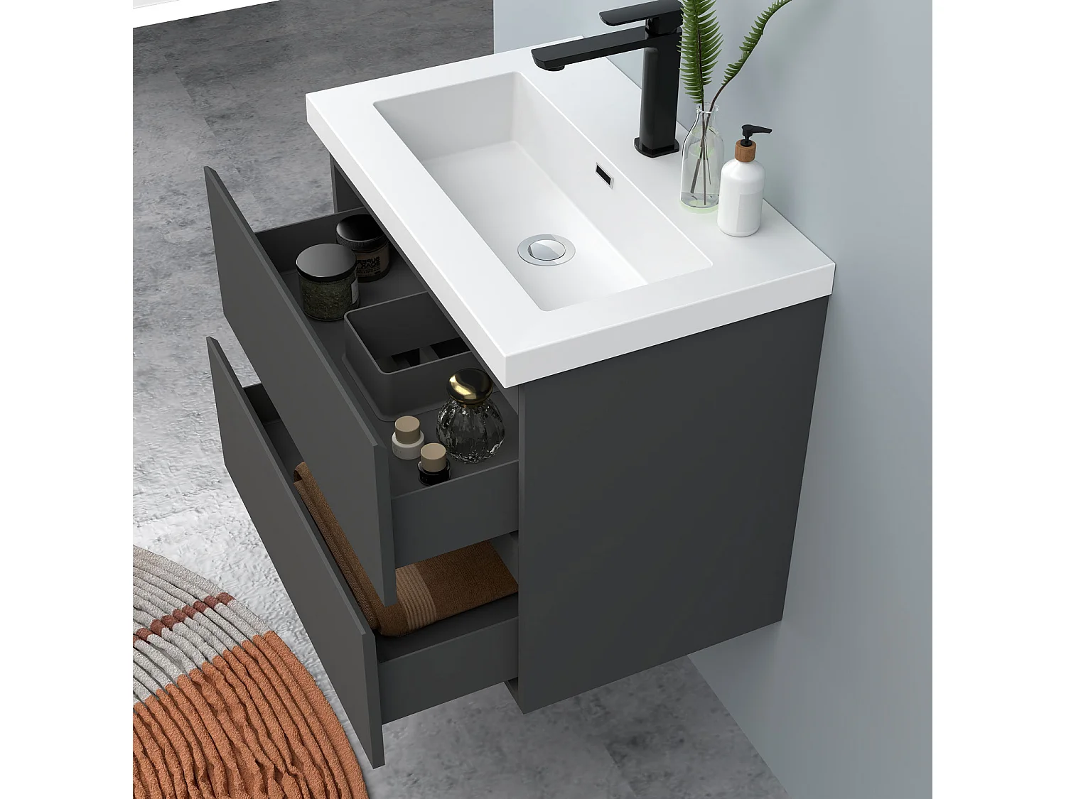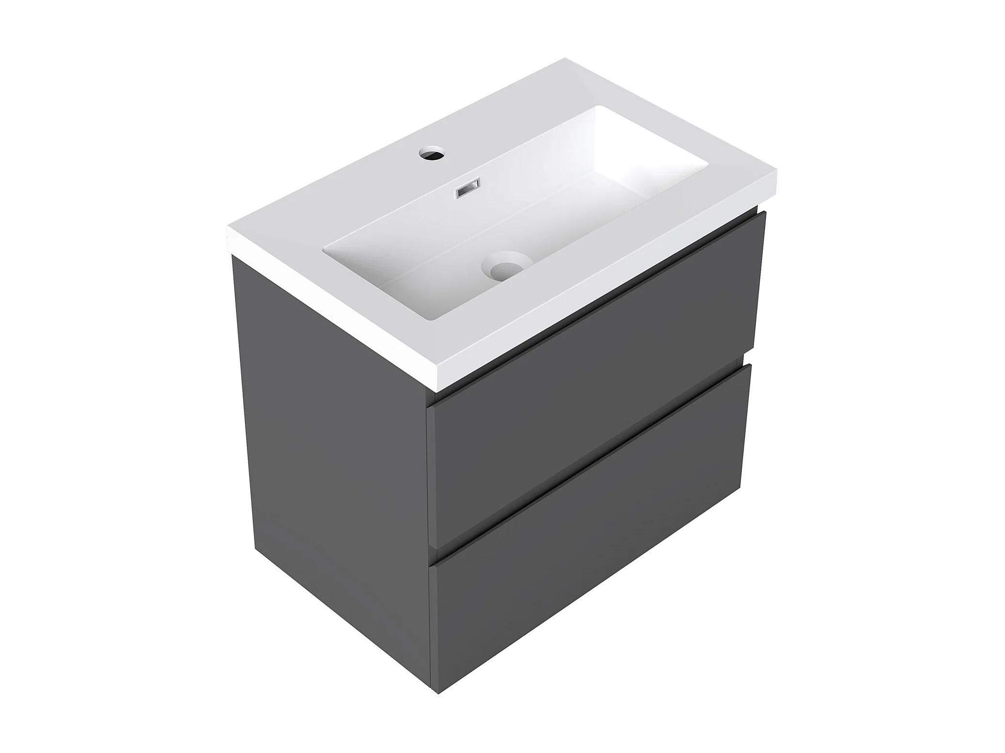 AICA Waschbeckenunterschrank hängend 60cm Rechteckiges Mineralguss-Waschbecken mit Unterschrank - Dunkelgrau Matt - CINIC
