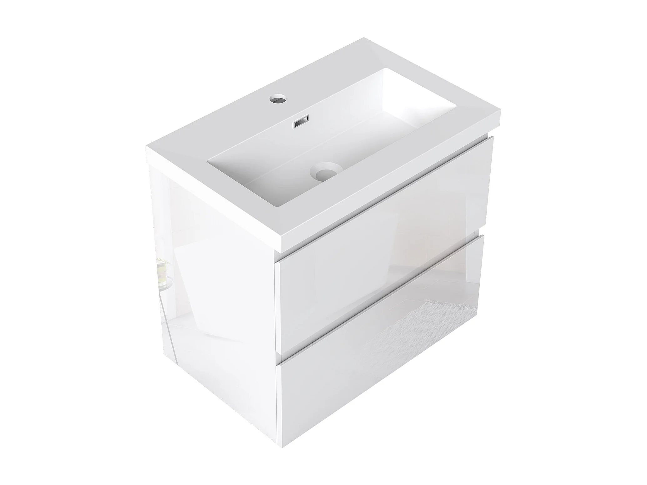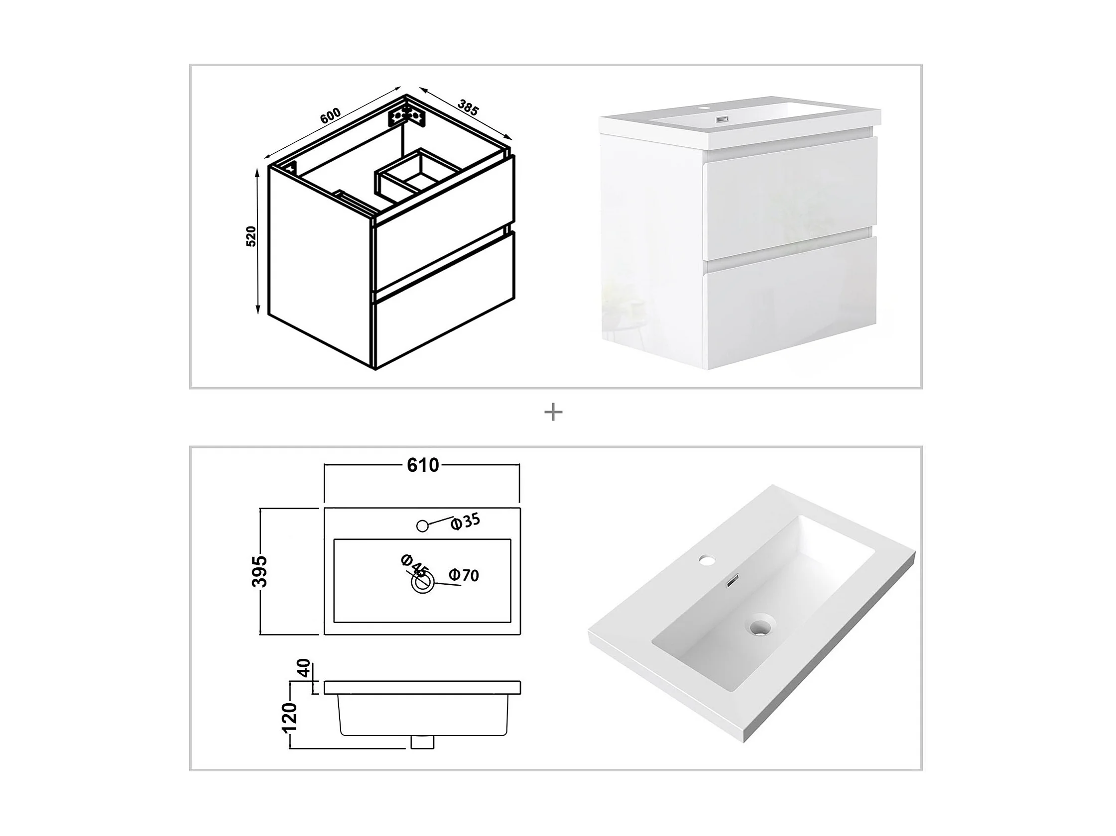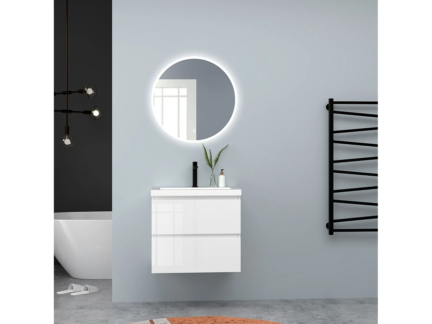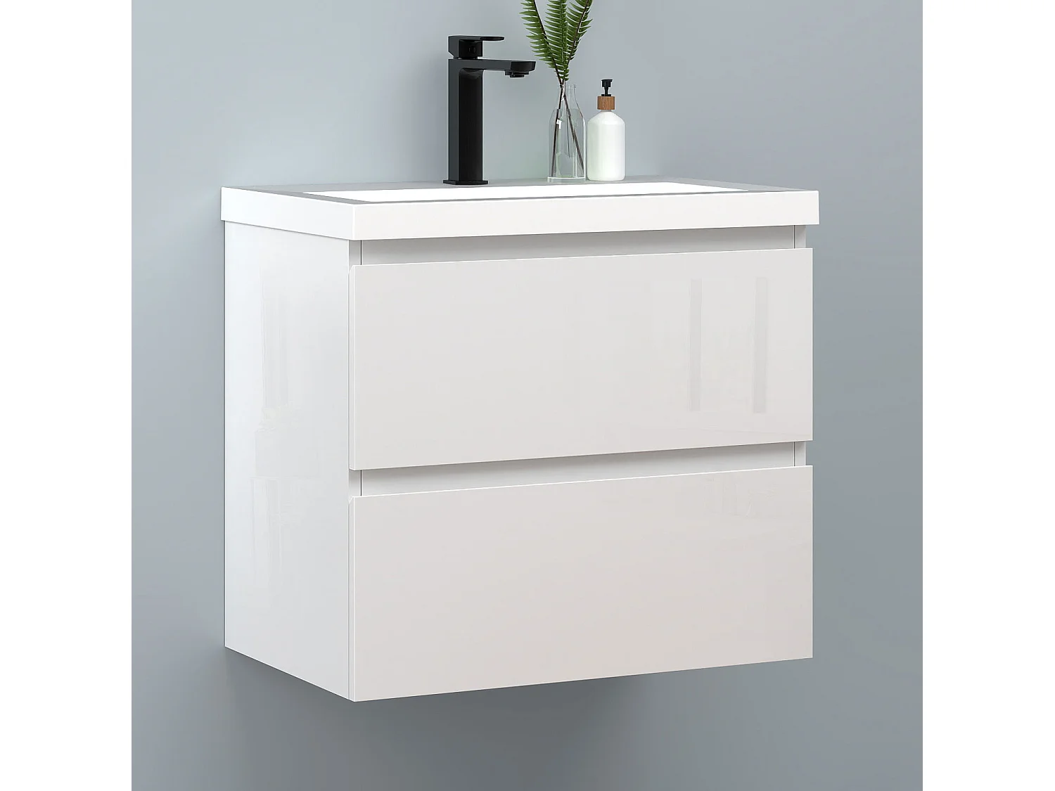 AICA Waschbeckenunterschrank hängend 60cm Rechteckiges Mineralguss-Waschbecken mit Unterschrank - Hochglanz Weiß - CINIC